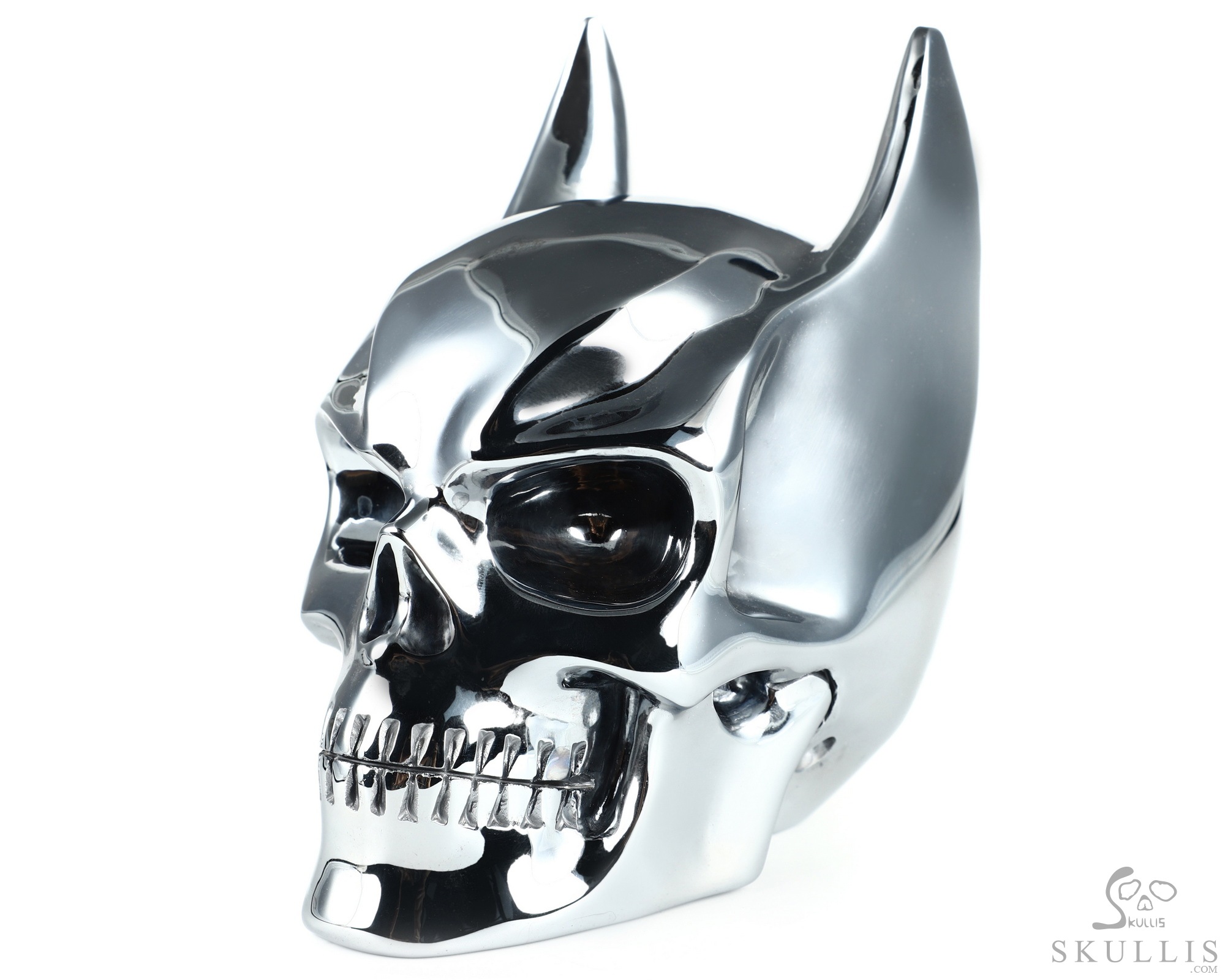 5.0" Tera-hertz Hand Carved Batman Crystal Skull Fine Art Sculpture, Crystal Healing