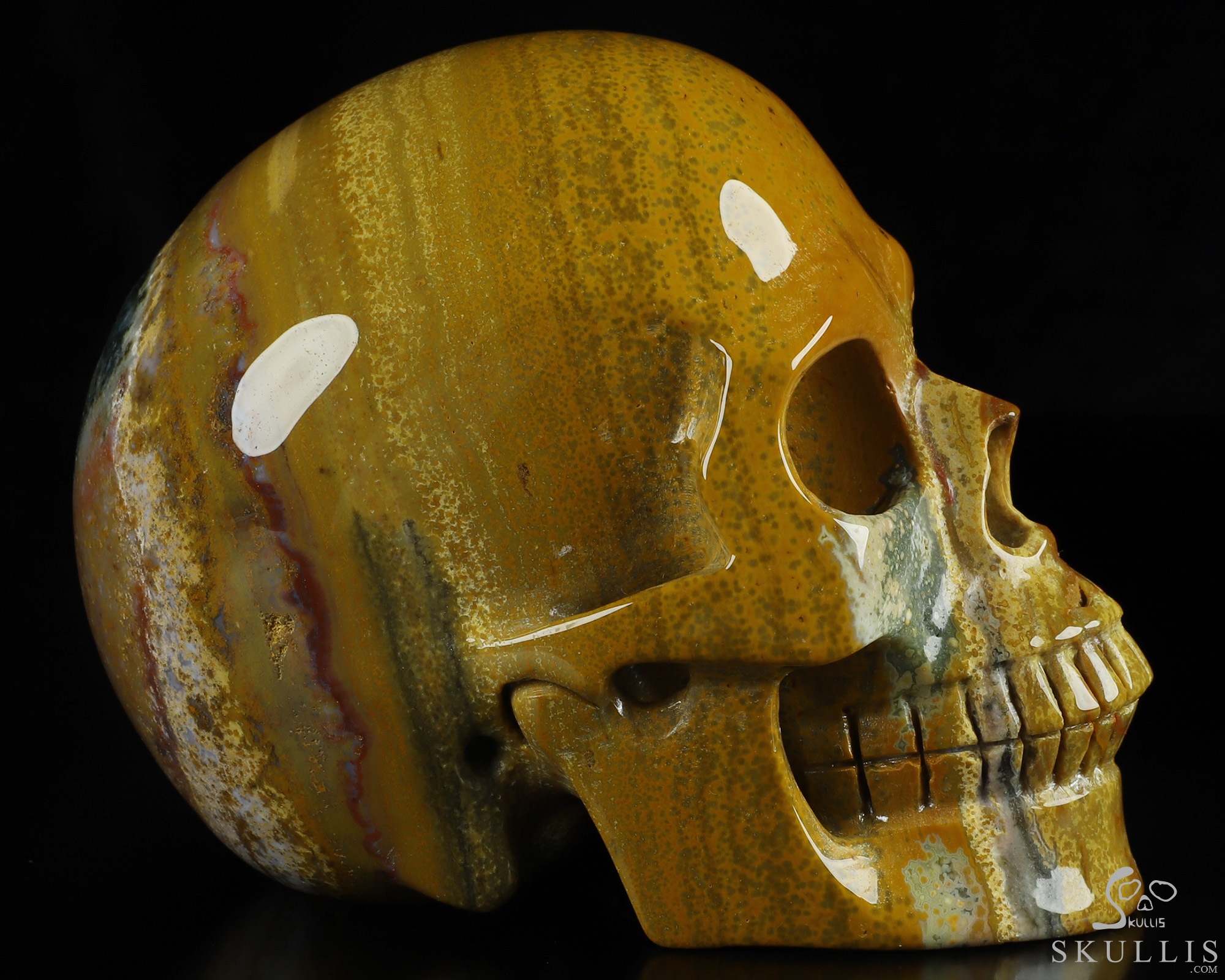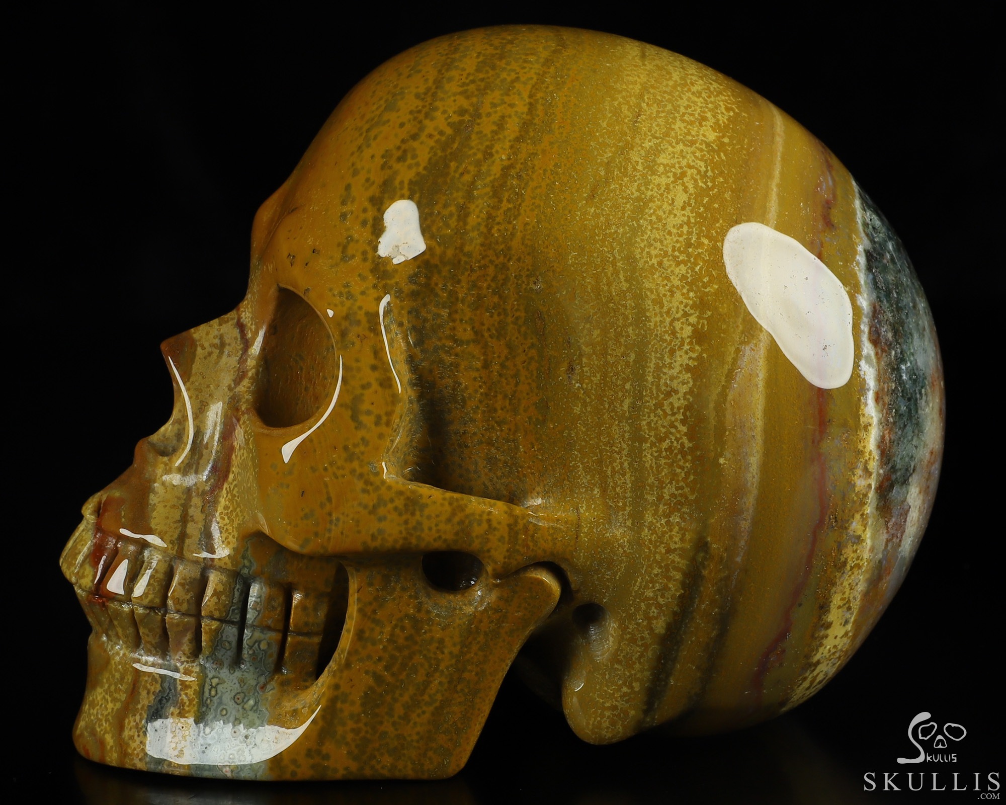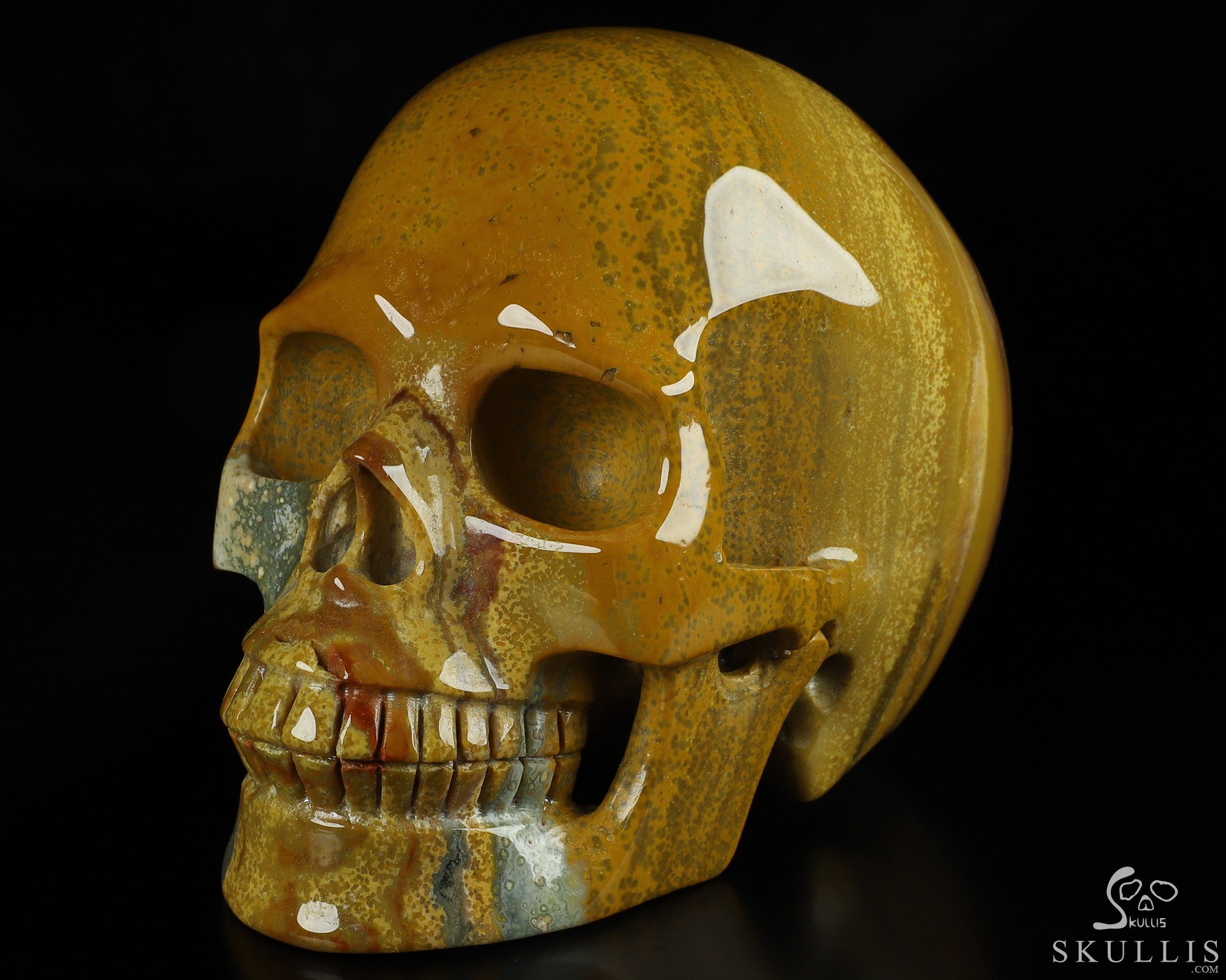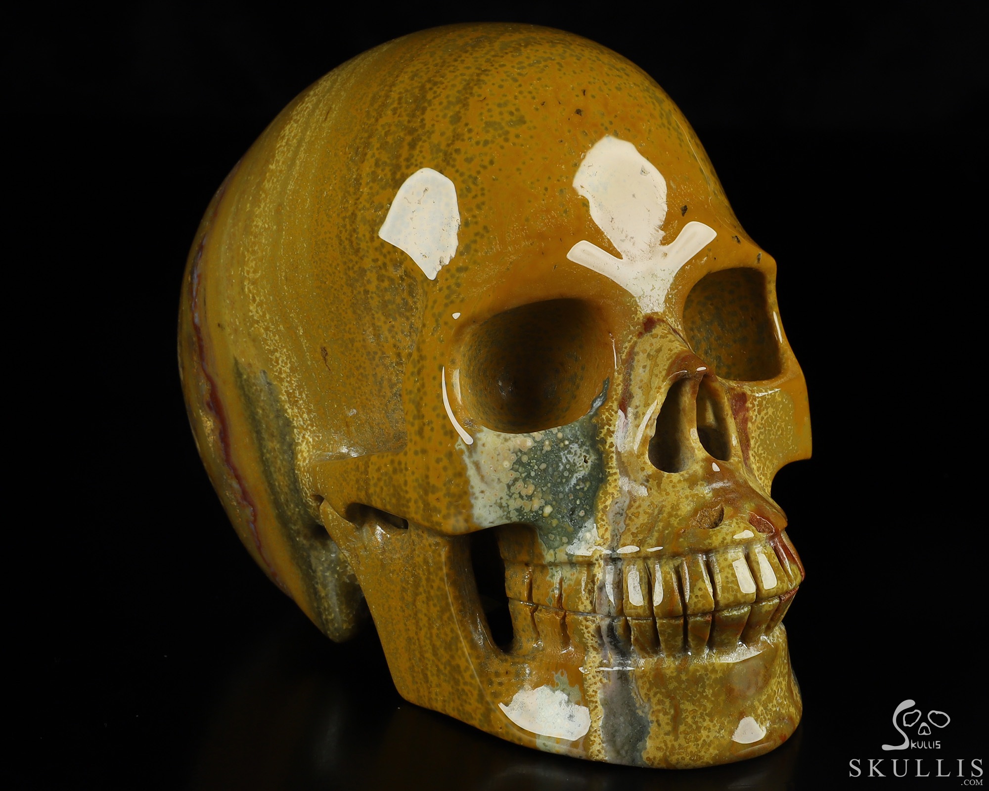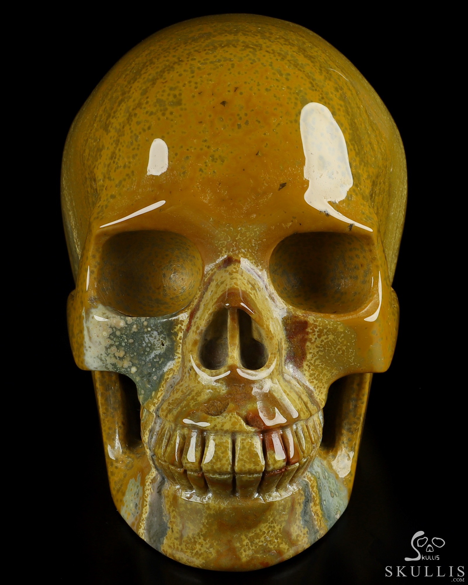 5.0" Yellow Ocean Agate Carved Crystal Skull, Realistic, Crystal Healing