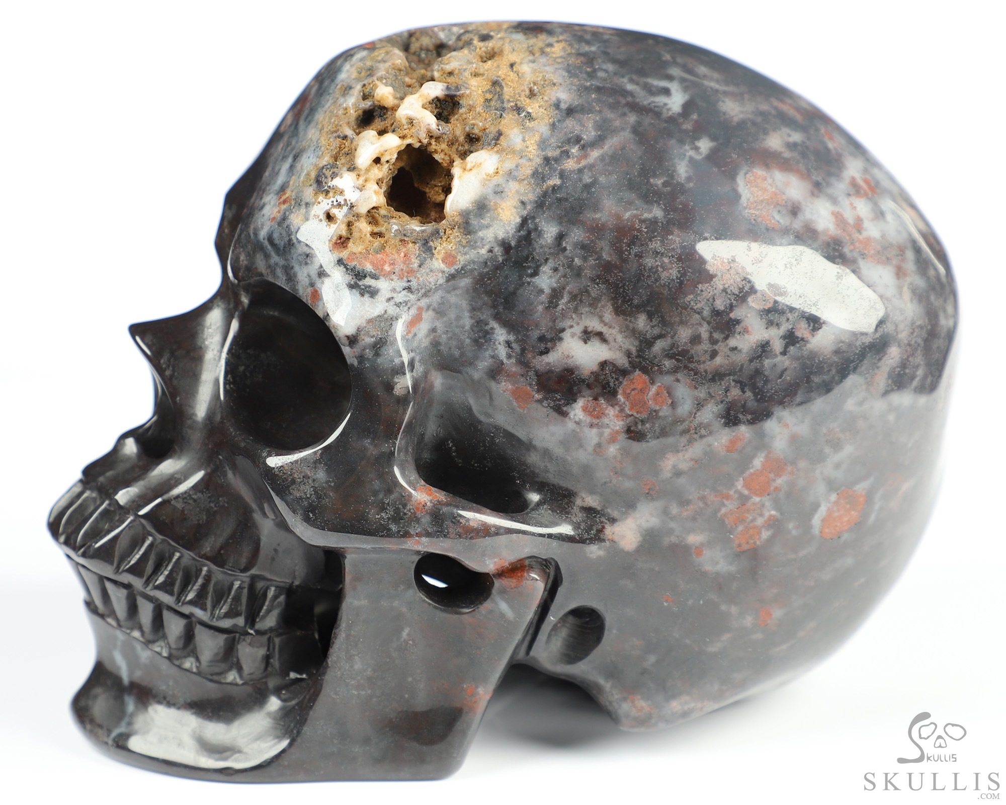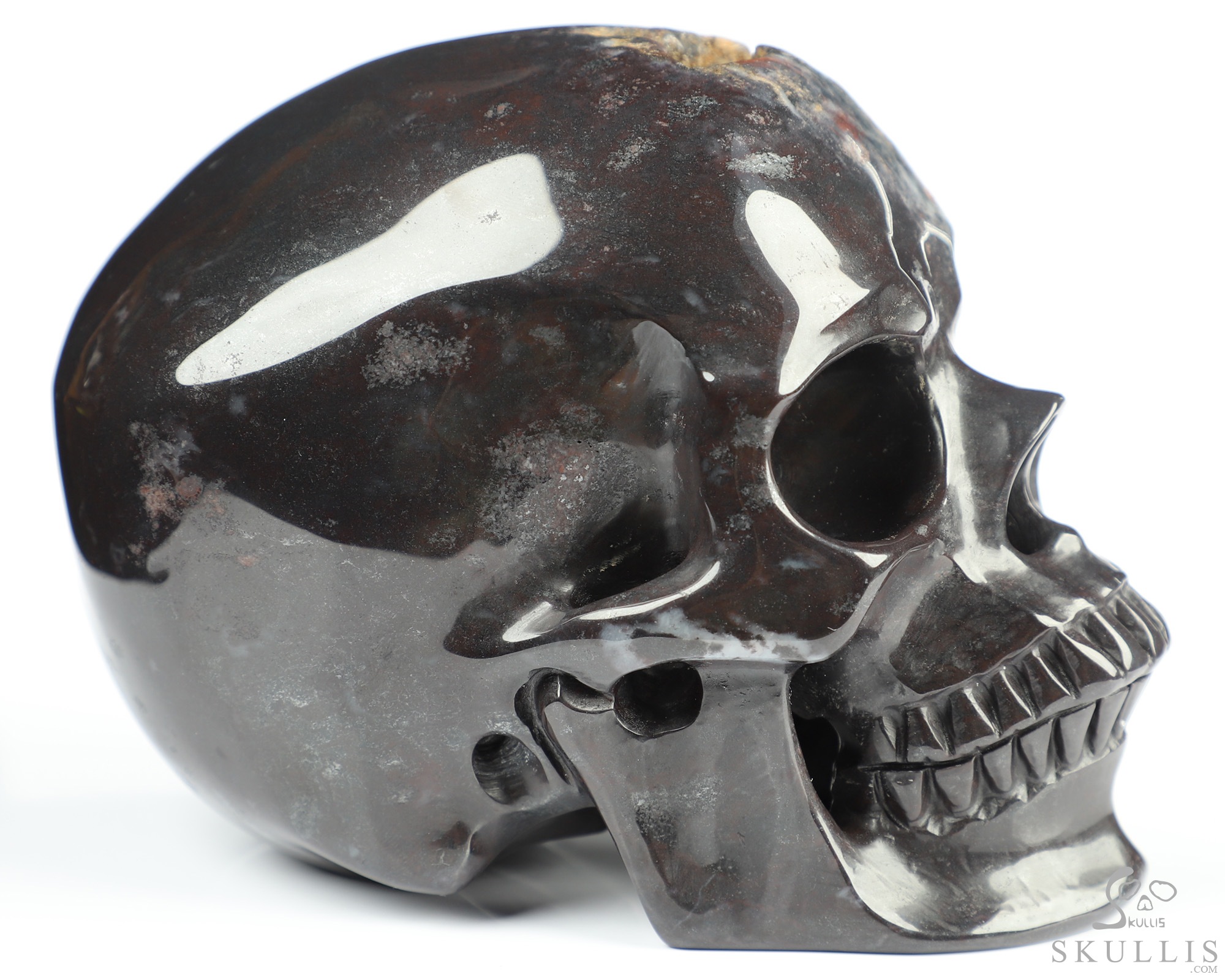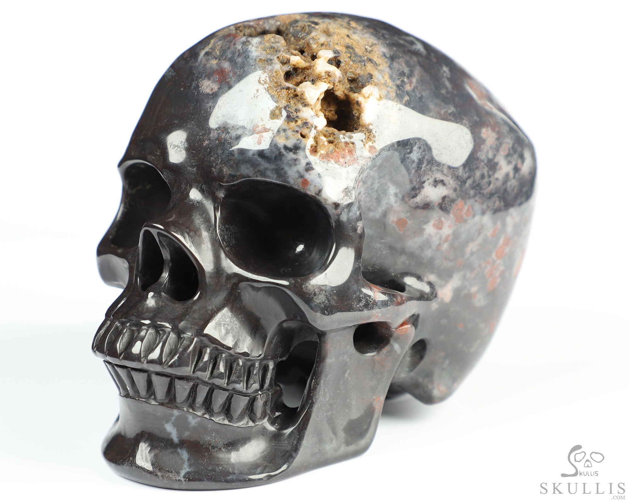 Lifesized 6.9" Chinese Bloodstone Hand Carved Crystal Skull, Super Realistic, Crystal Healing