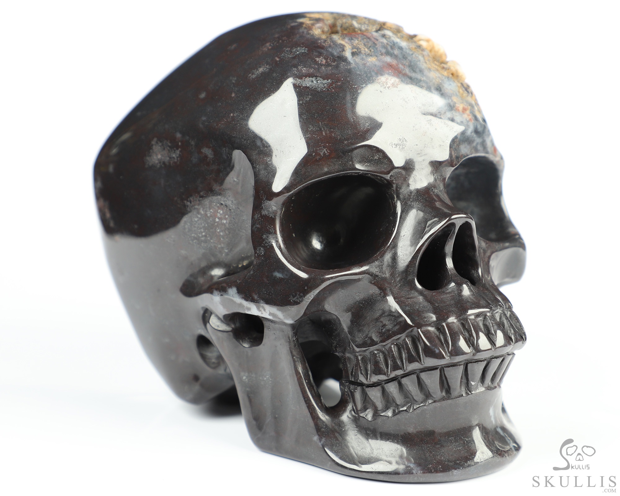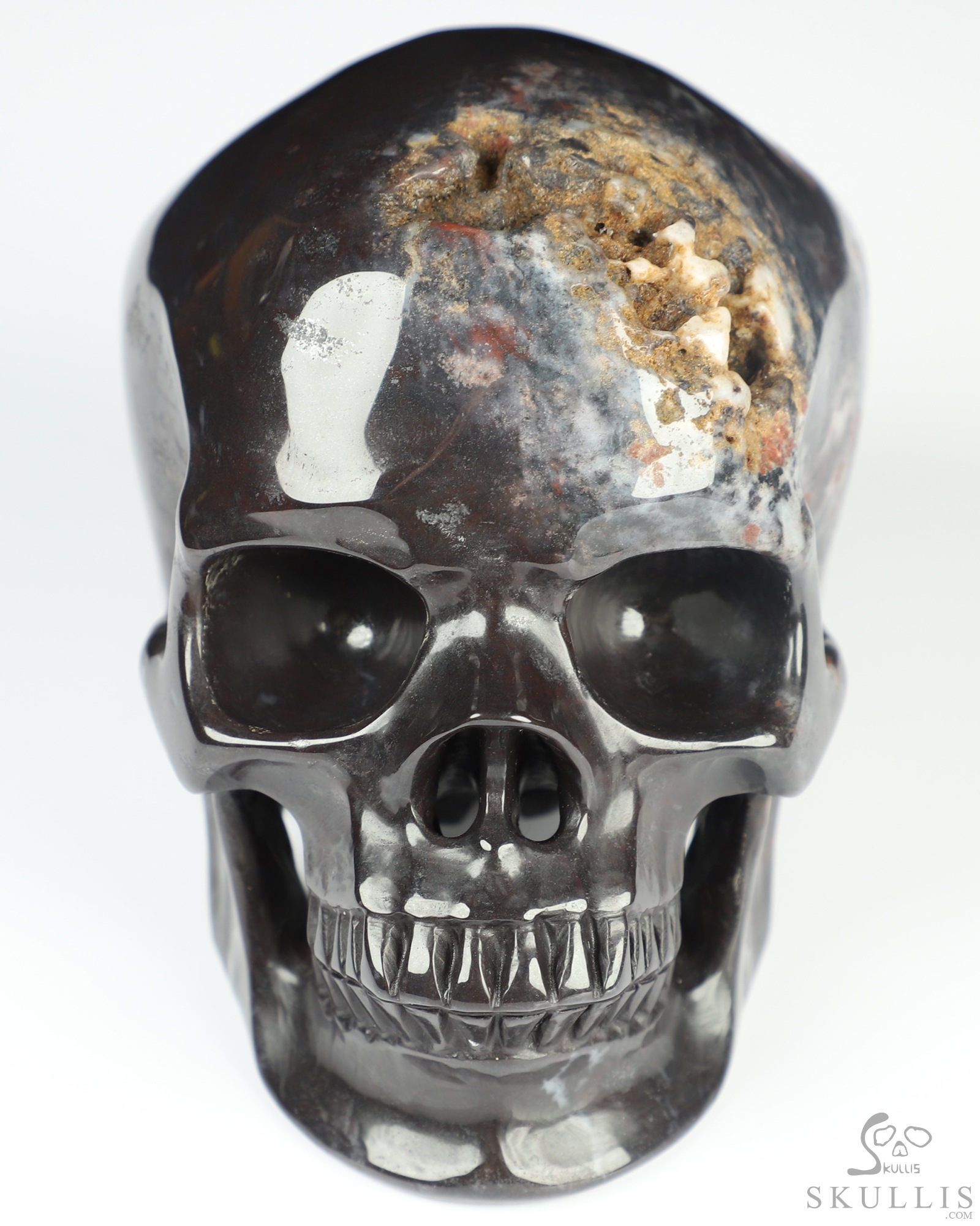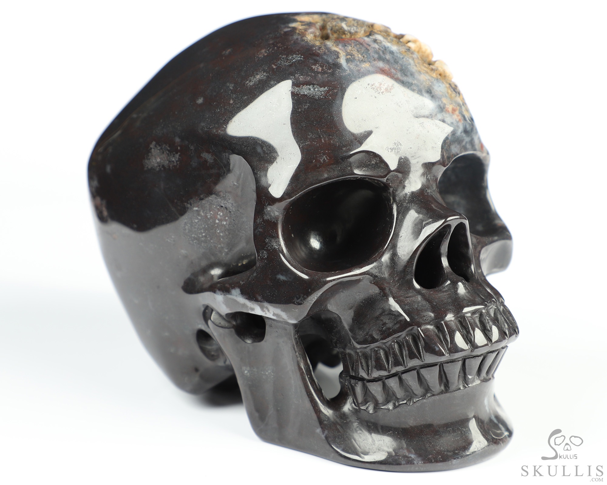 Lifesized 6.9" Chinese Bloodstone Hand Carved Crystal Skull, Super Realistic, Crystal Healing