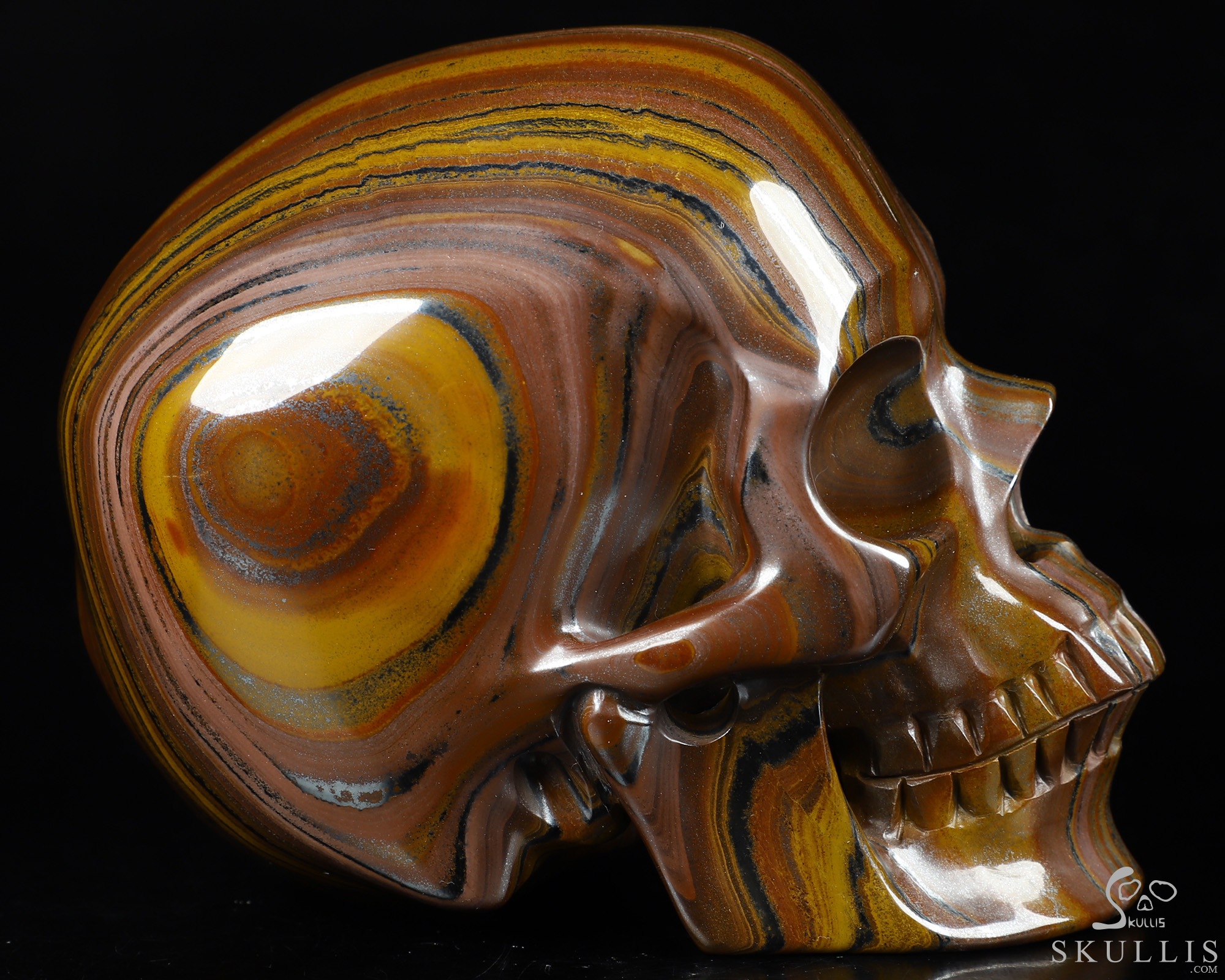 Huge 5.0" Colorful Tiger Iron Eye Carved Crystal Skull,Super Realistic, Crystal Healing