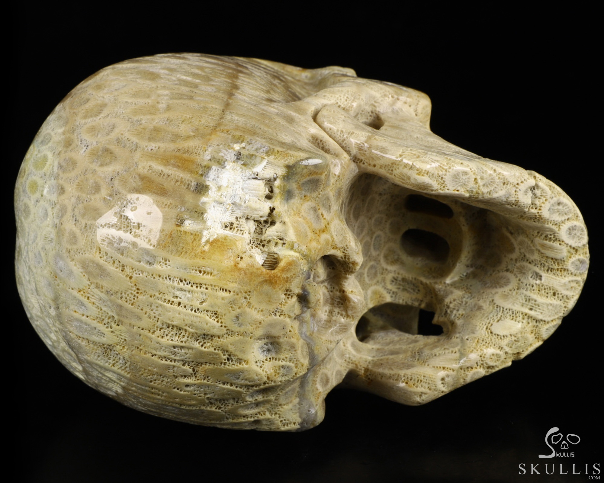 5.1" Coral Fossil Hand Carved Crystal Skull, Super Realistic, Crystal Healing