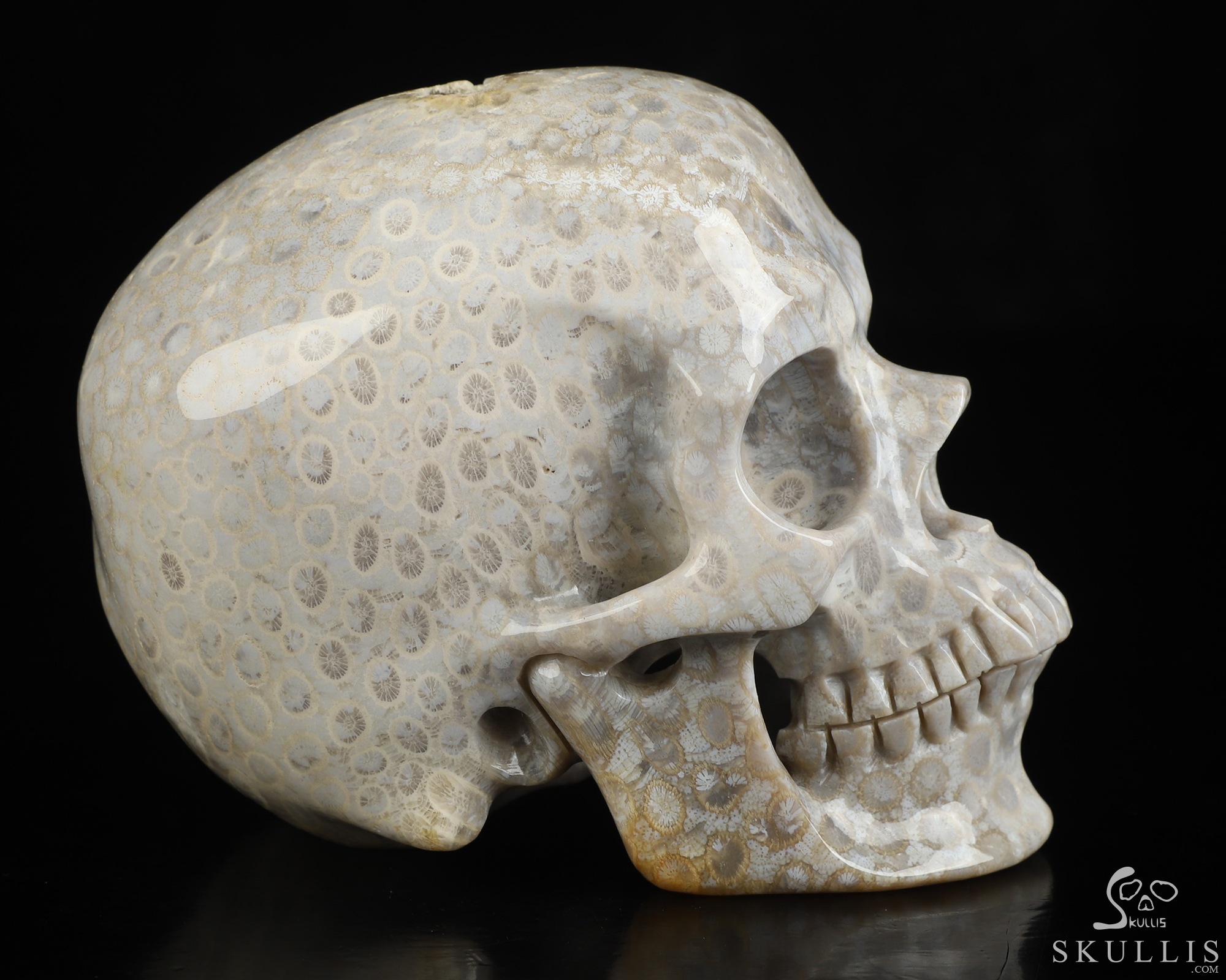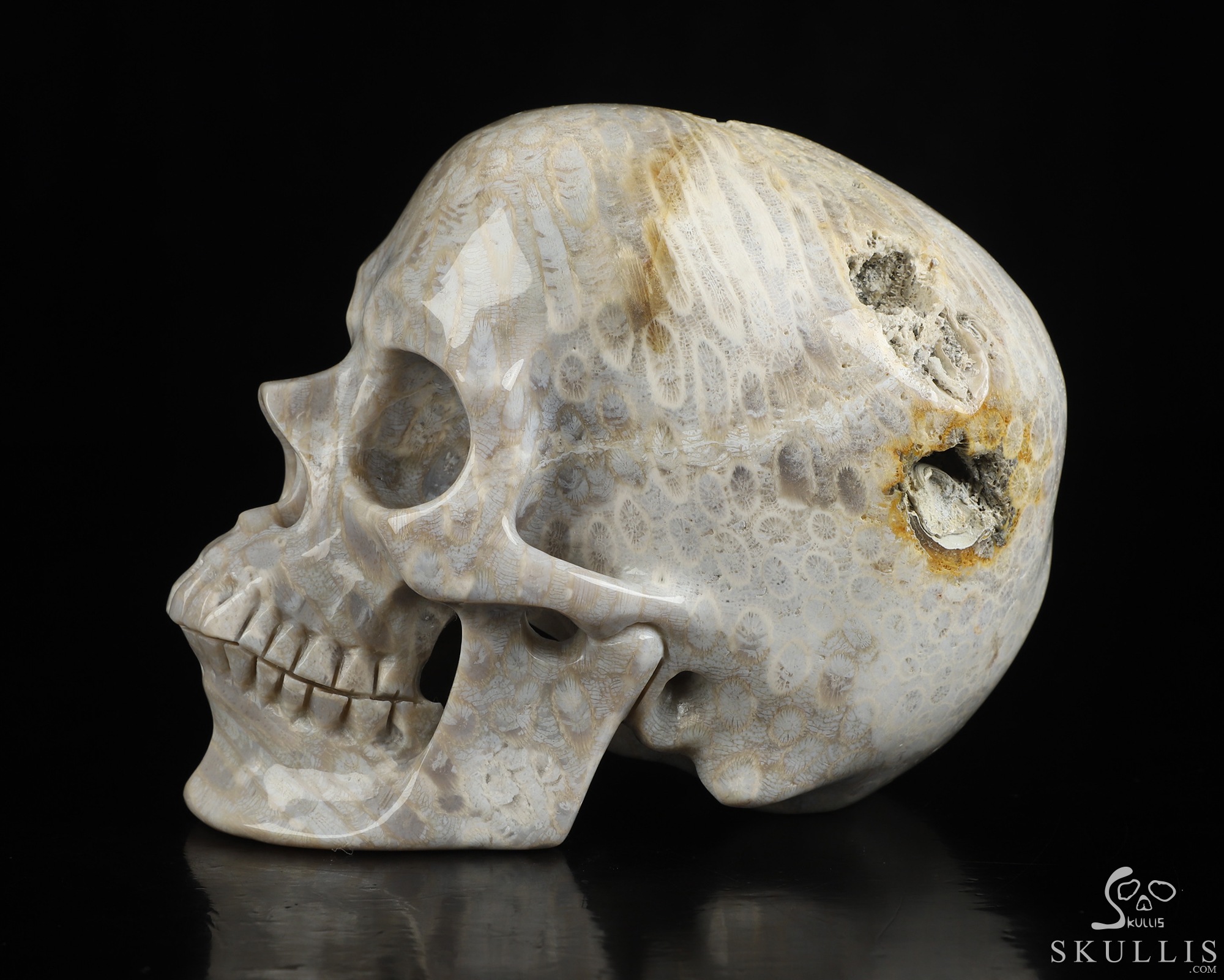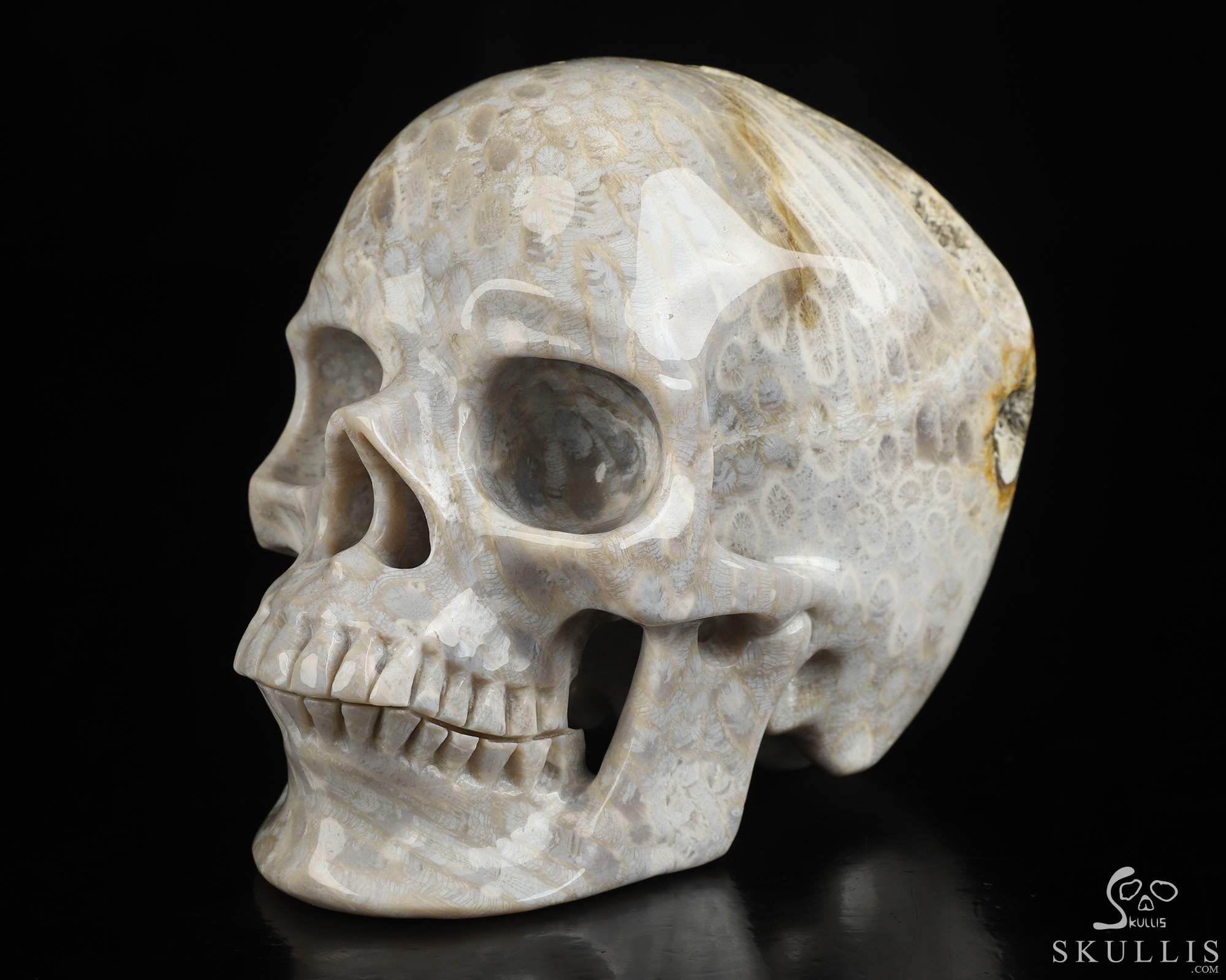5.1" Coral Fossil Hand Carved Crystal Skull, Super Realistic, Crystal Healing