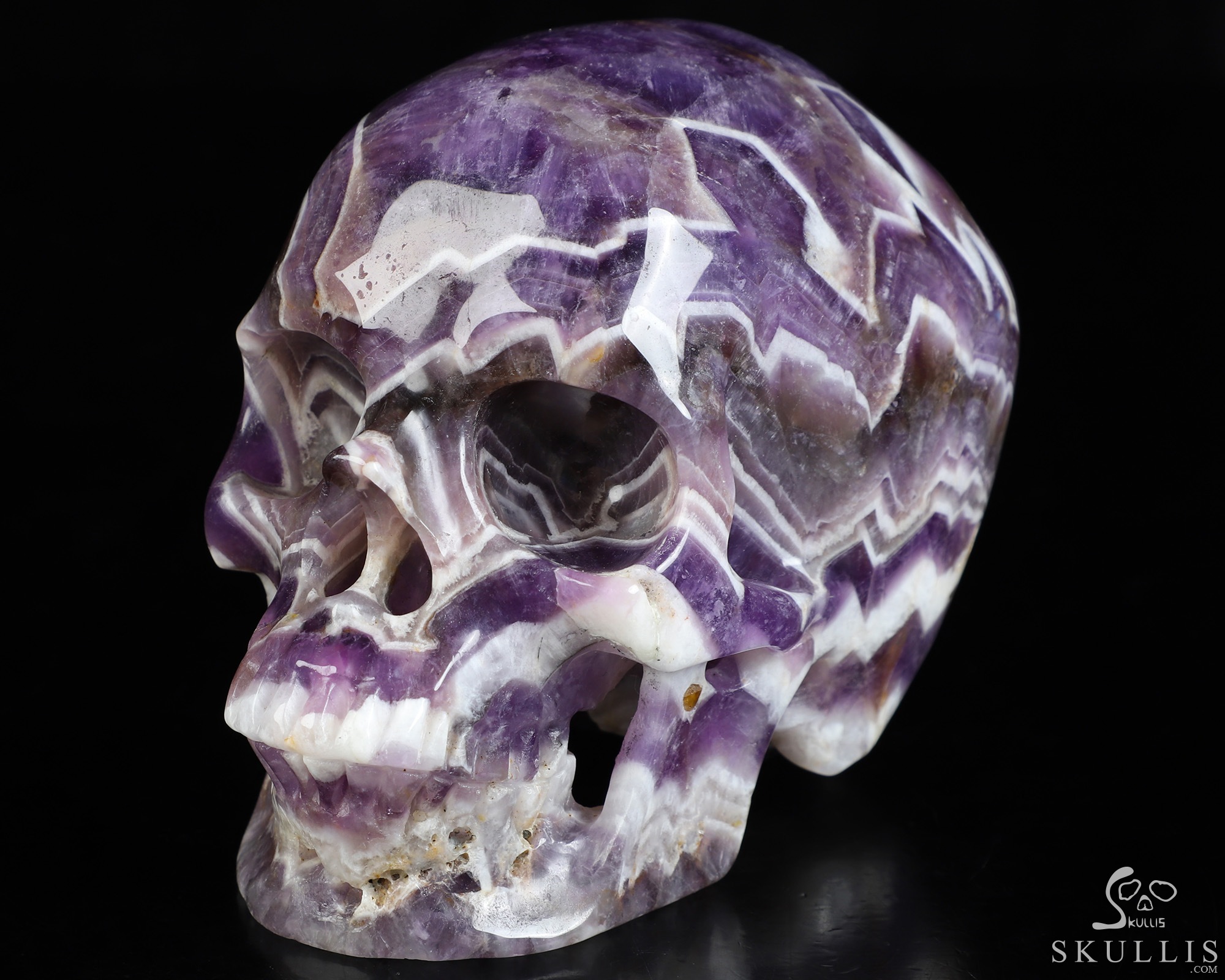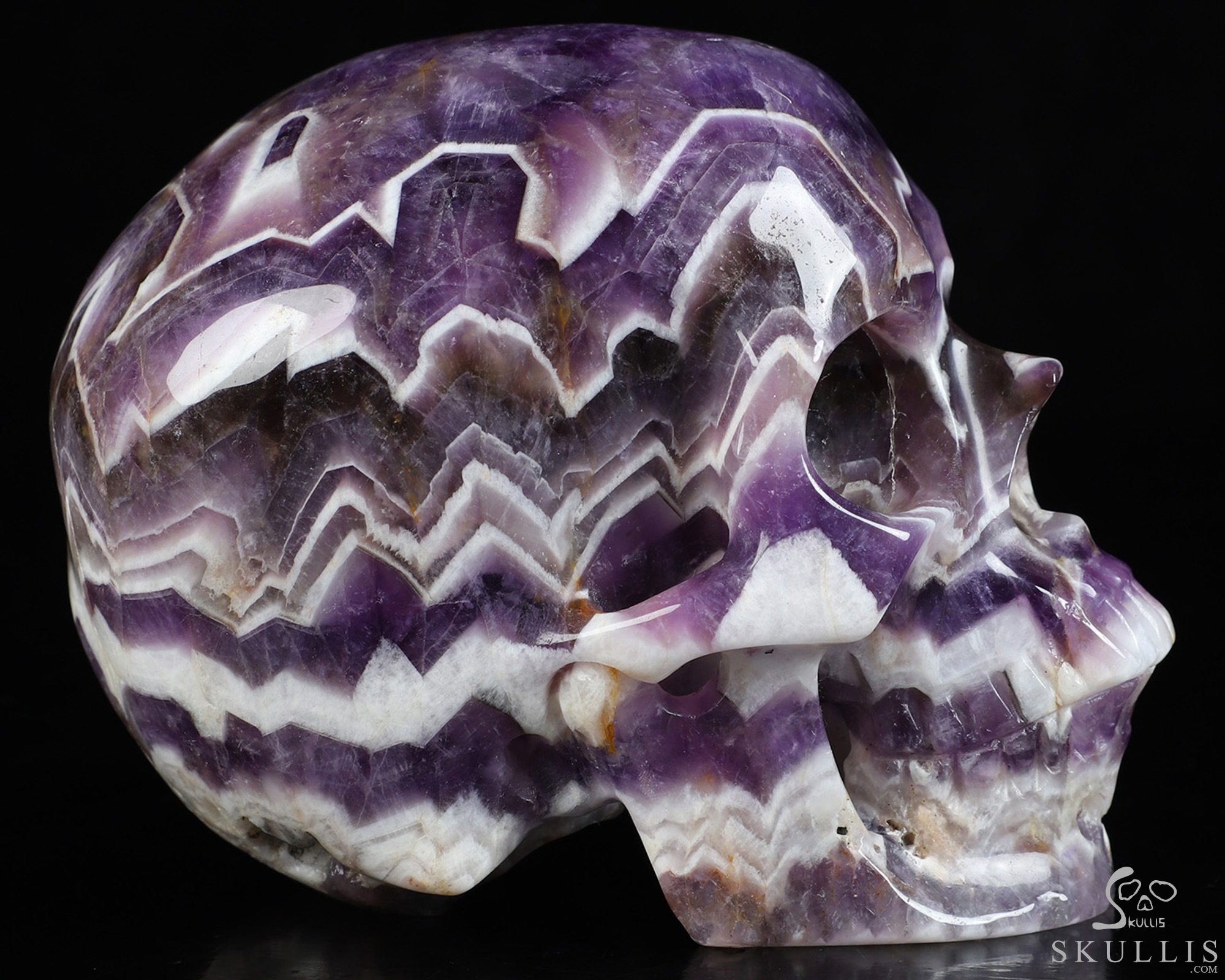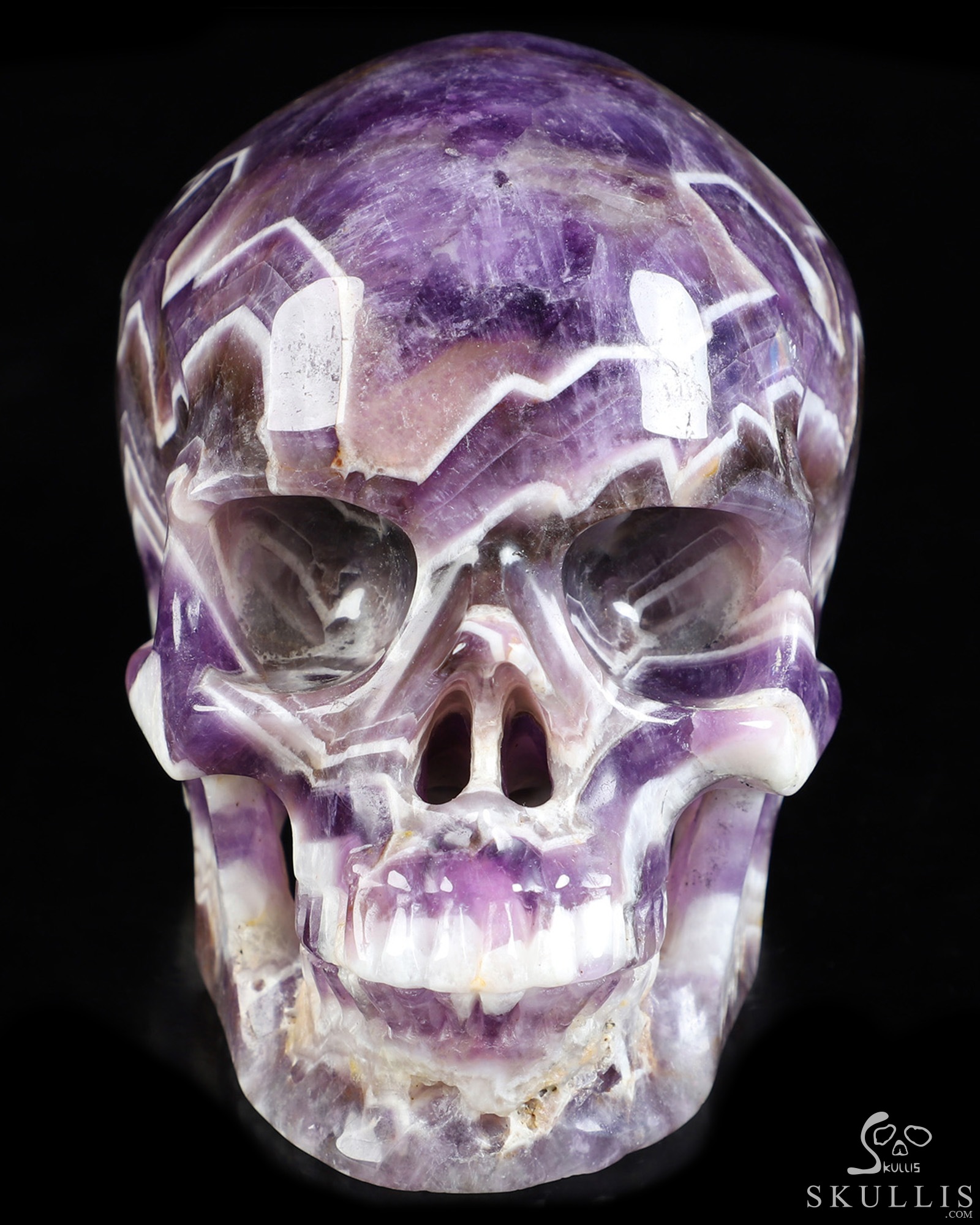 Gemstone Huge 5.1" Dream Chevron Amethyst Carved Crystal Skull, Super Realistic