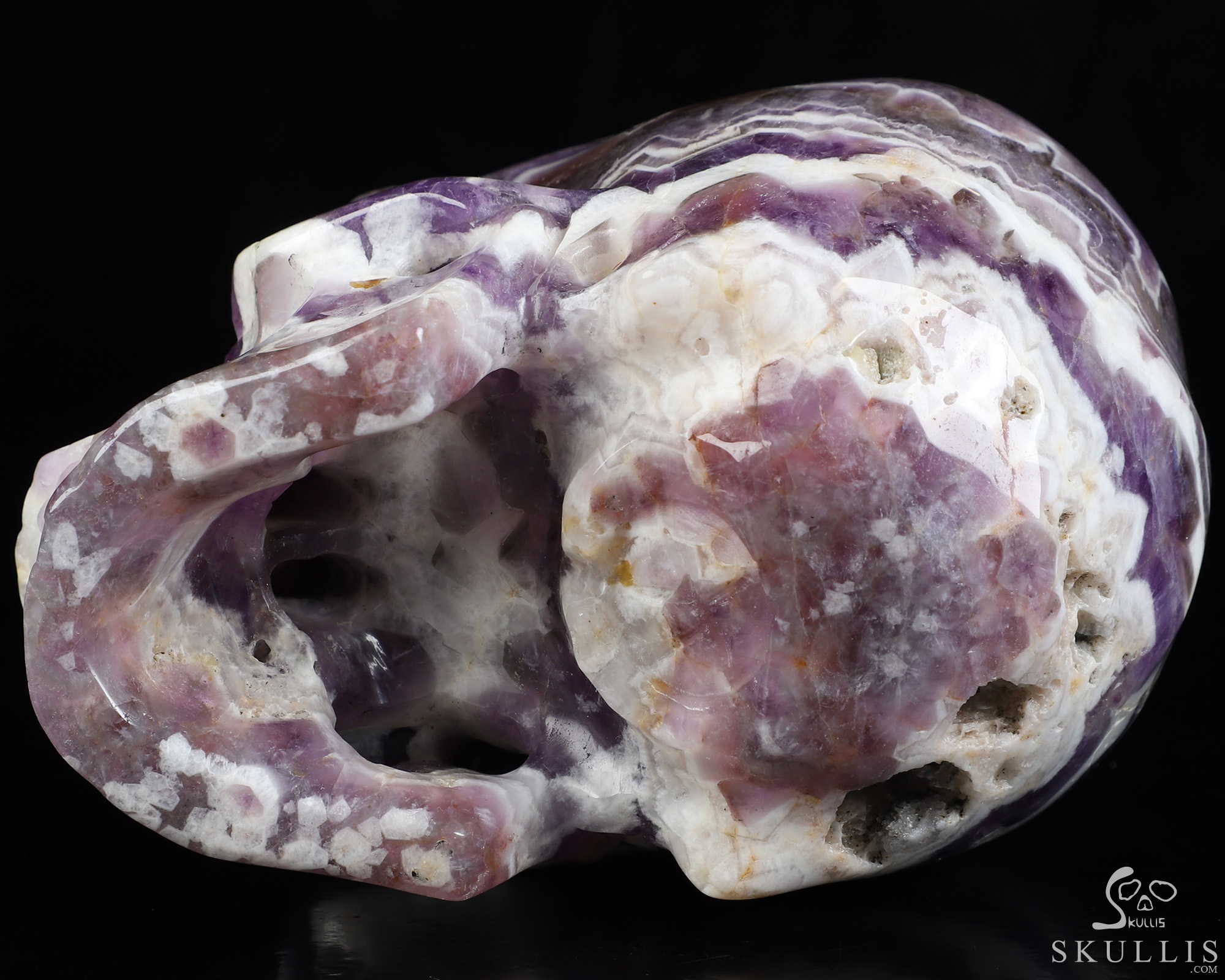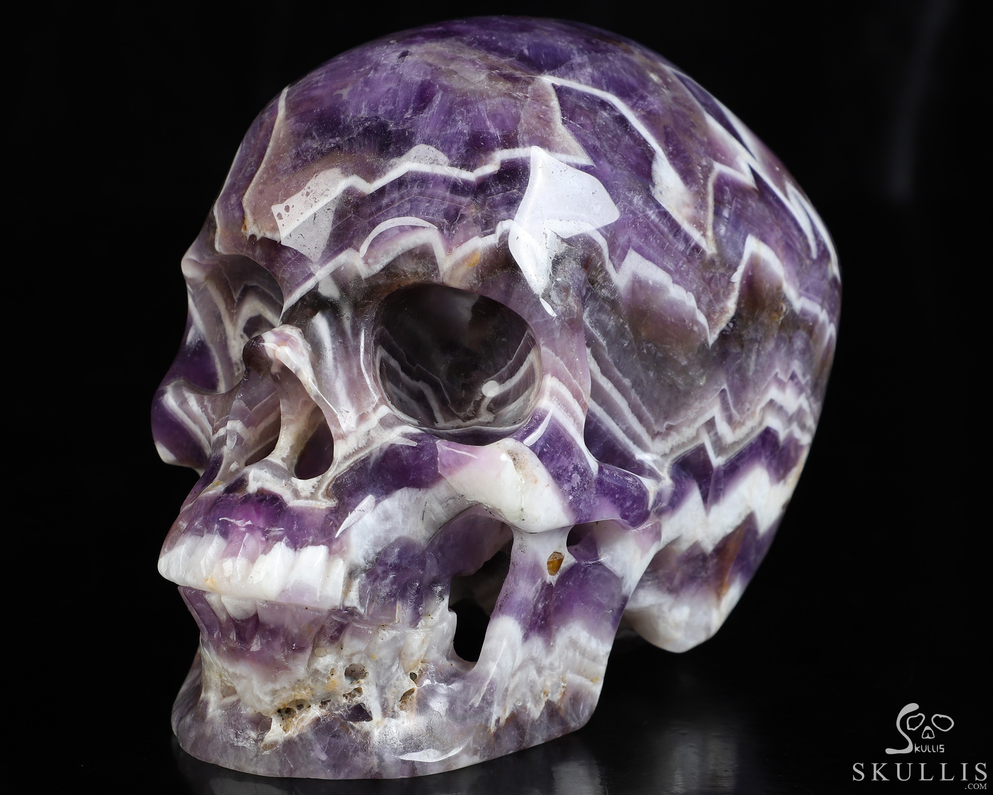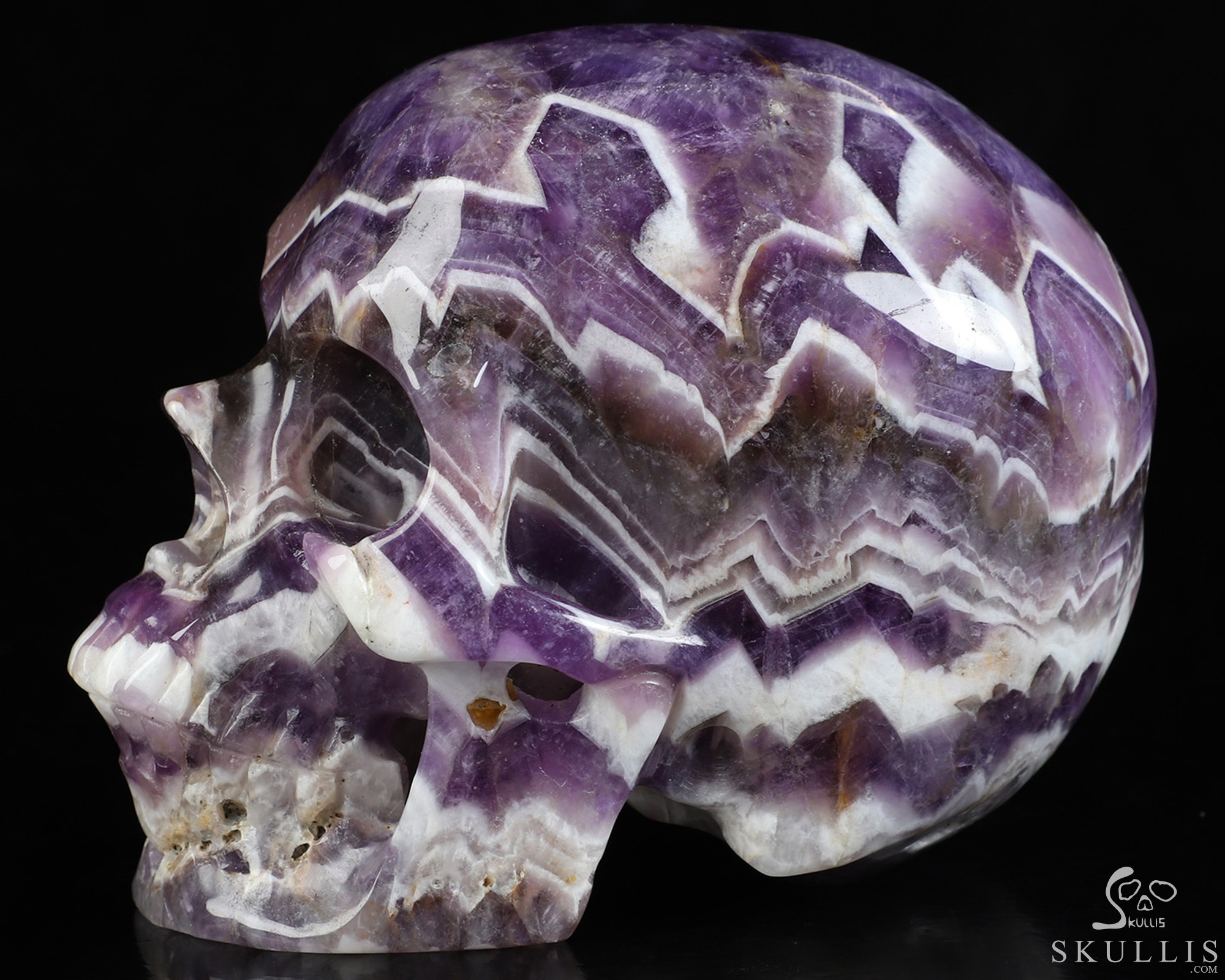 Gemstone Huge 5.1" Dream Chevron Amethyst Carved Crystal Skull, Super Realistic