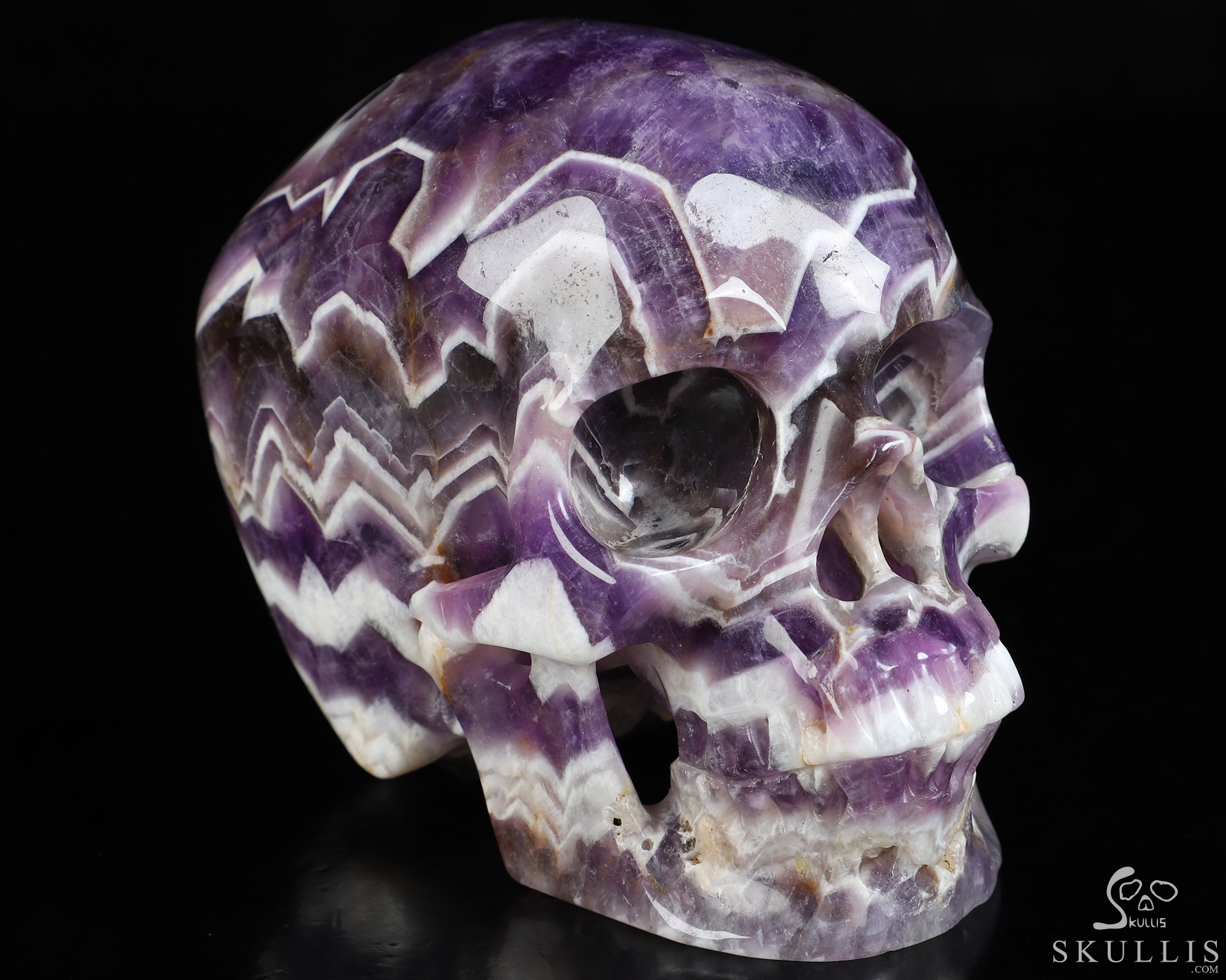 5.1" Dream Chevron Amethyst Hand Carved Crystal Skull, Super Realistic, Crystal Healing
