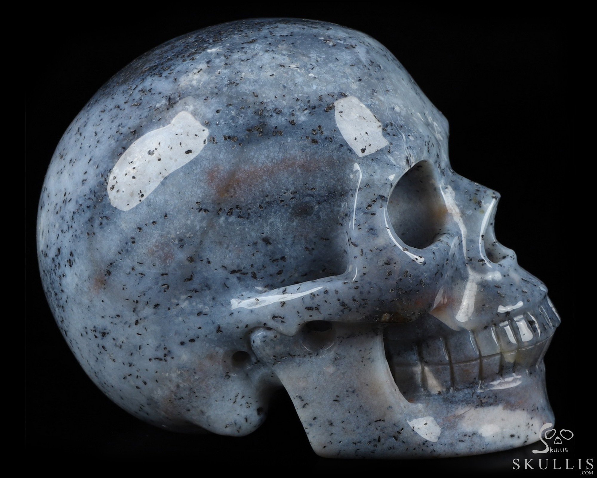 5.1" Flower Agate Carved Crystal Skull, Realistic, Crystal Healing