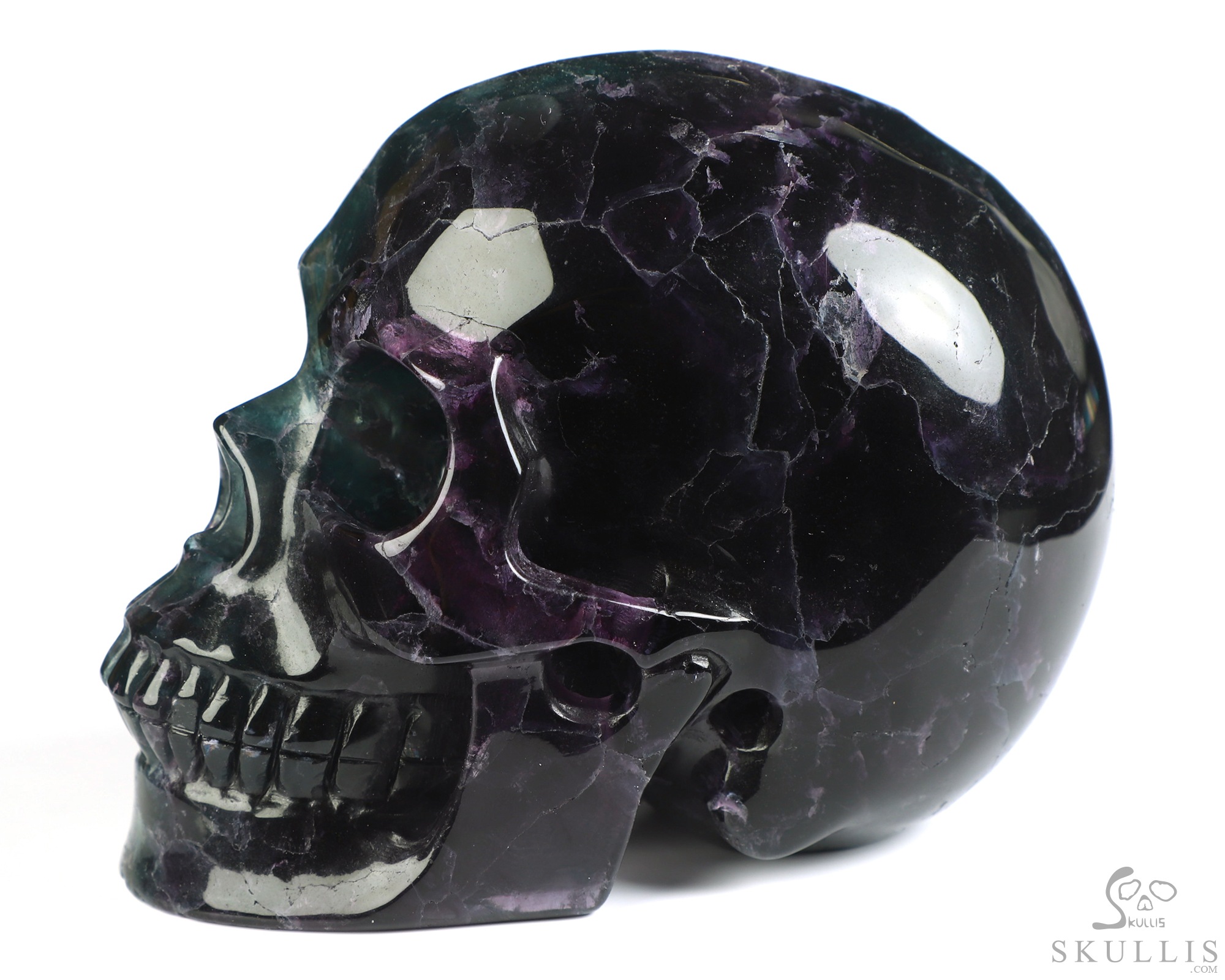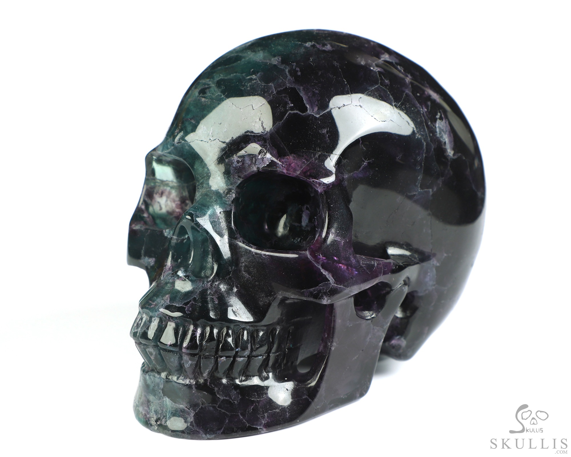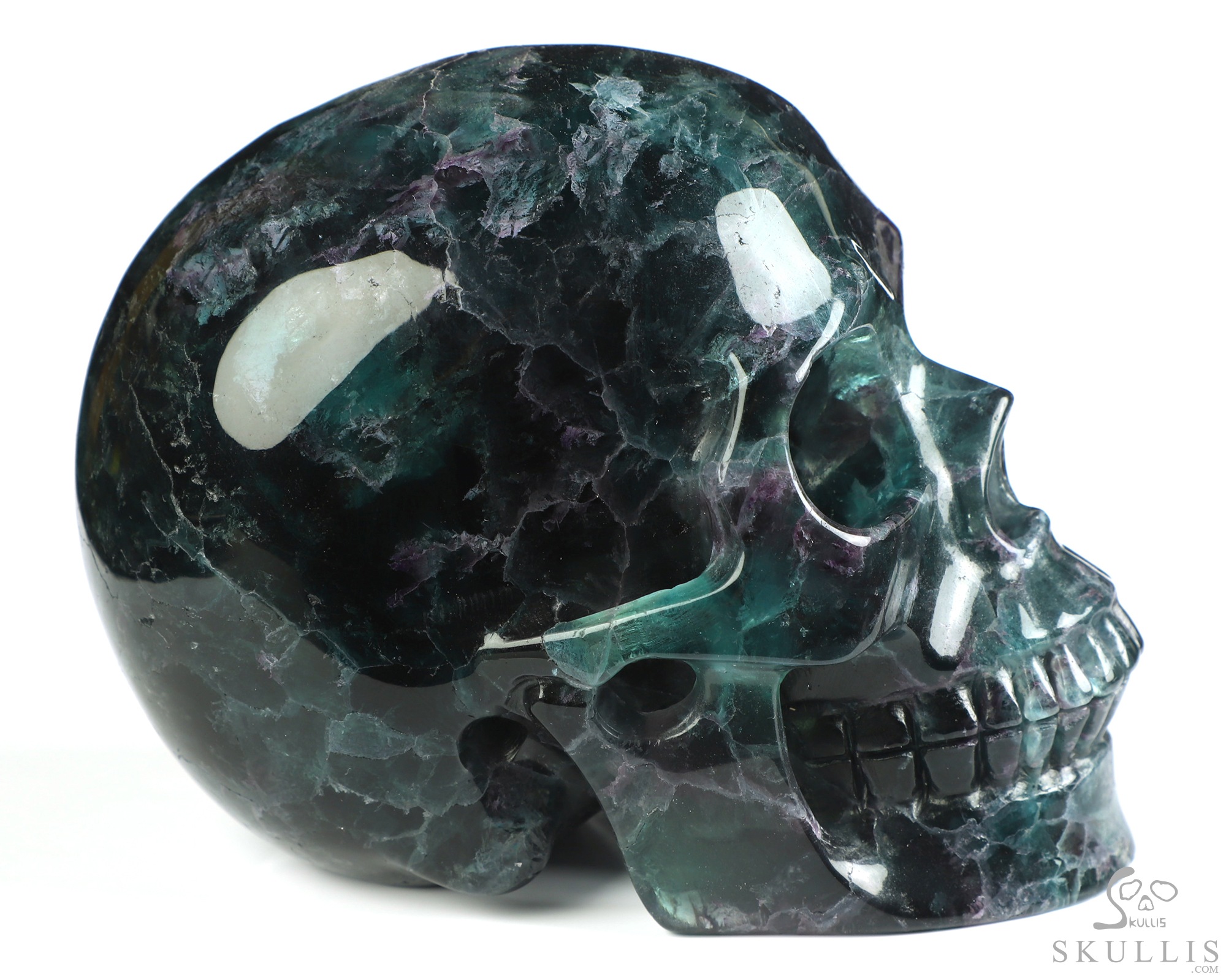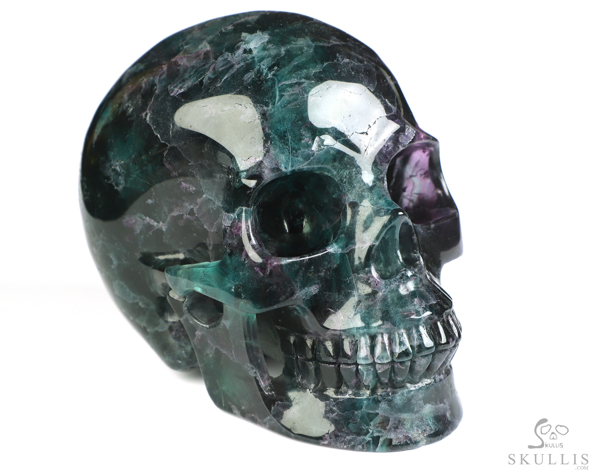 5.1" Fluorite Hand Carved Crystal Skull, Super Realistic, Crystal Healing