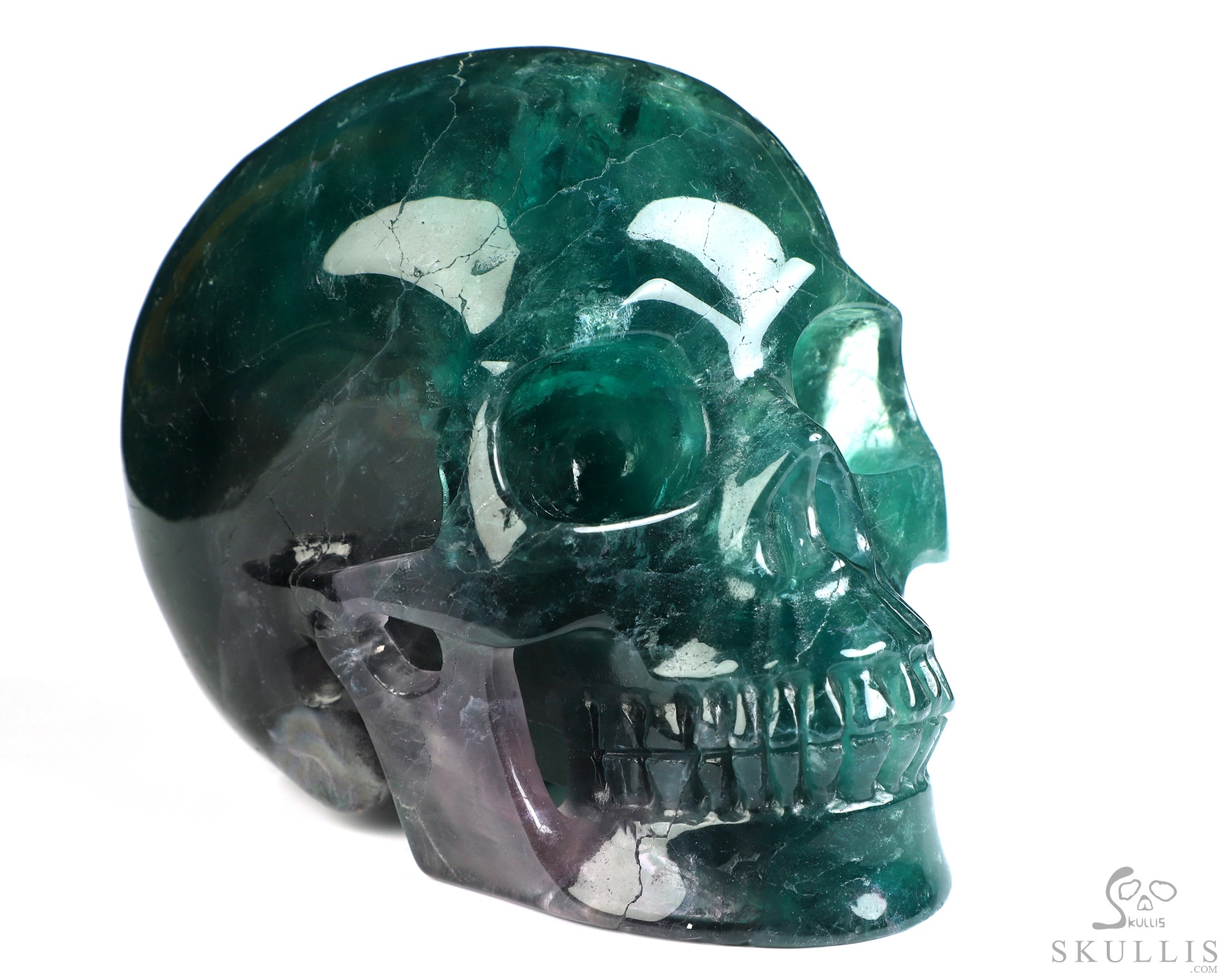 Lifesized 7.9" Fluorite Carved Crystal Skull, Super Realistic
