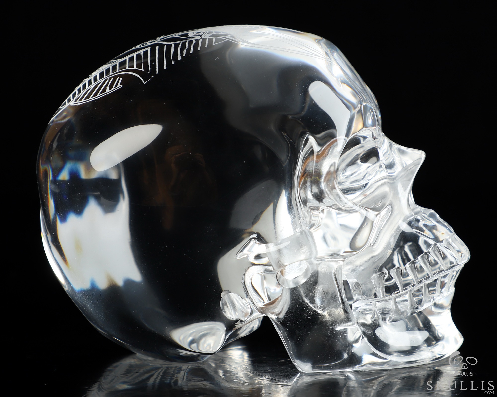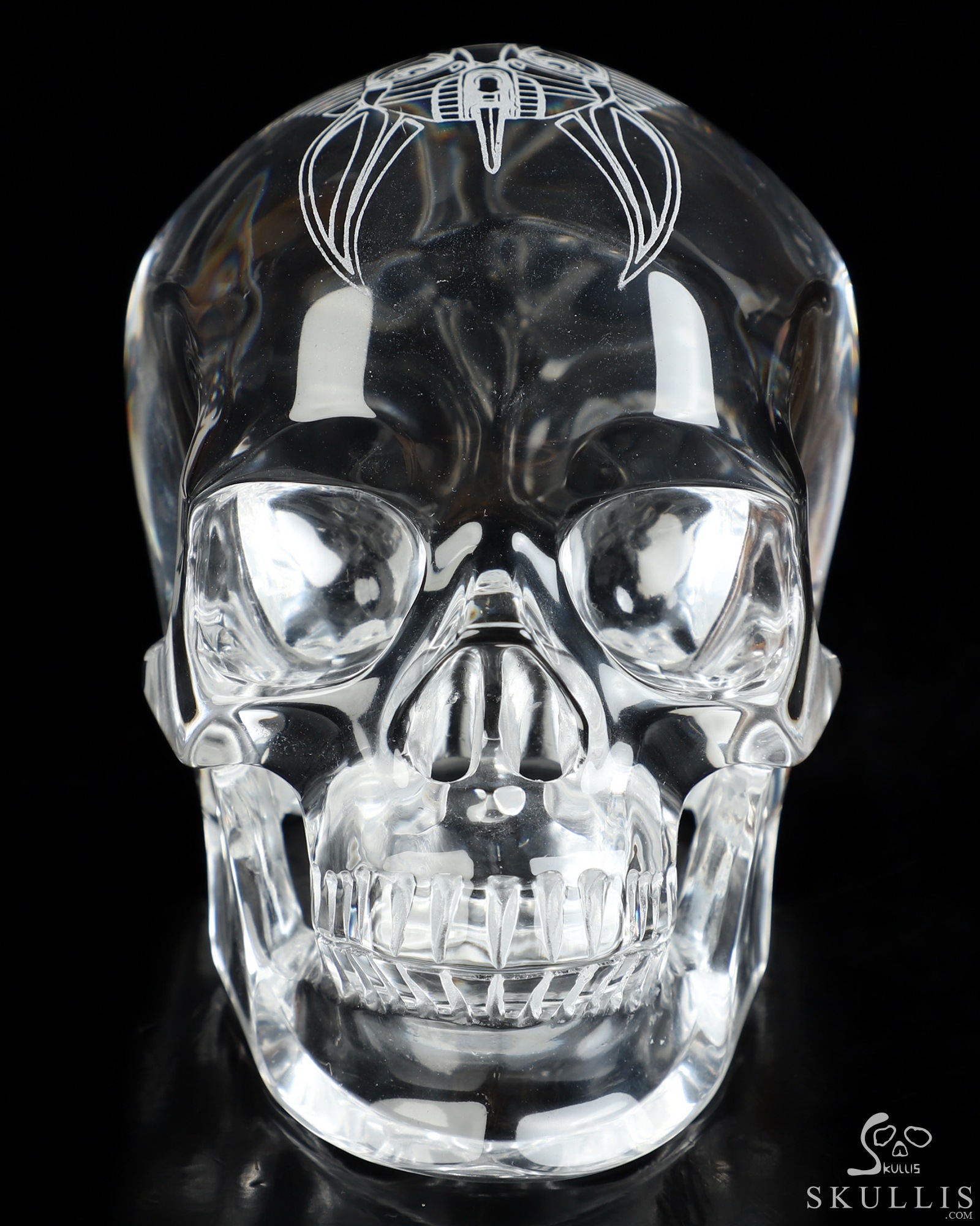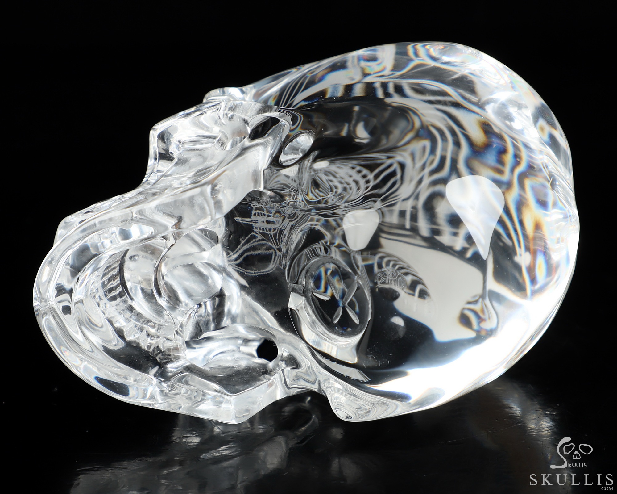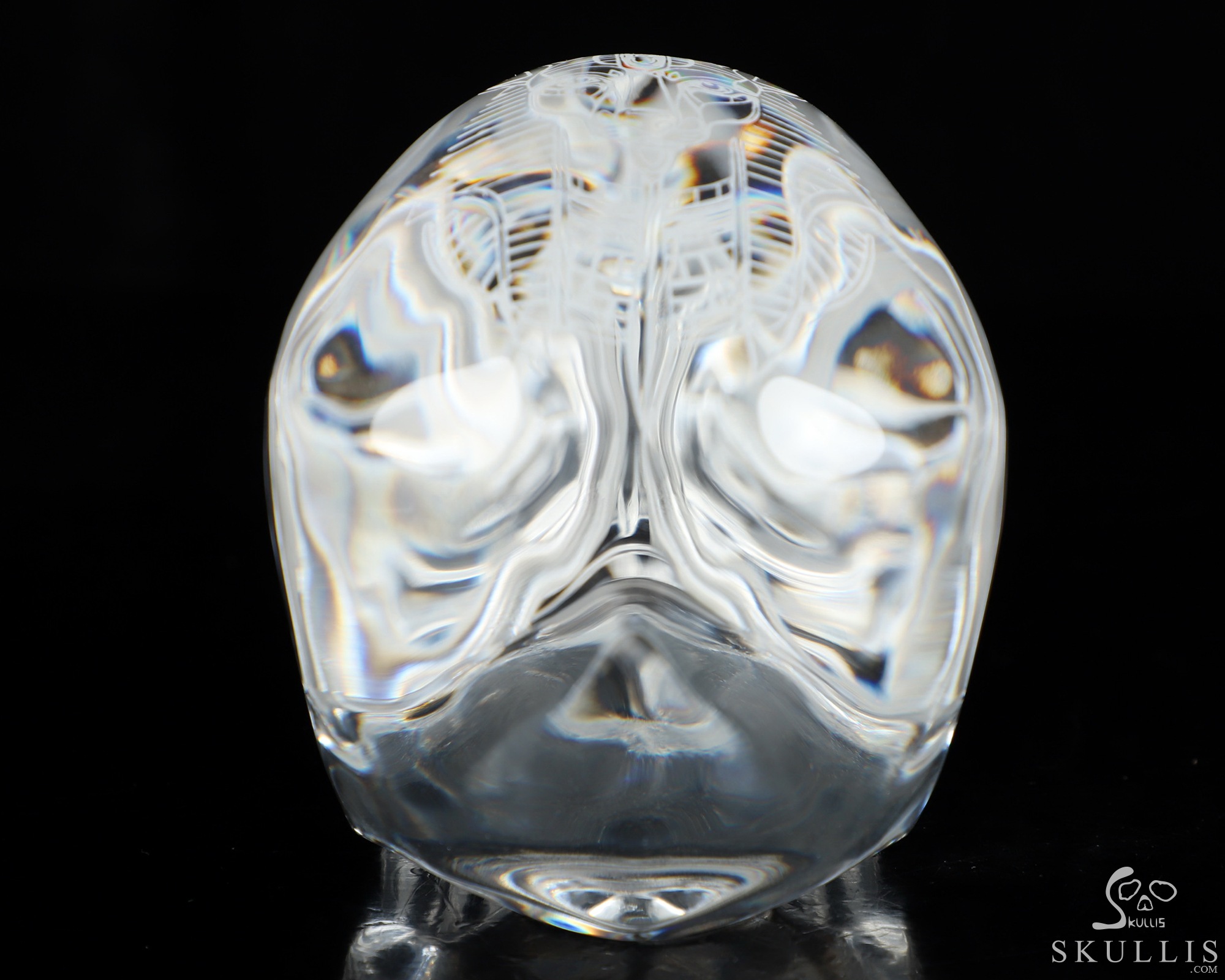 While perfect quartz crystal is nearly impossible to find and remarkably expensive, we've found K9 Crystal to be a great material for carving flawless crystal skulls. K9 Crystal is a borosilicate glass with a high refractive index making it ideal for premium chandeliers and aesthetic lighting. It has excellent clarity and is used for high quality prisms and optical lenses. It is also used for jewelry, decorative hardware, and laser etched art. Like lead crystal, K9 crystal accepts a perfect polish, and with about a 10% lead content it weighs nearly 15% less than some lead crystal. Also like lead crystal, K9 Crystal is not a natural crystalline formation, but a man-made material. Metaphysically, man-made materials can be controversial. Does it have metaphysical properties, or do only naturally occurring materials have beneficial characteristics and energies? Skullis will leave you to decide what works best for you, but we feel all materials have an energetic vibration, and so all materials can be considered useful. Almost every material we handle elicits a feeling from us. It's the difference between a paper cup, a plastic drinking glass, and a glass mug, or between a wooden stick and a metal rod. For example, we manipulate silver and gold to wear as jewelry, but we don't consider these to have lost their energetic properties. Natural or Man-made is a definition of the material, but only you can decide how this material feels and works for you. We encourage an open mind, and remind you that regardless of the material, it is only a tool to help us achieve our inherent potentials! Glass has been described as having a very fast, high frequency energy vibration that allows one to clearly focus one's attention and direct one's thoughts without distraction. Perhaps it would be good to have some grounding crystals on hand as well. Consult the properties of galena and quartz (silicon dioxide) for information about the constituents of K9 crystal. Try meditating with K9 crystal to gain insight and deeper understanding, and to enhance the fine details of your manifestation exercises. Go slow and see how it feels for you; this may be a good material for doing some major work.