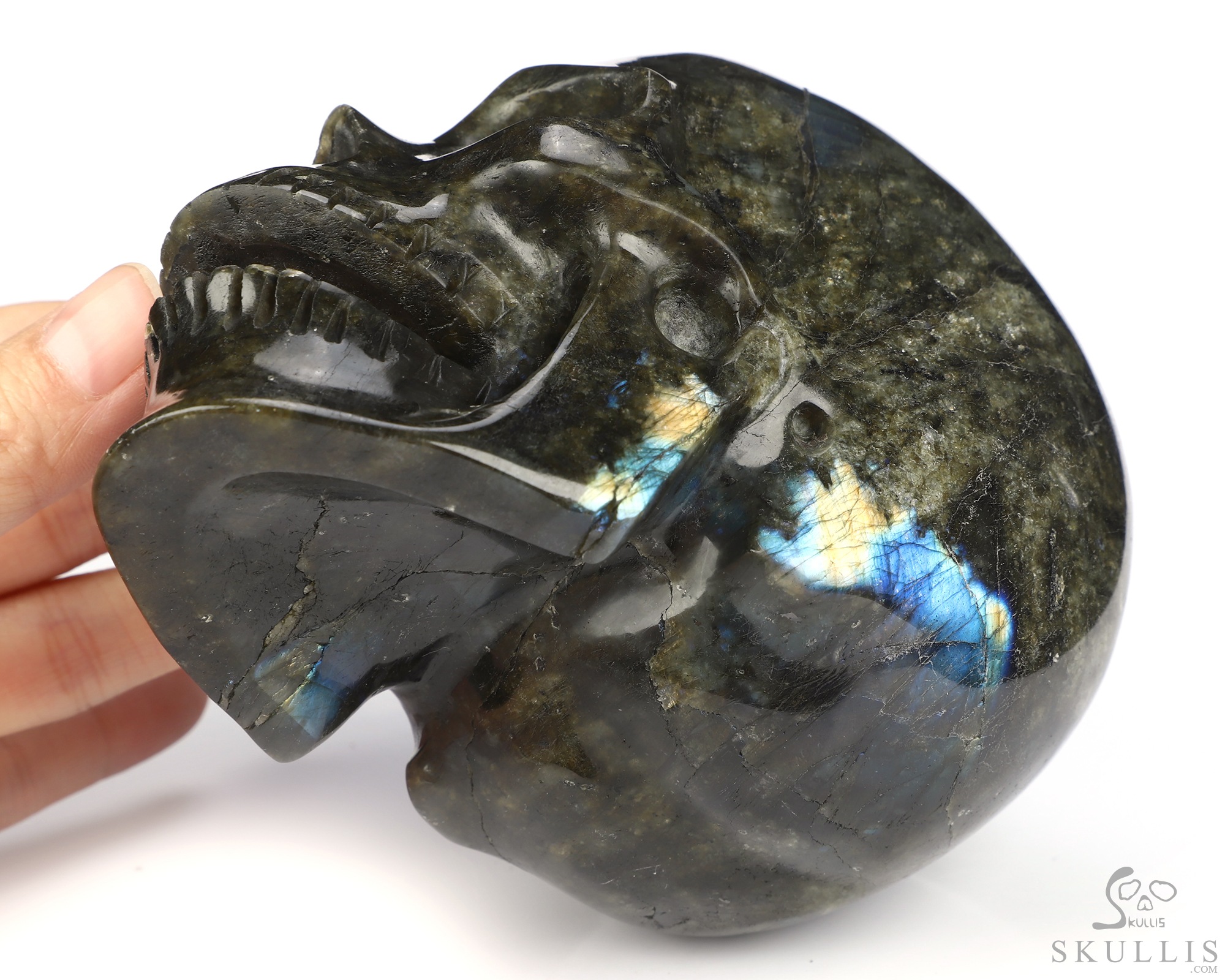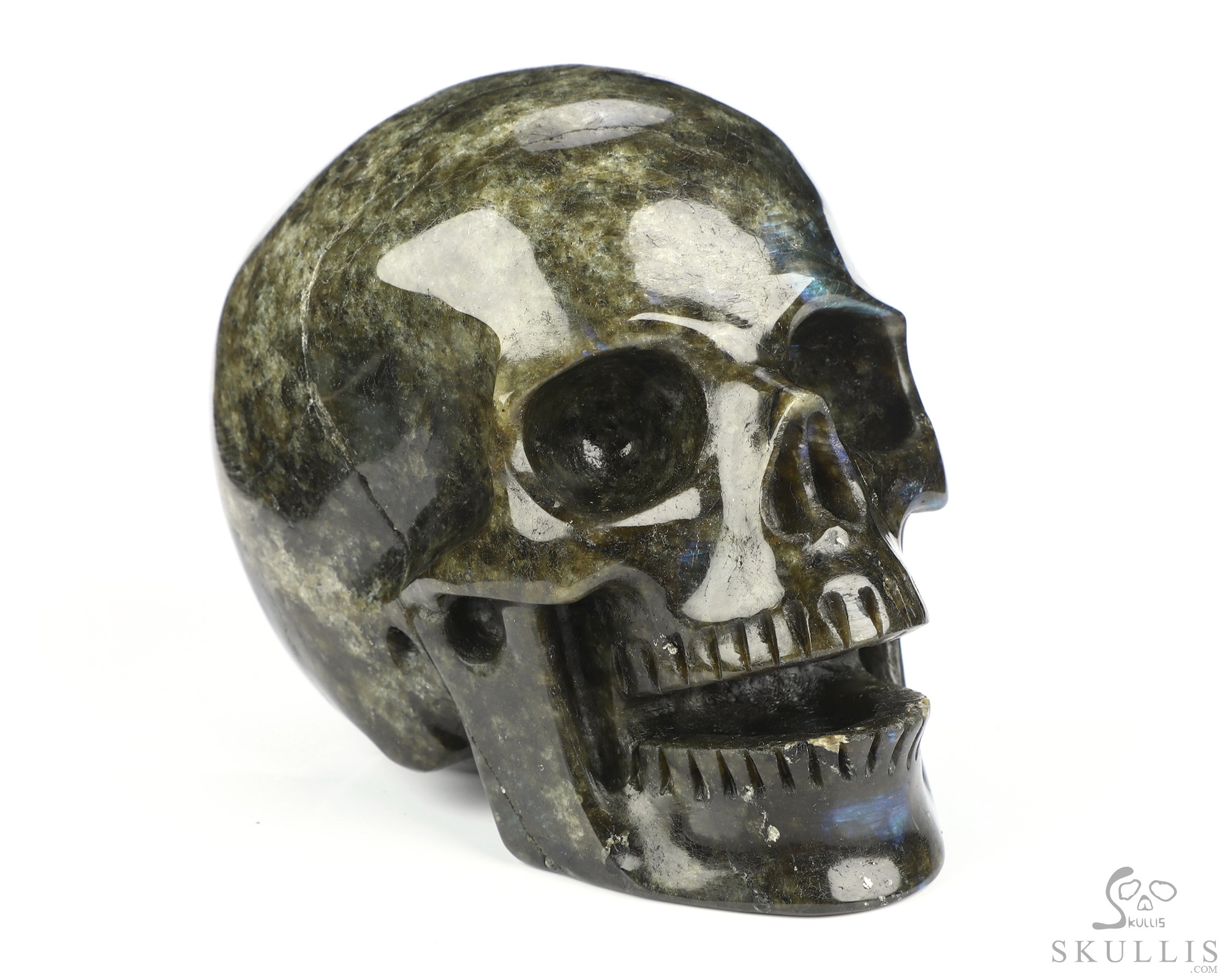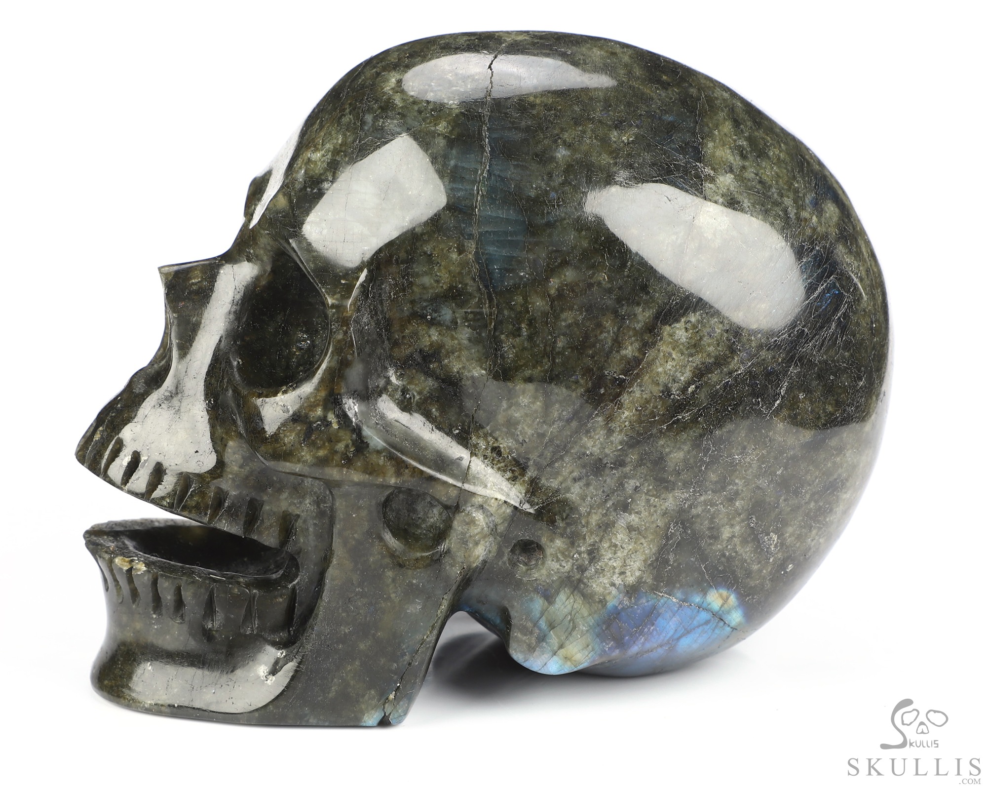 5.1" Labradorite Hand Carved Crystal Skull, Super Realistic, Crystal Healing