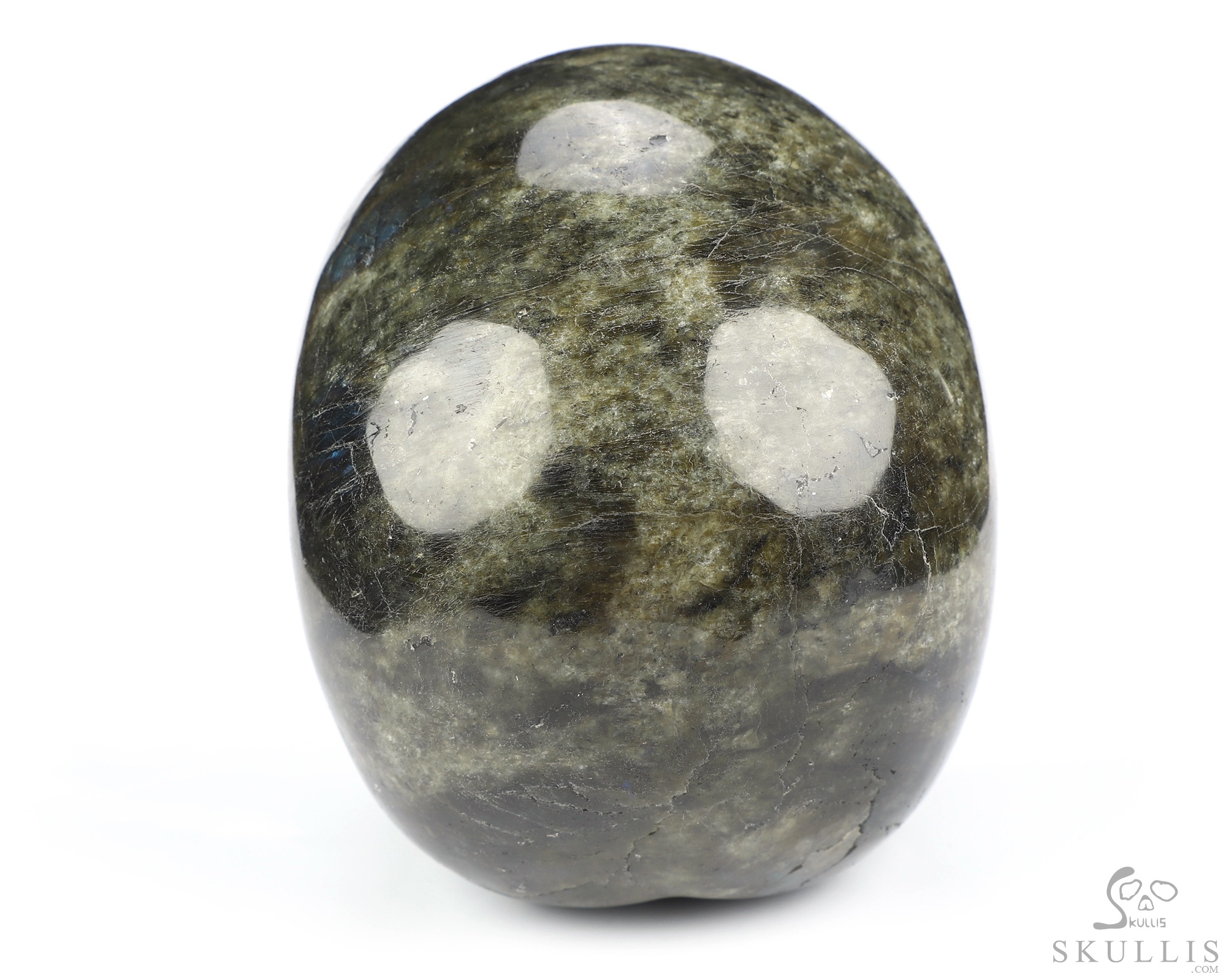 You are looking at a Labradorite skull. The skull is 5.1 inches from front to back.