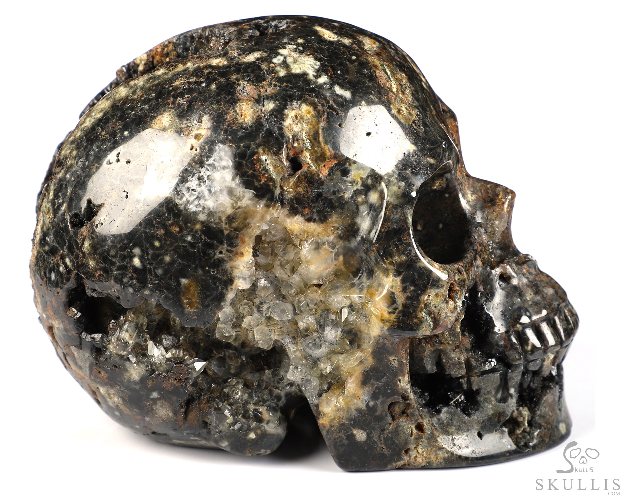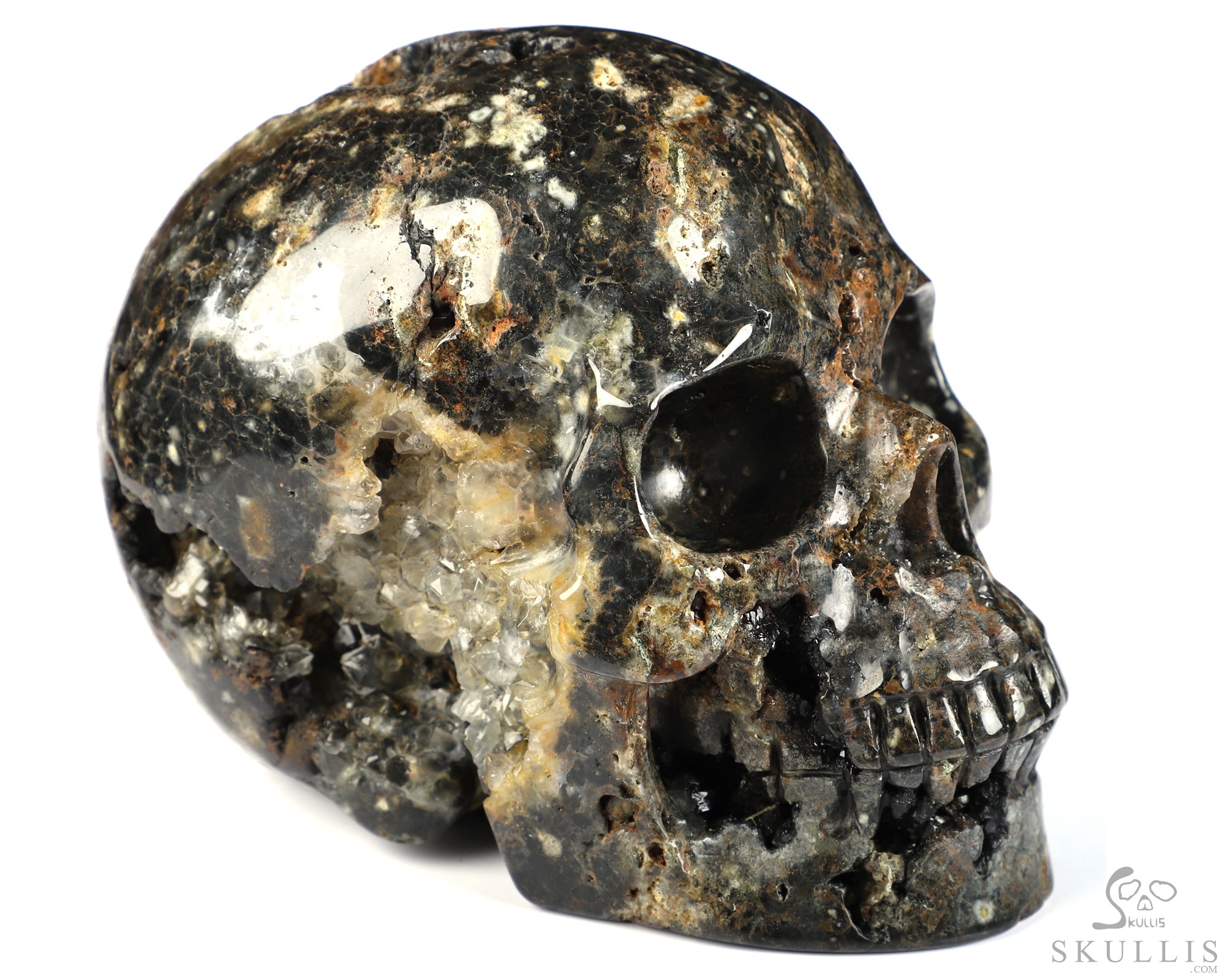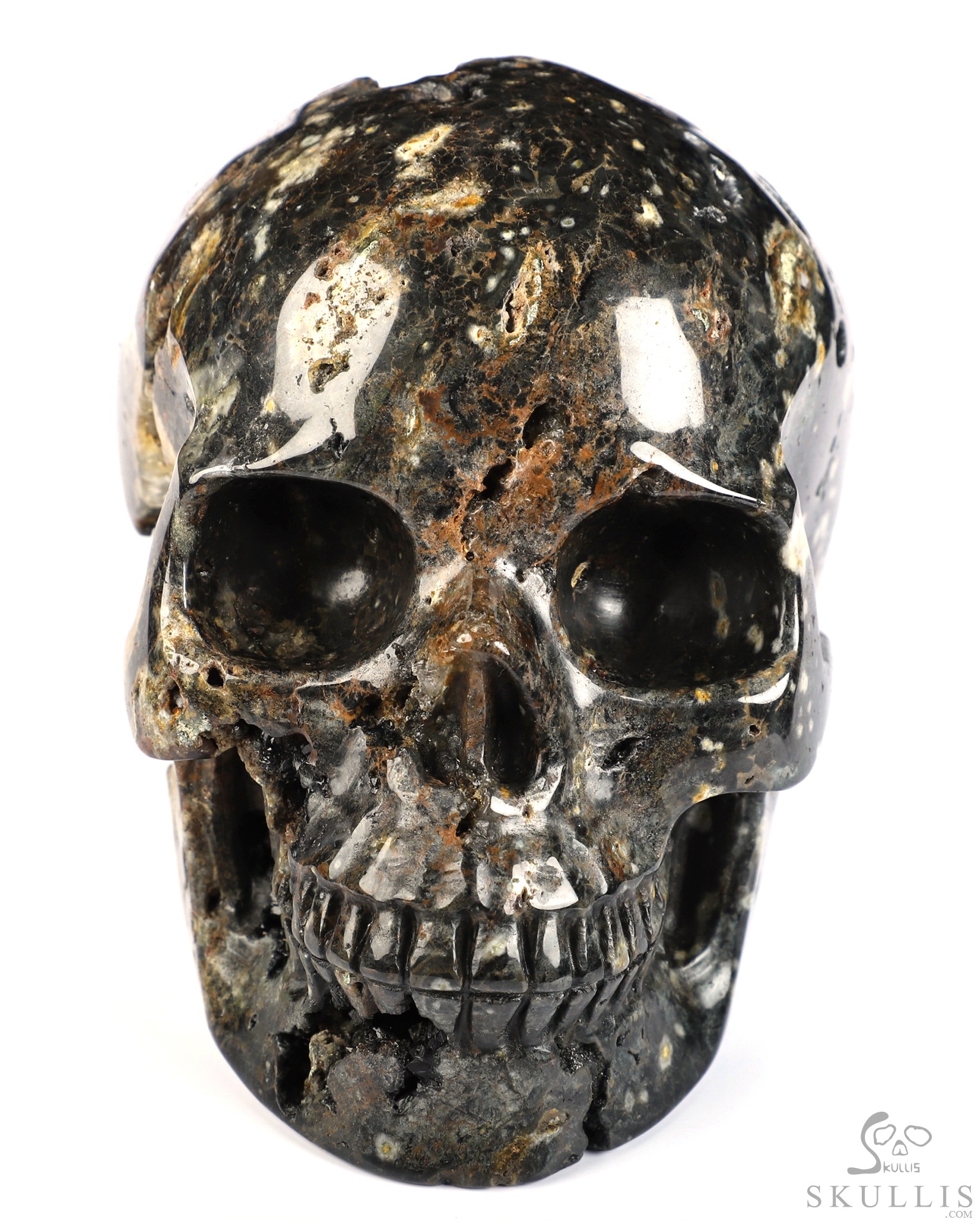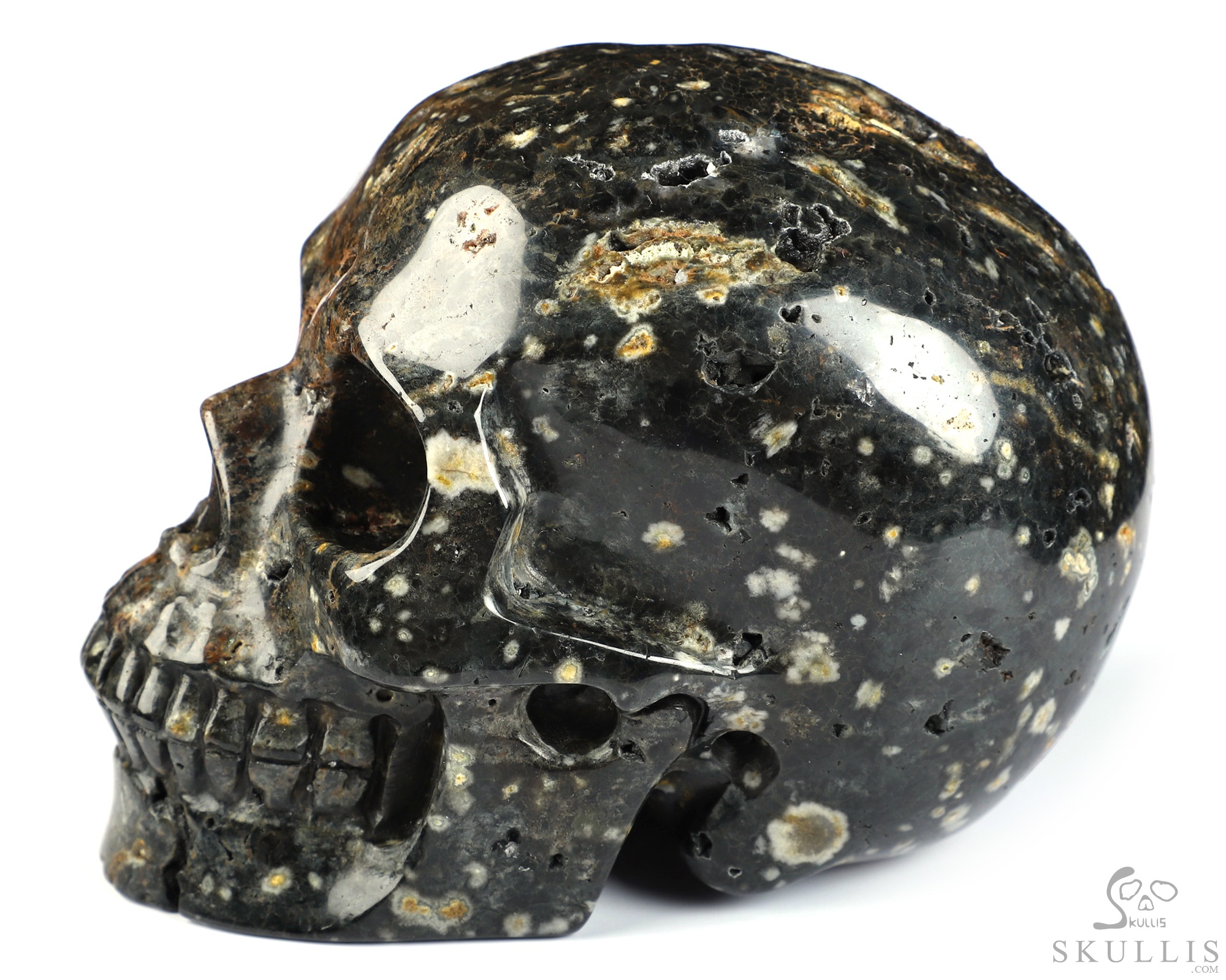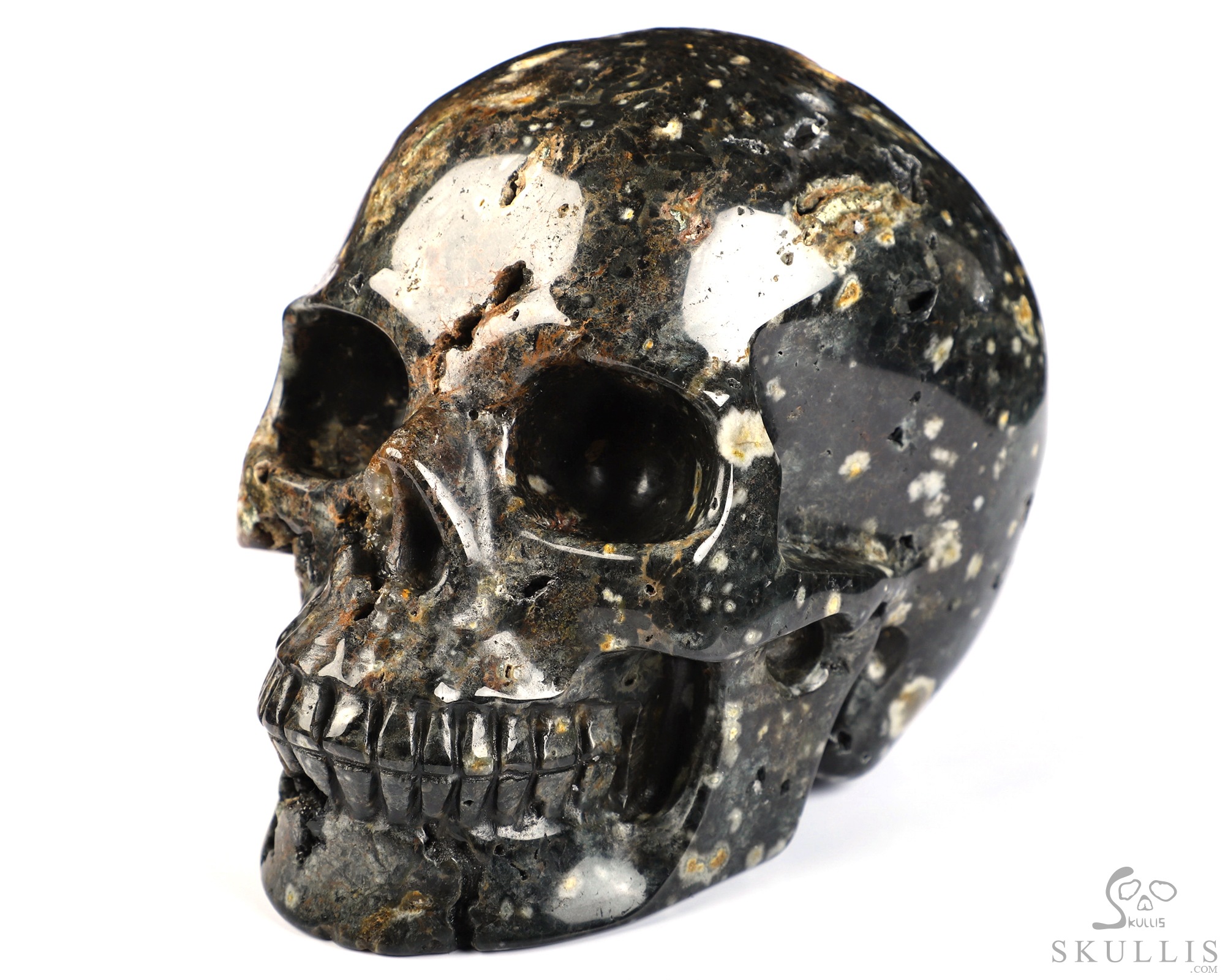 GEODE 5.0" Ocean Jasper Carved Crystal Skull, Realistic, Crystal Healing