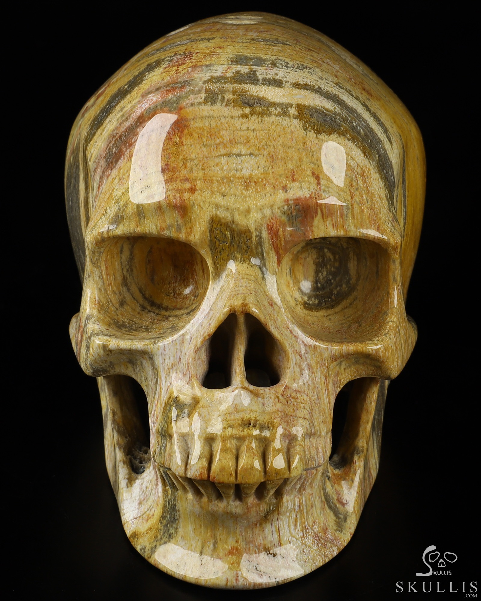Lifesized 6.9" Petrified Wood Hand Carved Crystal Skull, Super Realistic, Crystal Healing