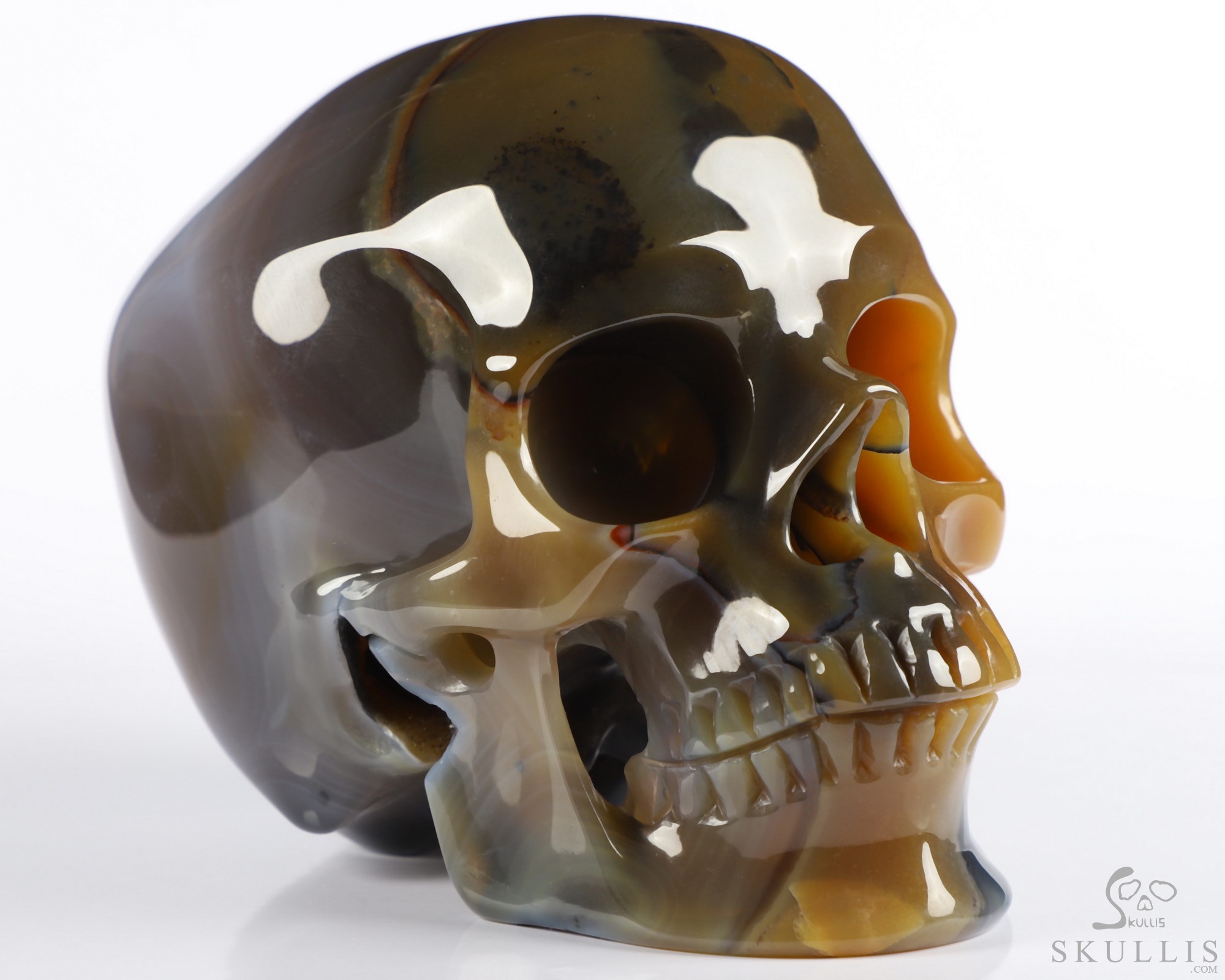 4.4" Premium Brazilian Agate Hand Carved Crystal Skull Fine Art Sculpture, Crystal Healing