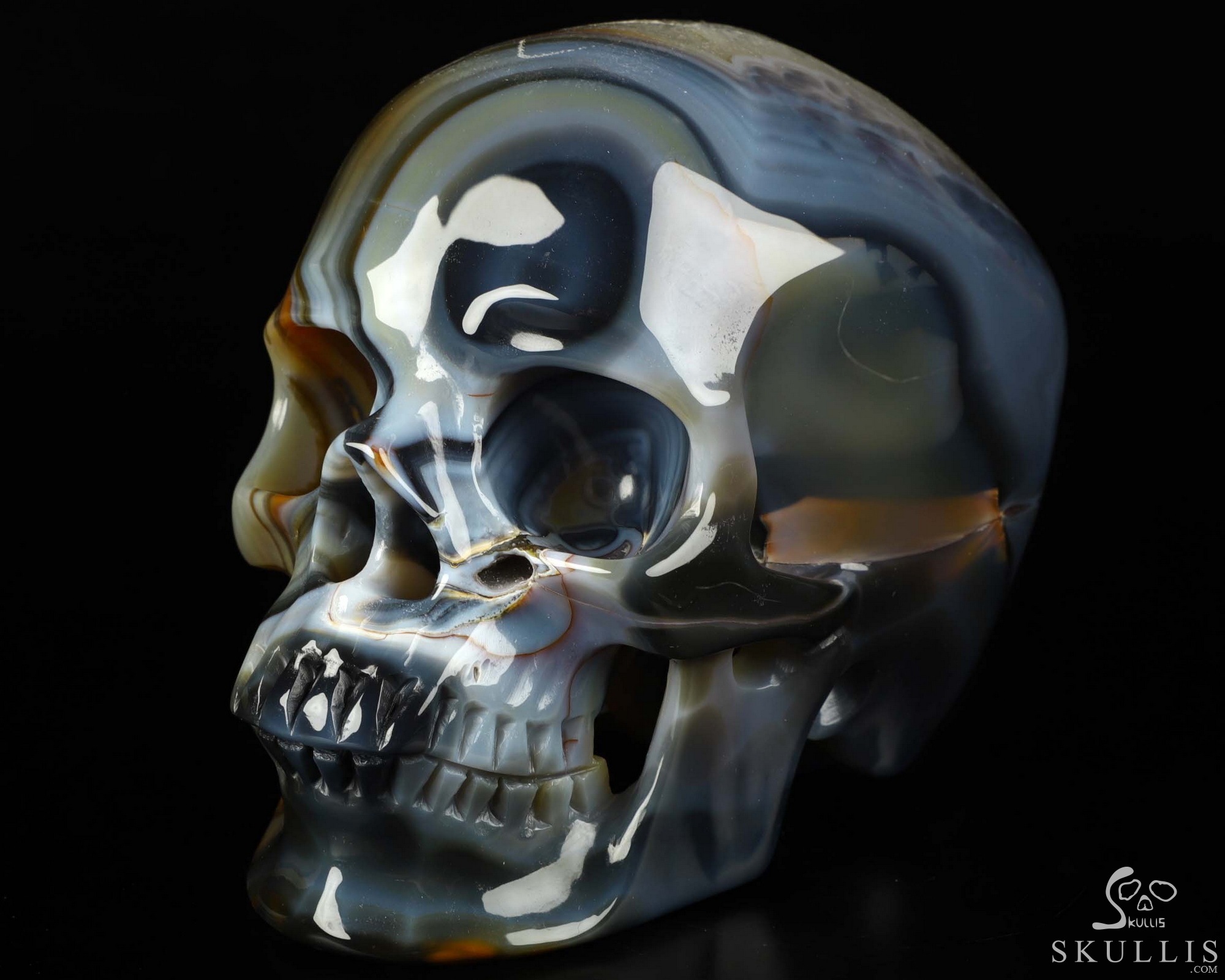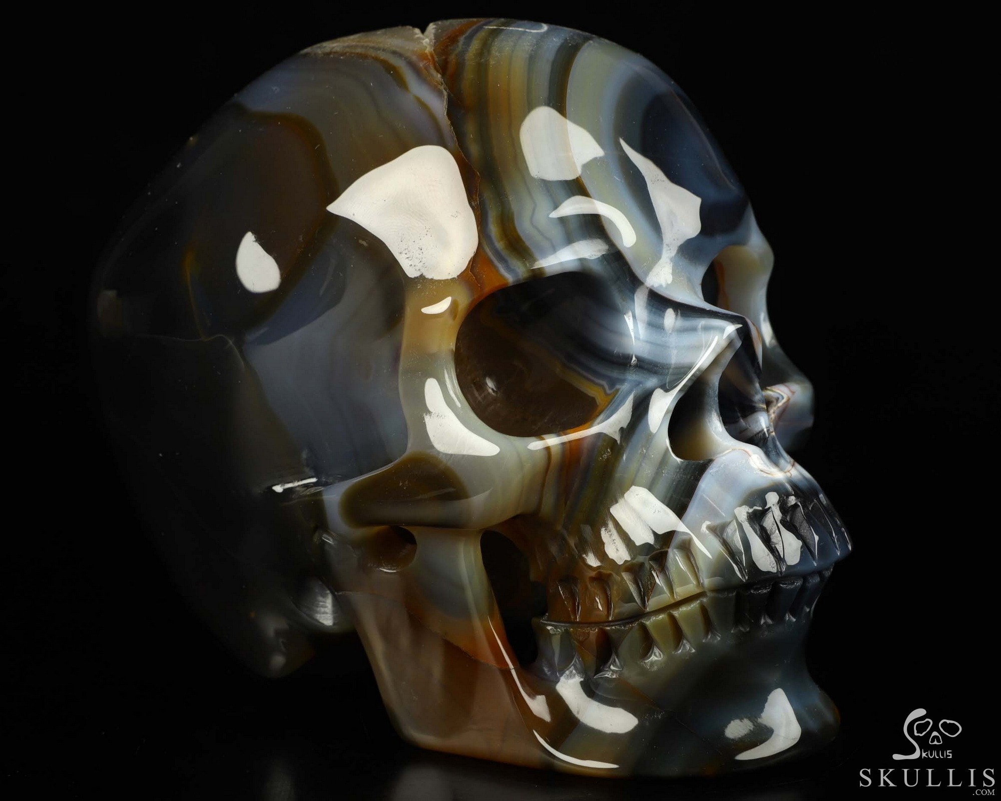 5.0" Premium Brazilian Agate Geode Carved Crystal Skull Realistic, Crystal Healing