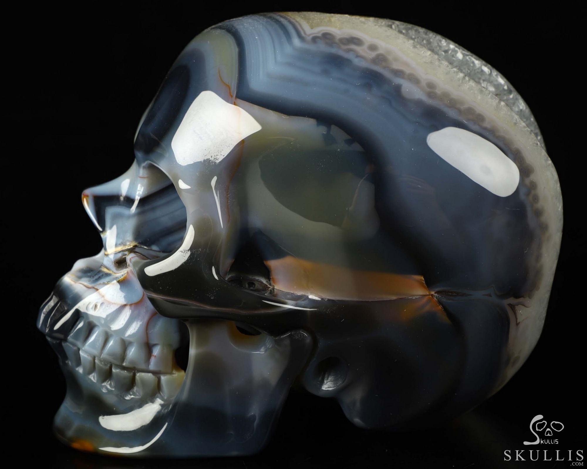Lifesized 6.9" Premium Brazilian Agate Geode Carved Crystal Skull,Super Realistic, Crystal Healing