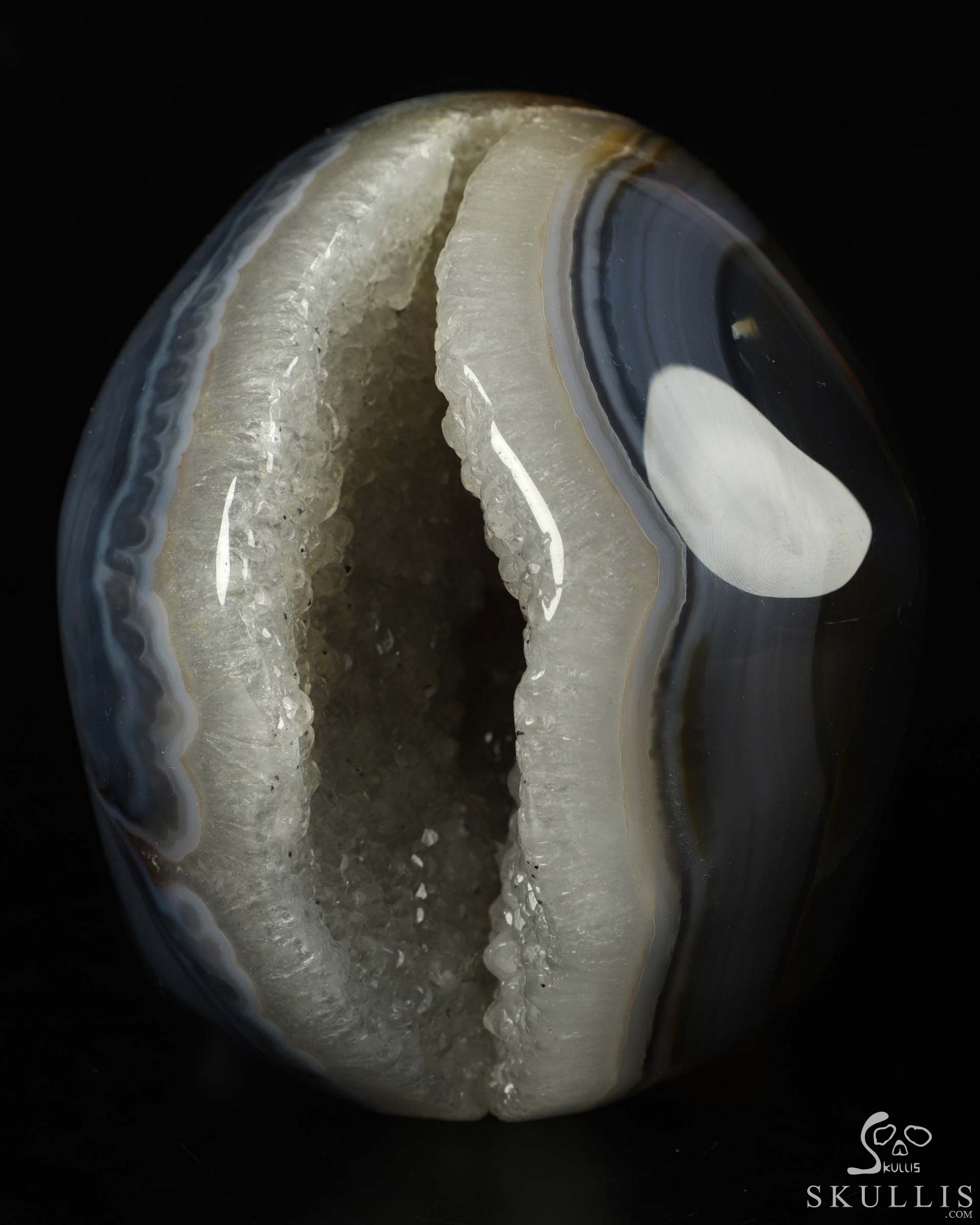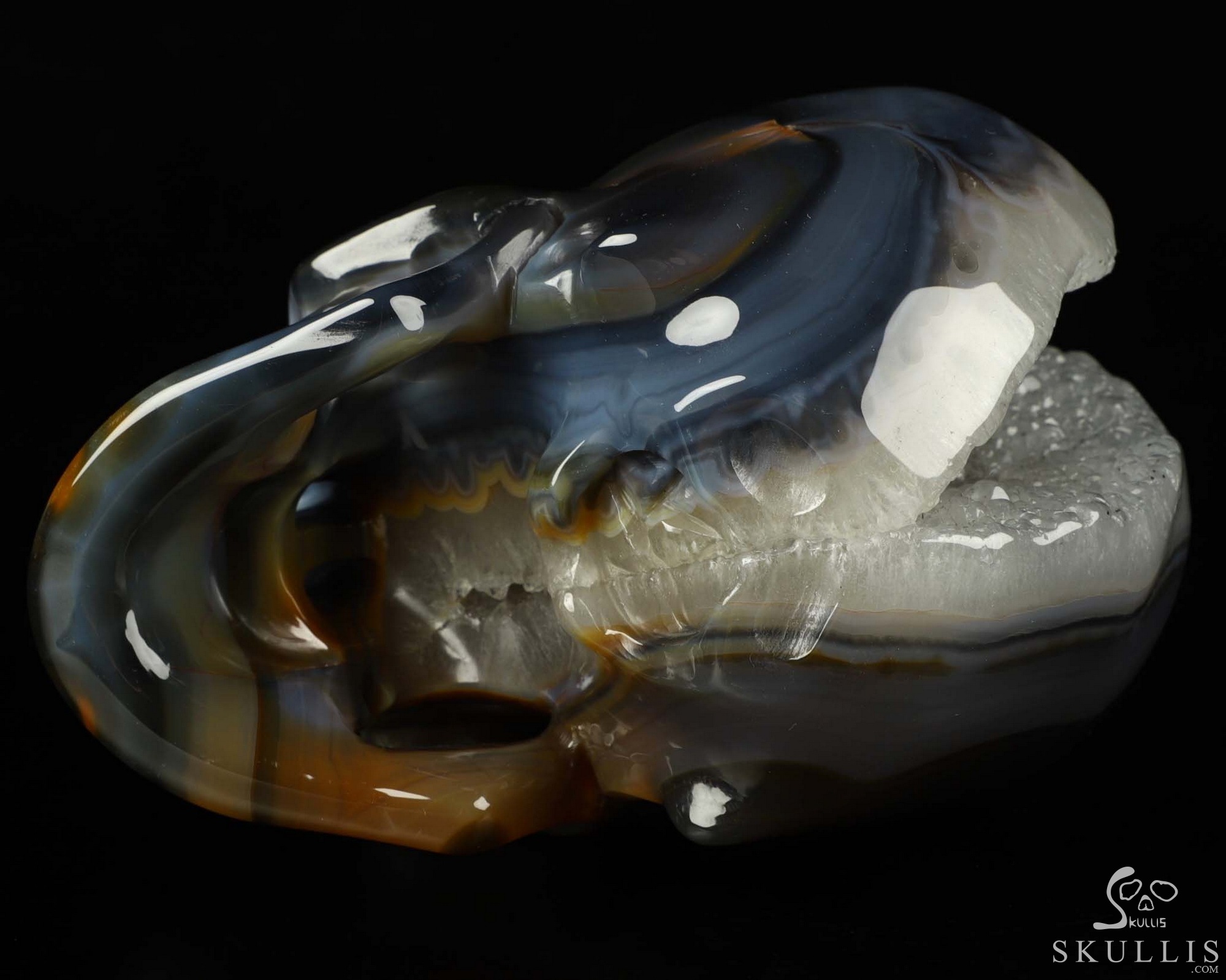 6.7" Premium Brazilian Agate Geode Carved Crystal Skull, Crystal Healing