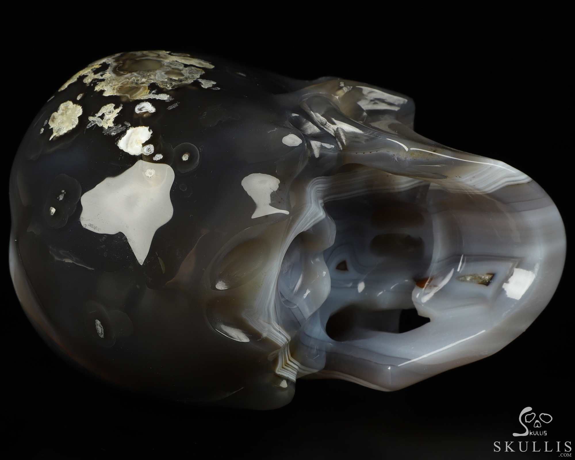 5.1" Premium Brazilian Agate Hand Carved Crystal Skull, Super Realistic, Crystal Healing
