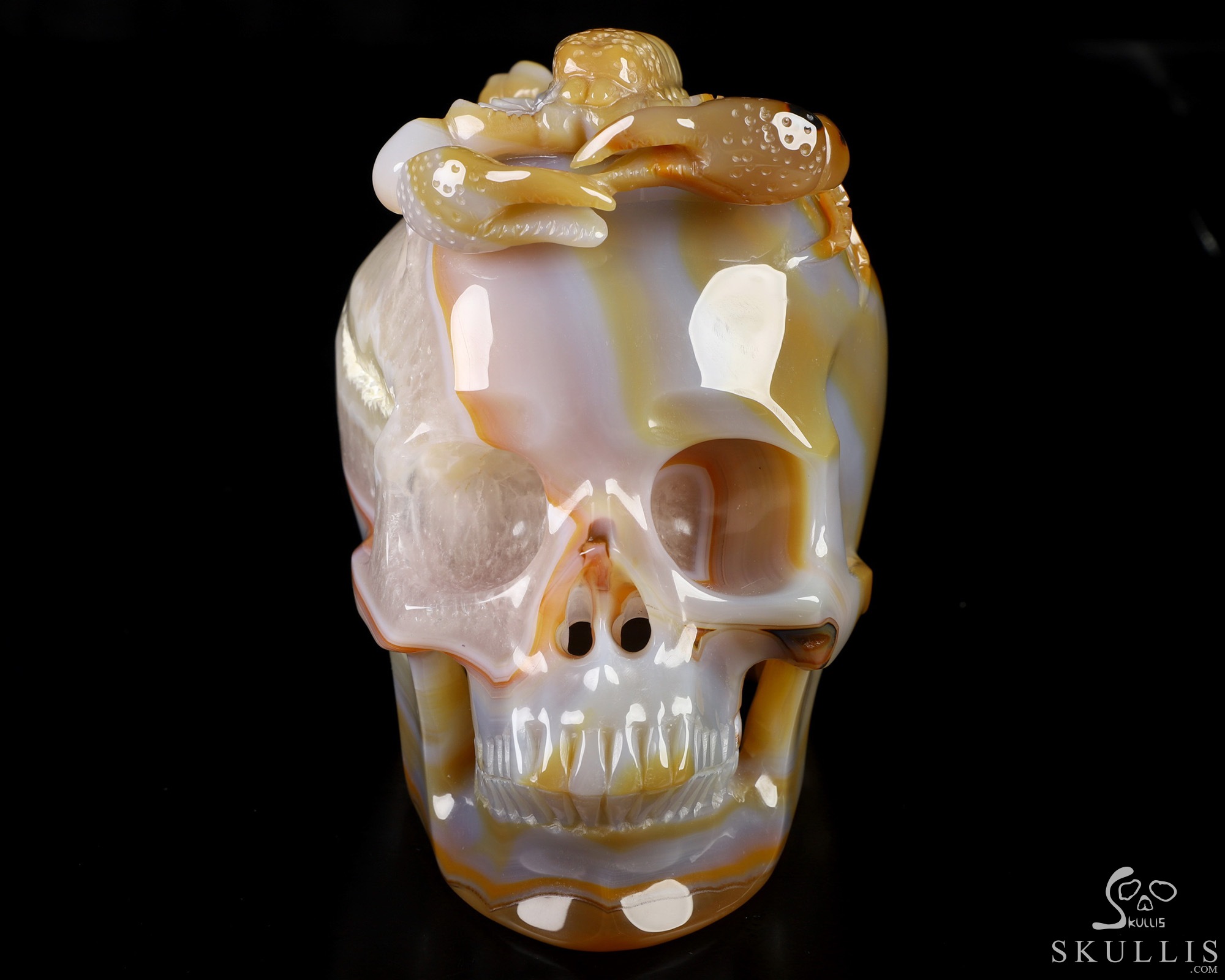 5.1" Premium Brazilian Agate Hand Carved Crystal Skull and Scorpion Fine Art Sculpture, Crystal Healing