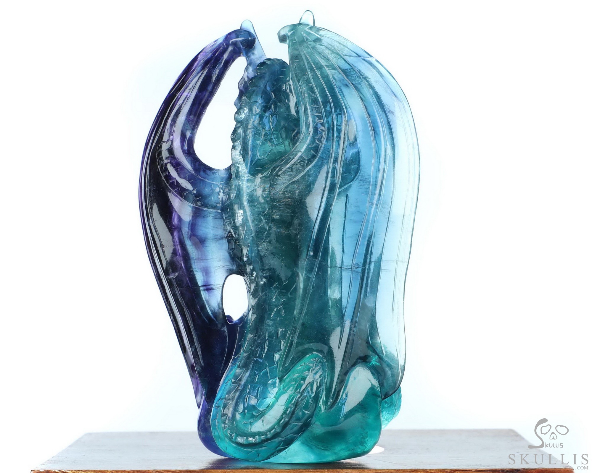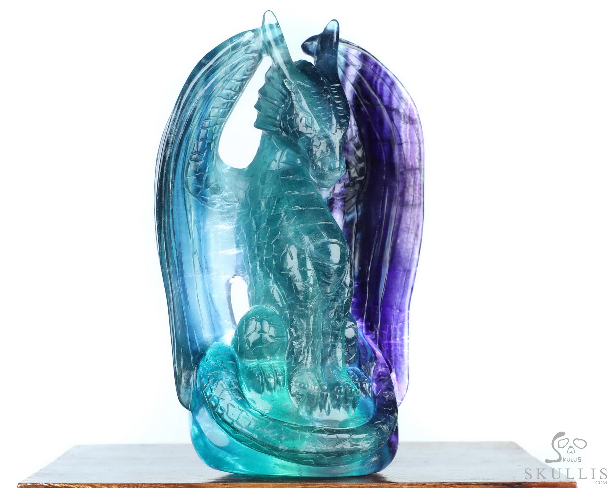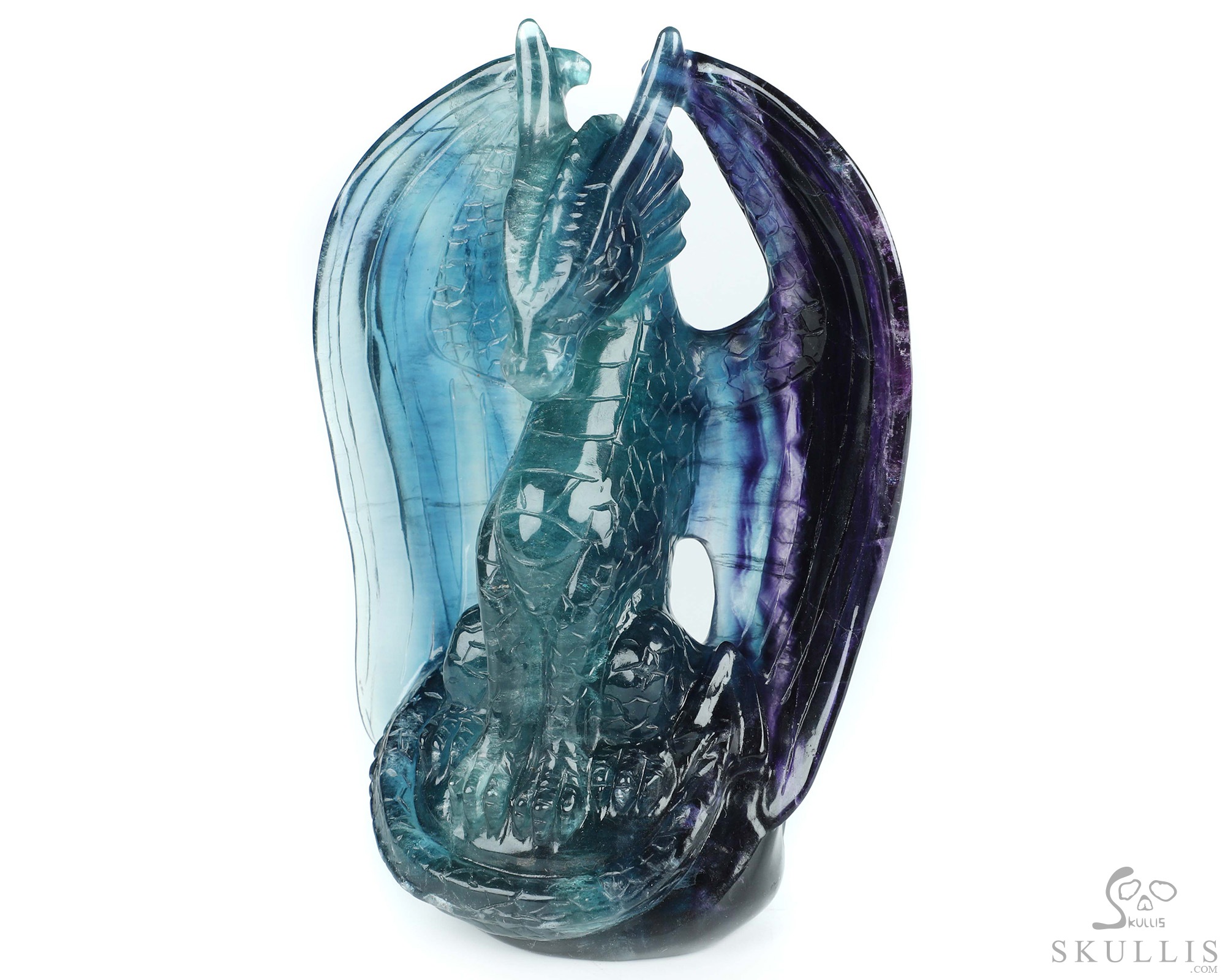 5.1" Top Quality Fluorite Hand Carved Crystal Dragon Sculpture, Crystal Healing