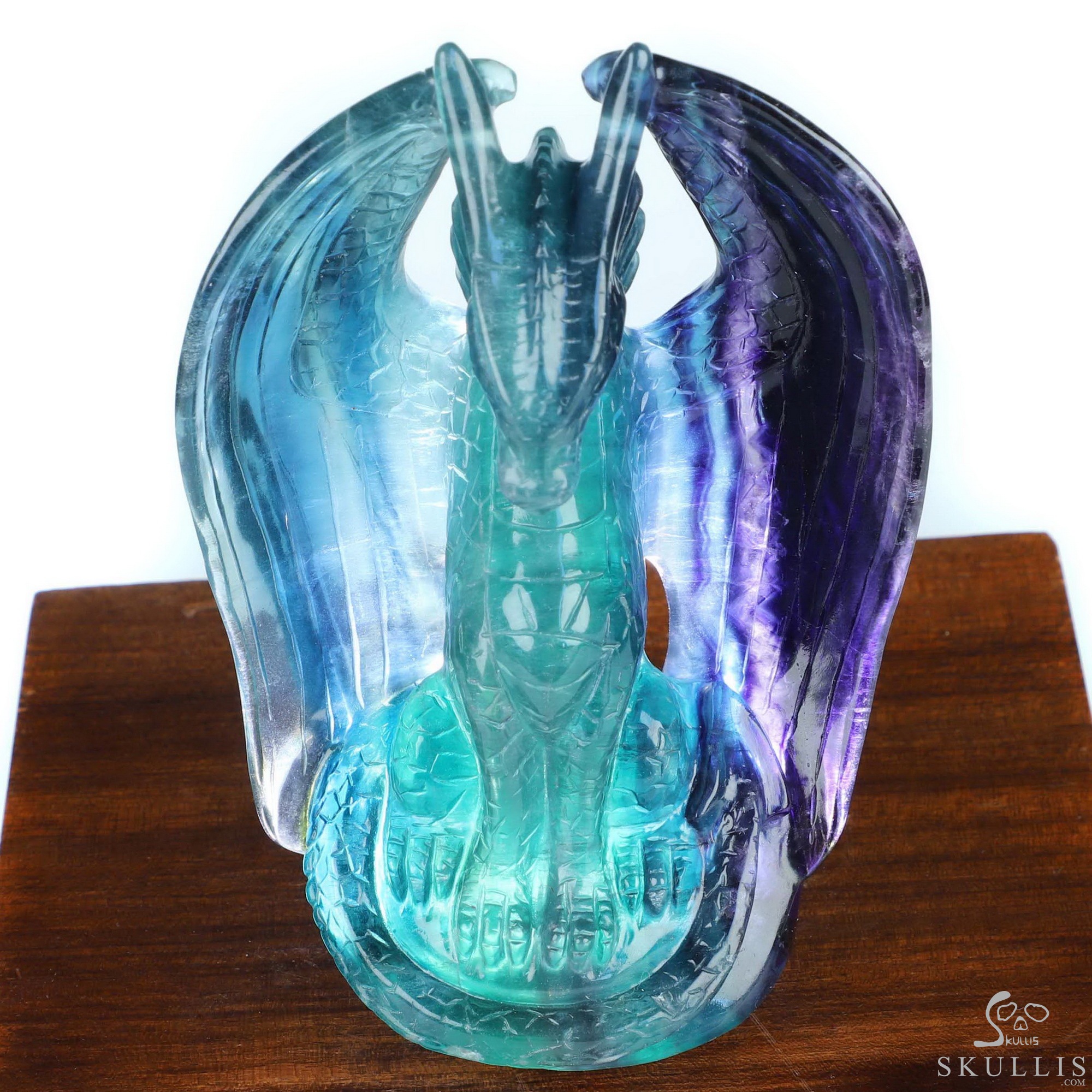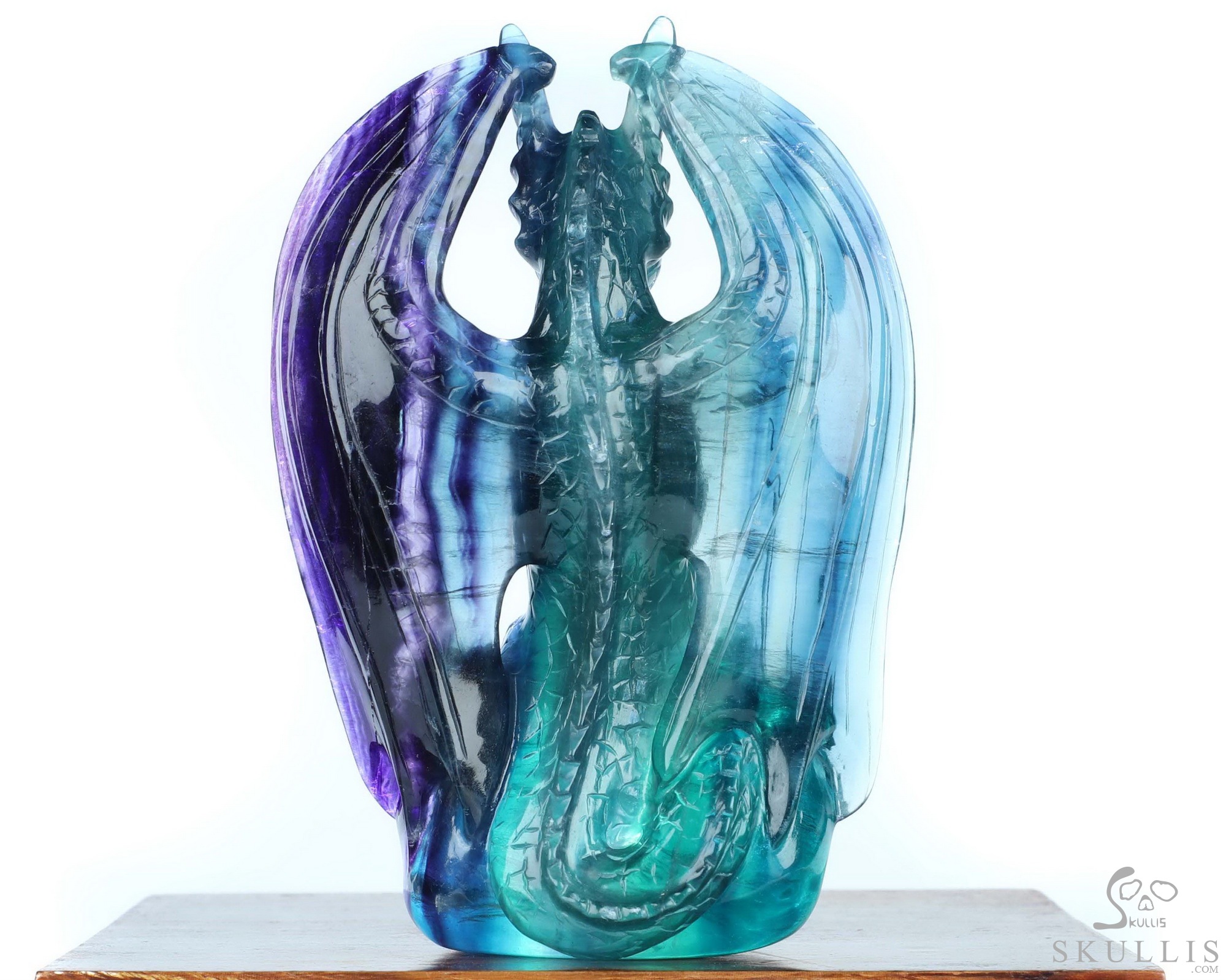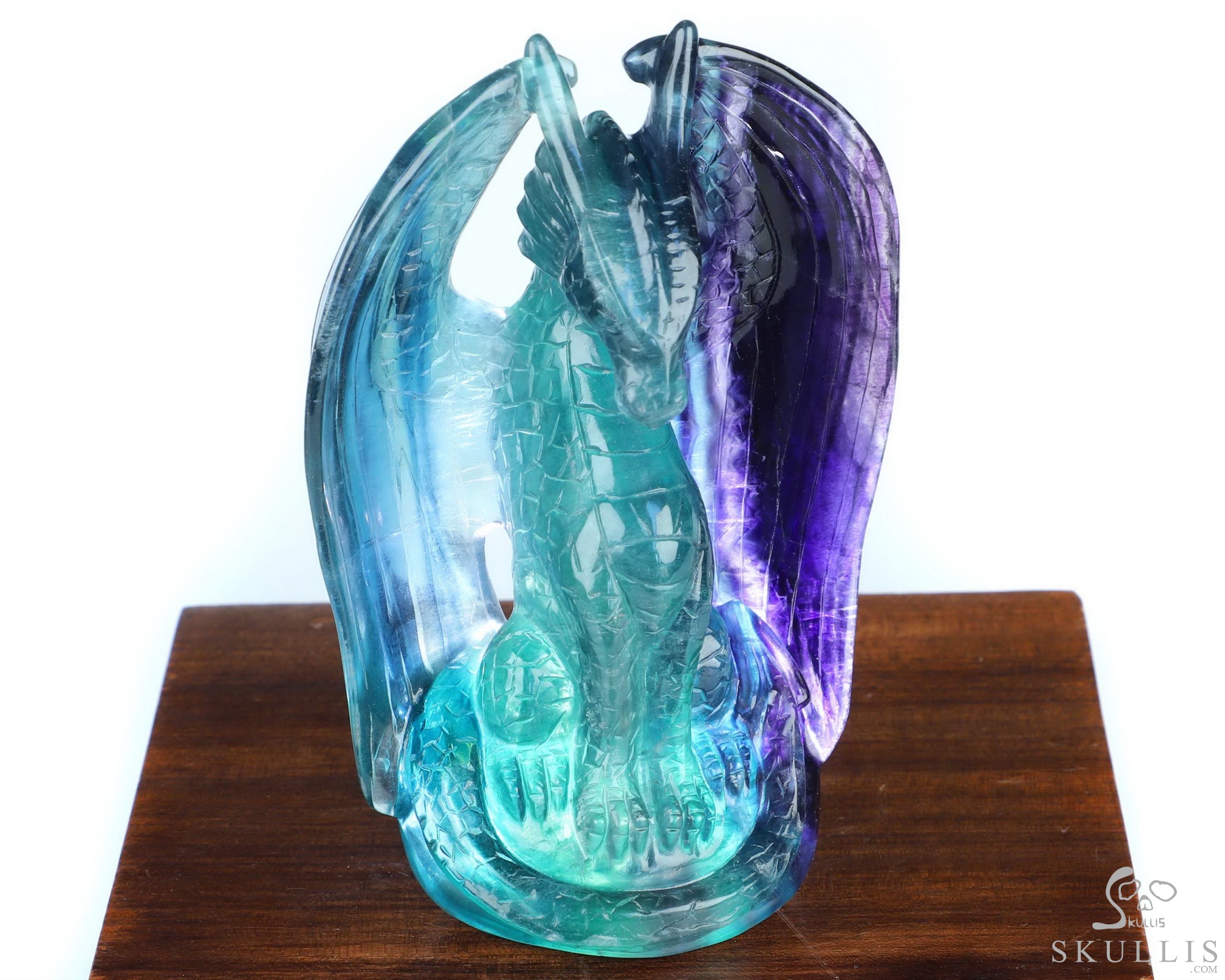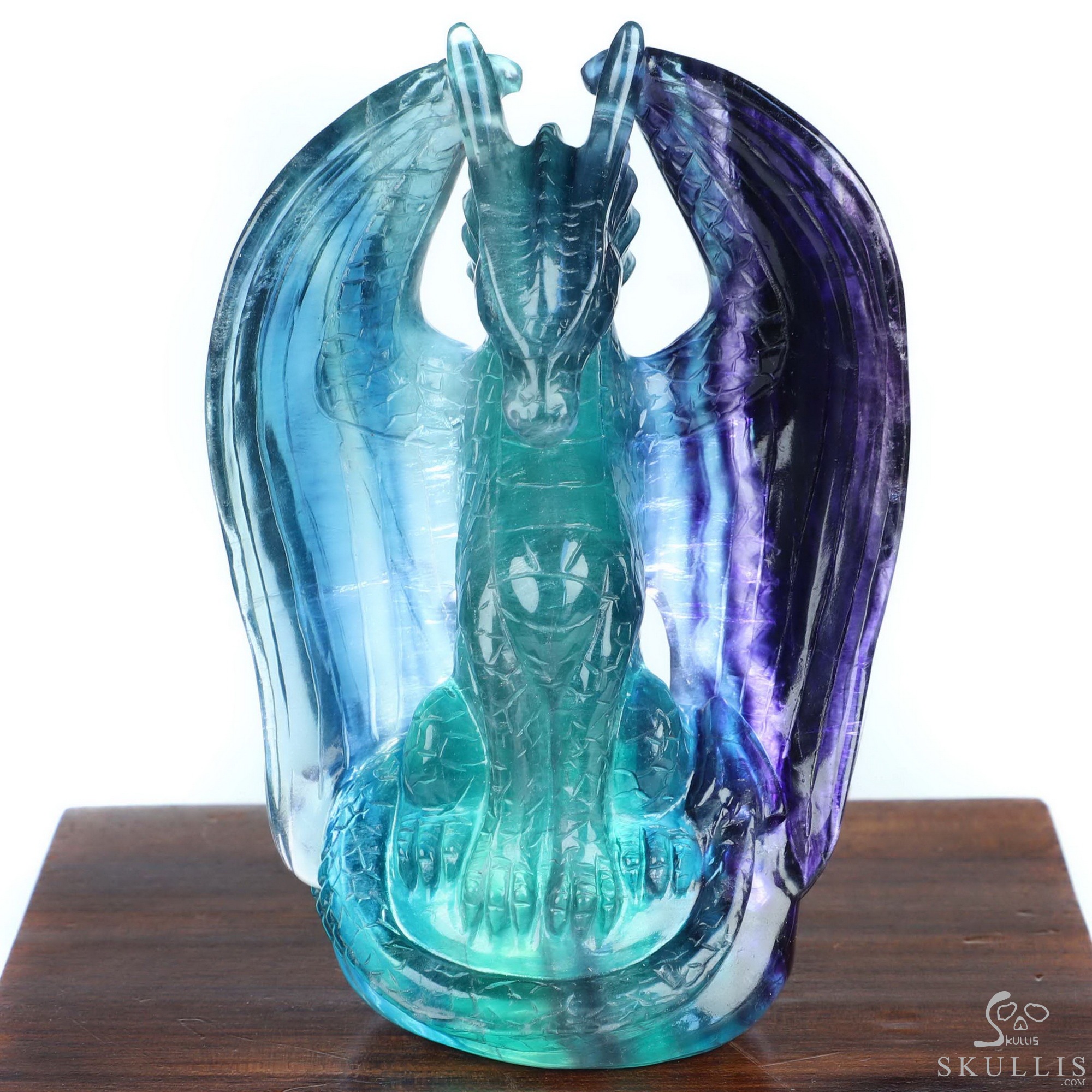 5.1" Top Quality Fluorite Hand Carved Crystal Dragon Sculpture, Crystal Healing