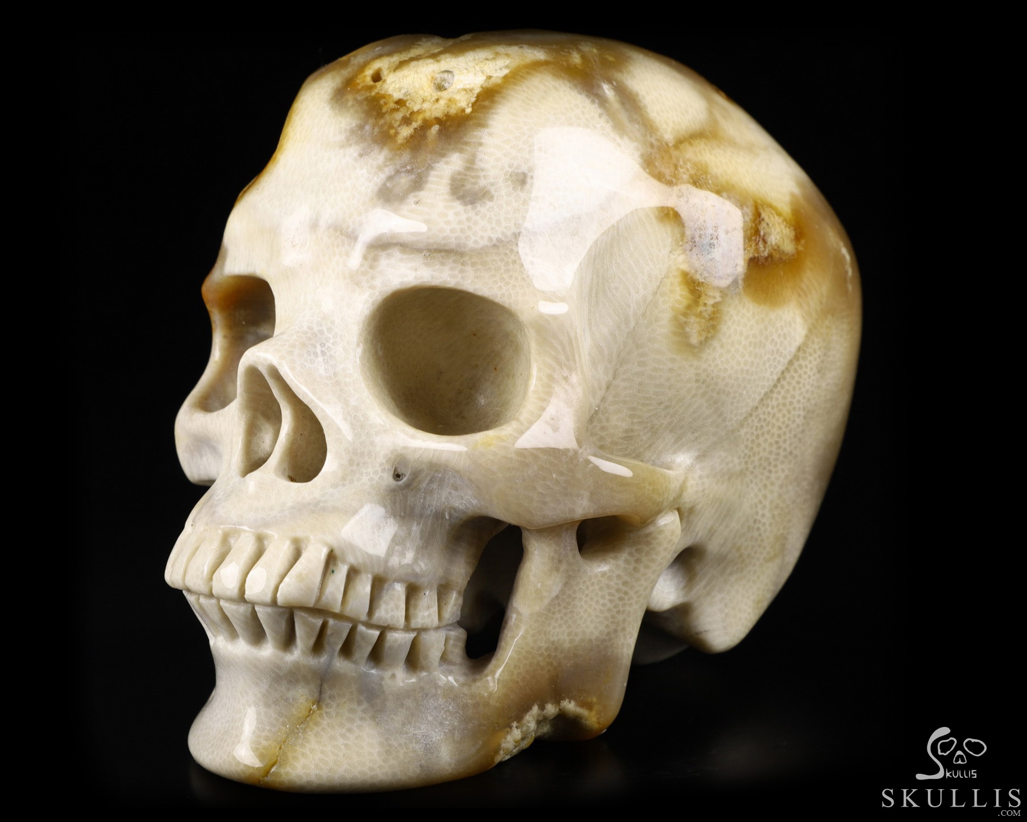 5.1" Coral Fossil Hand Carved Crystal Skull, Super Realistic, Crystal Healing