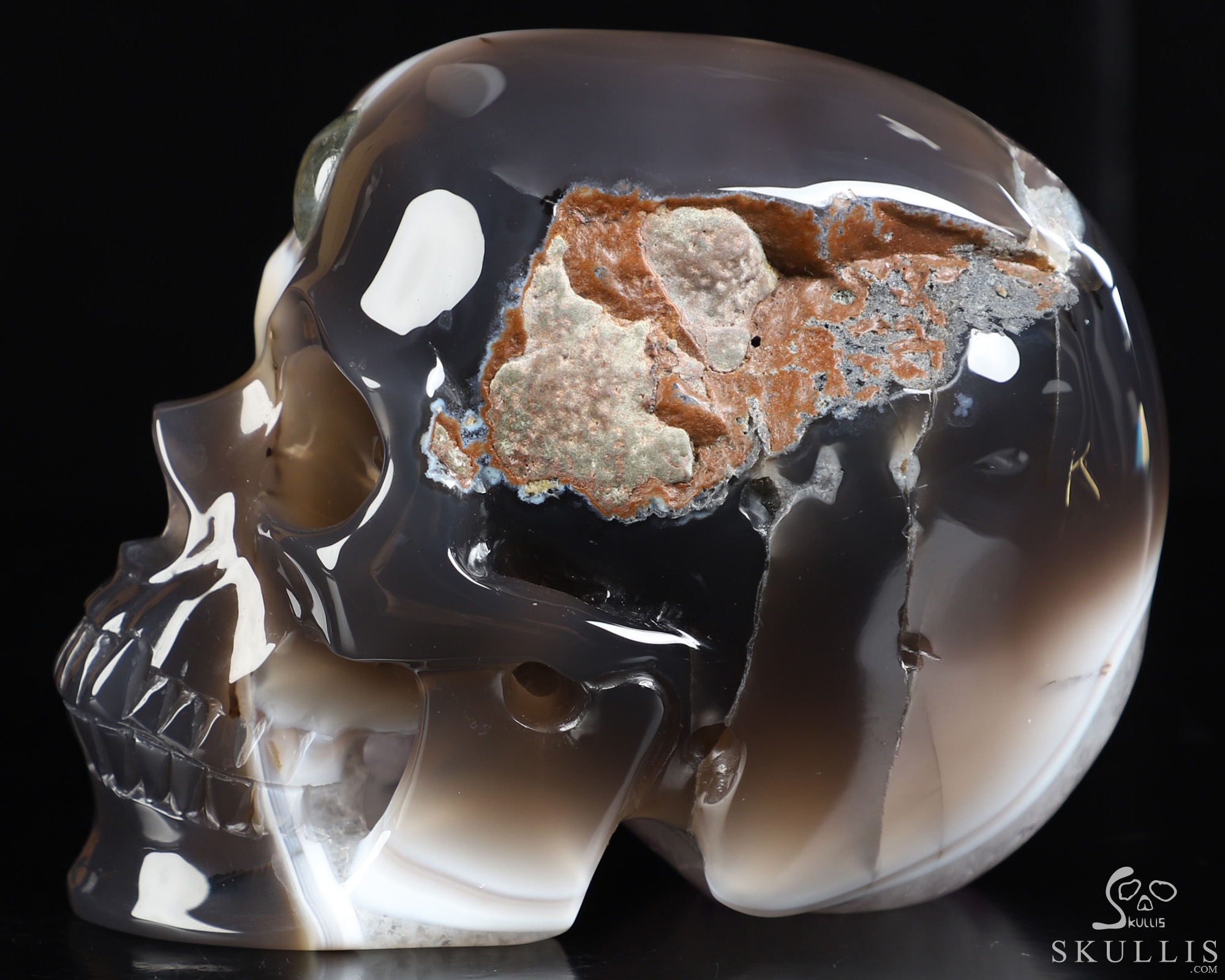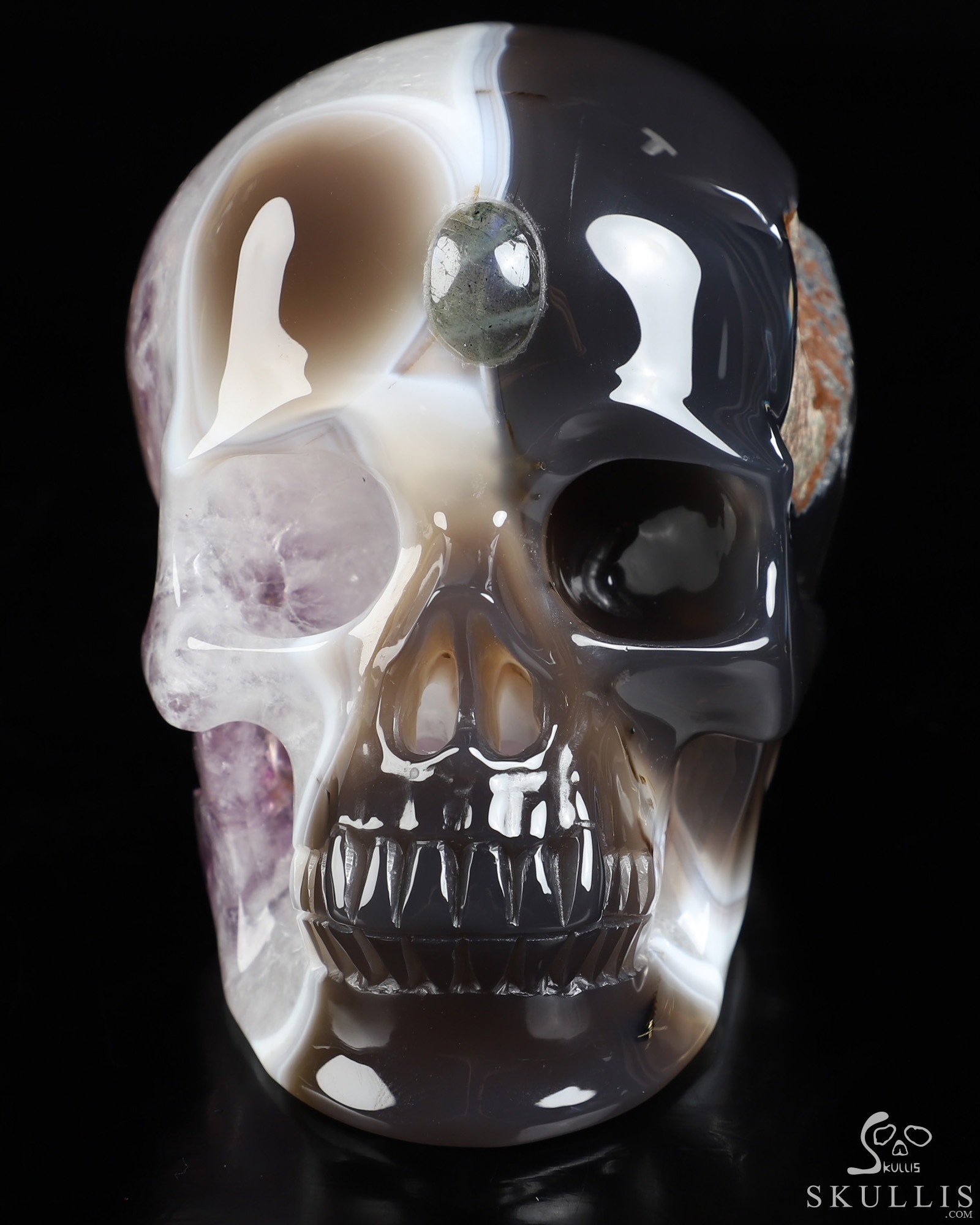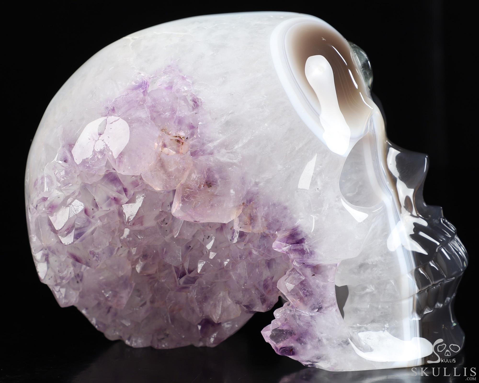 Amazing 6.5" Agate Amethyst Geode Carved Crystal Skull, Realistic