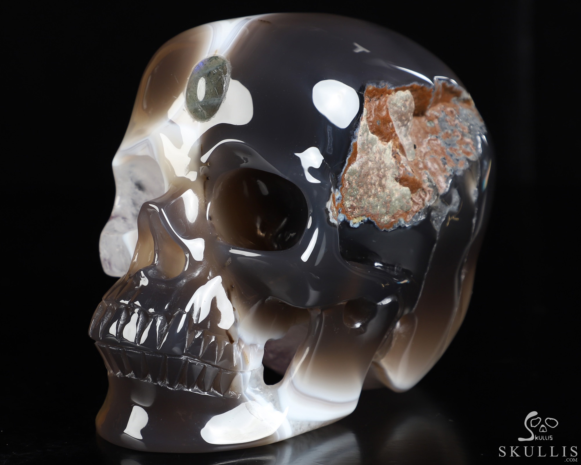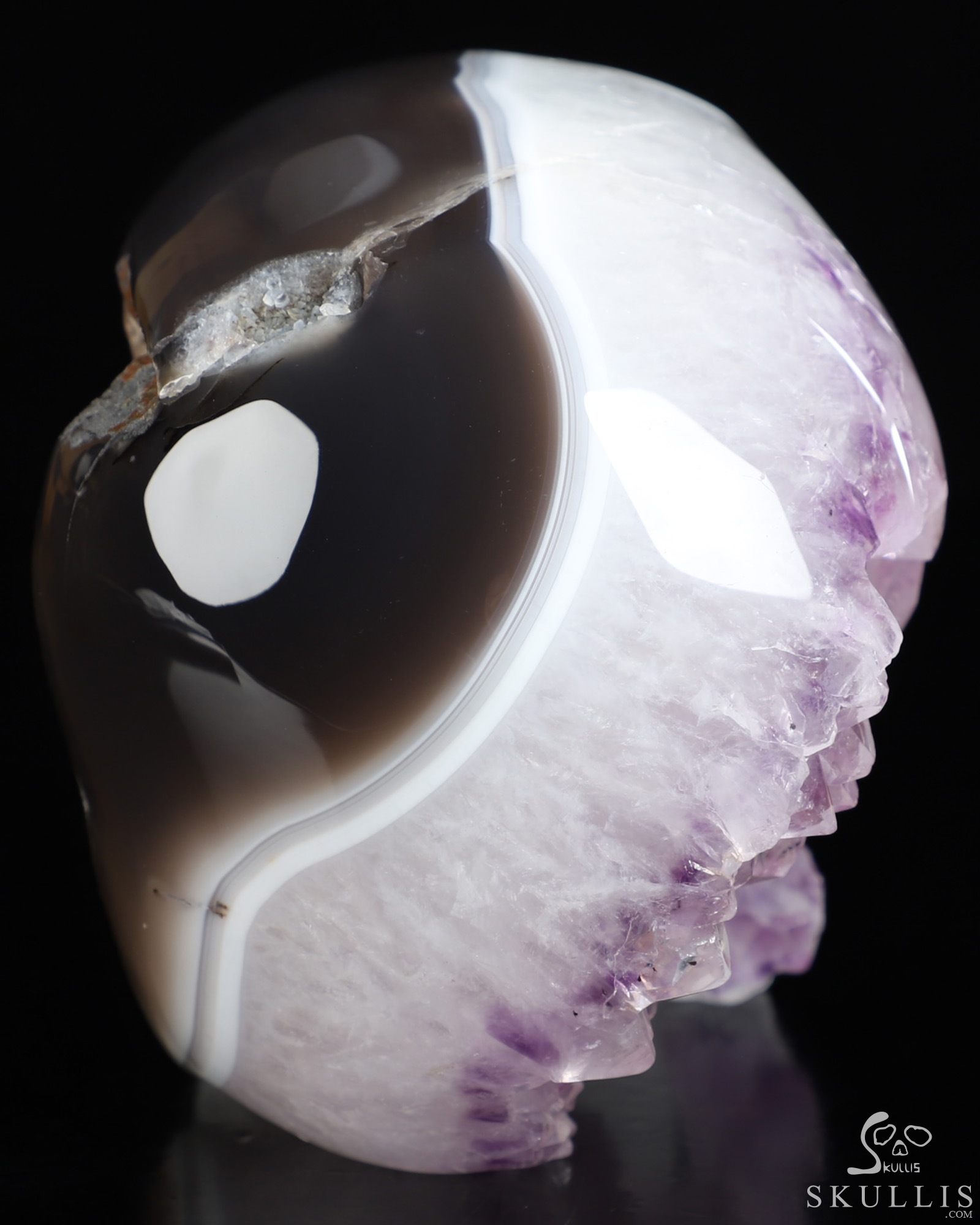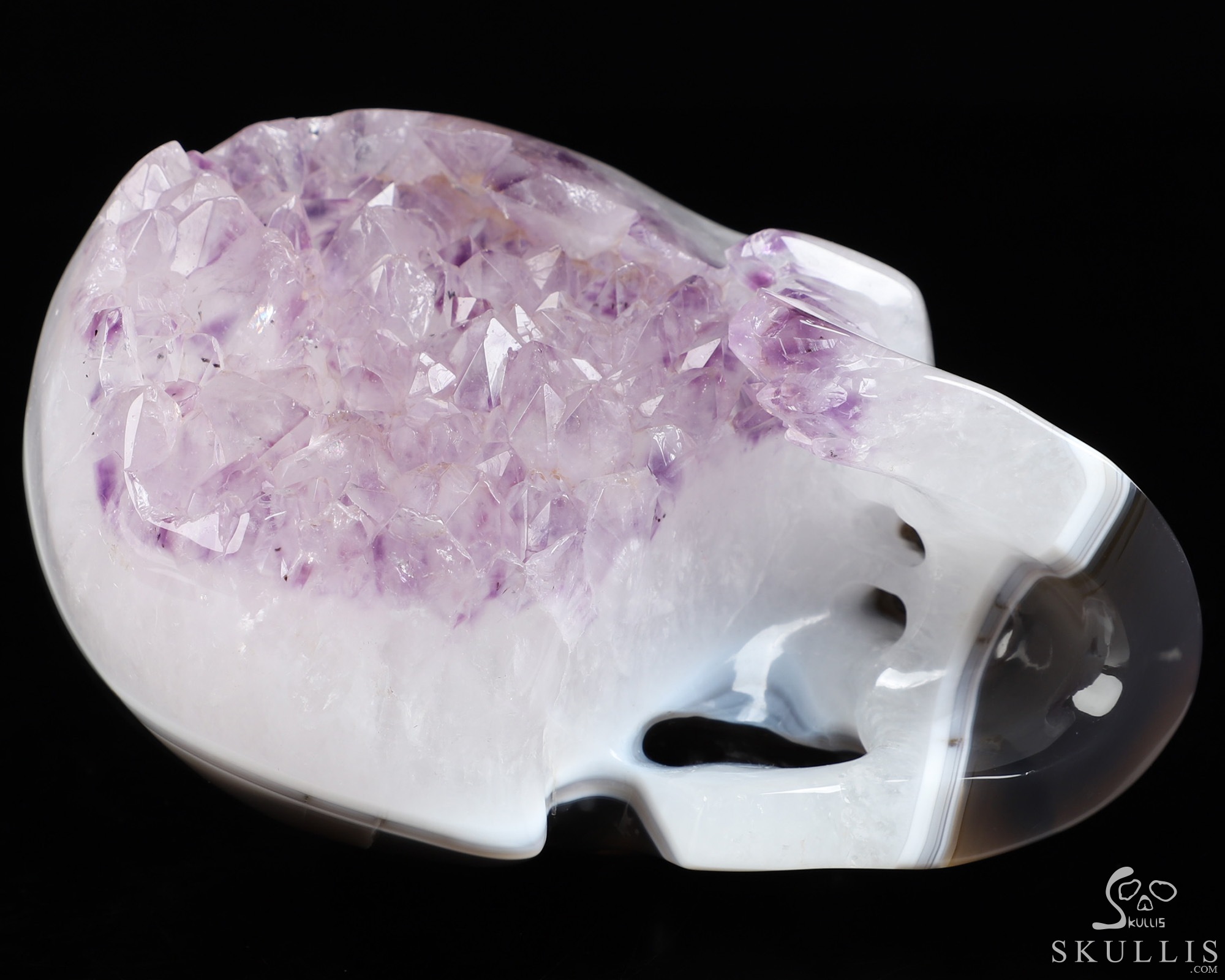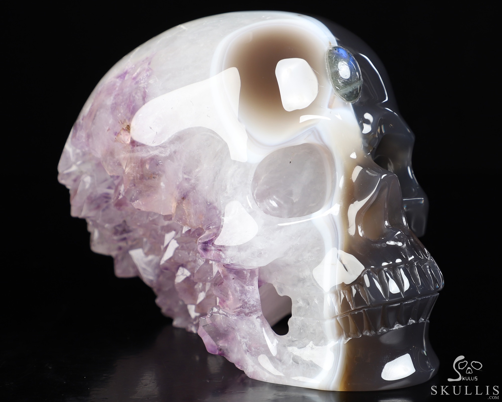 5.3" Agate Amethyst Geode Hand Carved Crystal Skull, Realistic, Crystal Healing