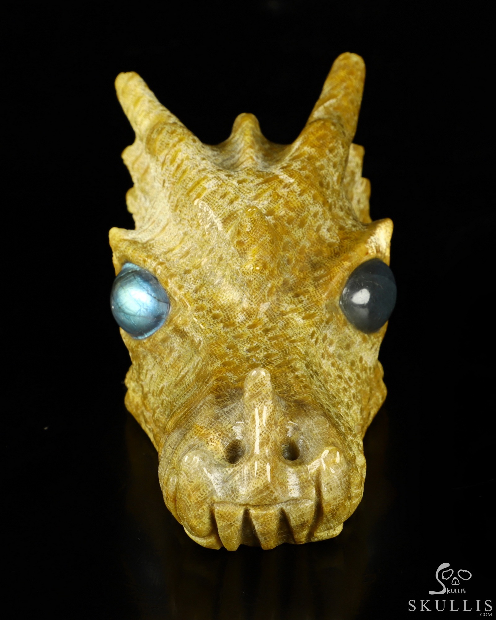 3.5" Coral Fossil Hand Carved Crystal Skull, Crystal Healing
