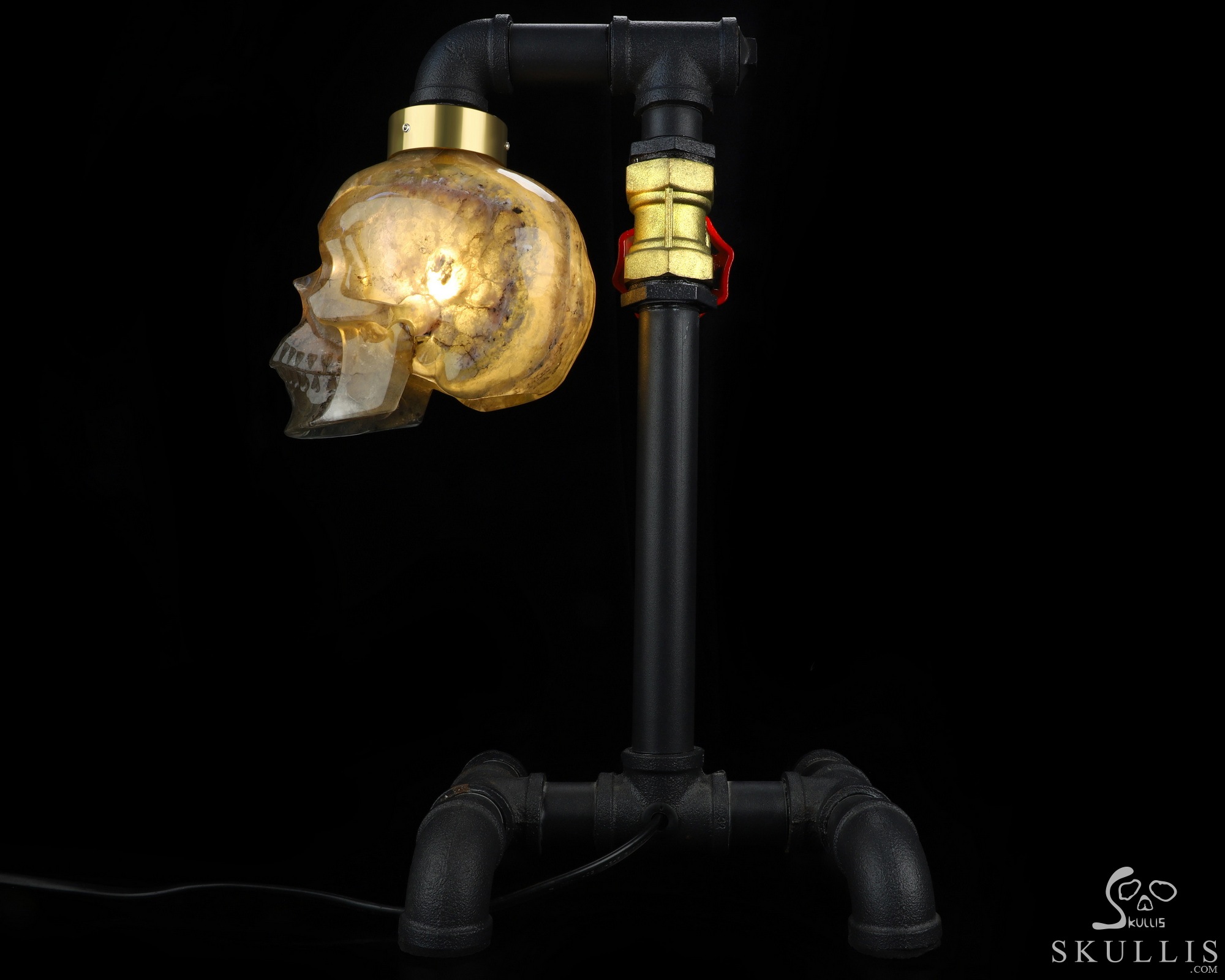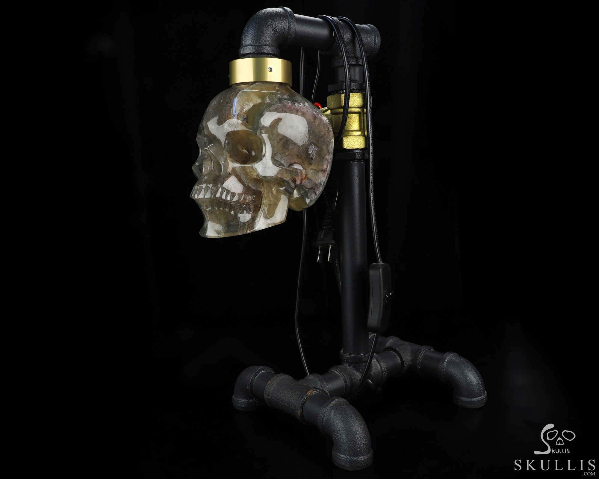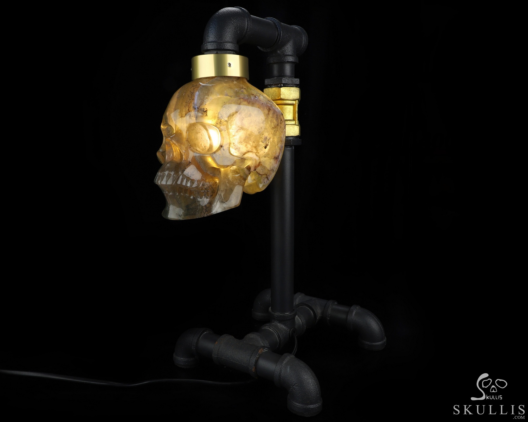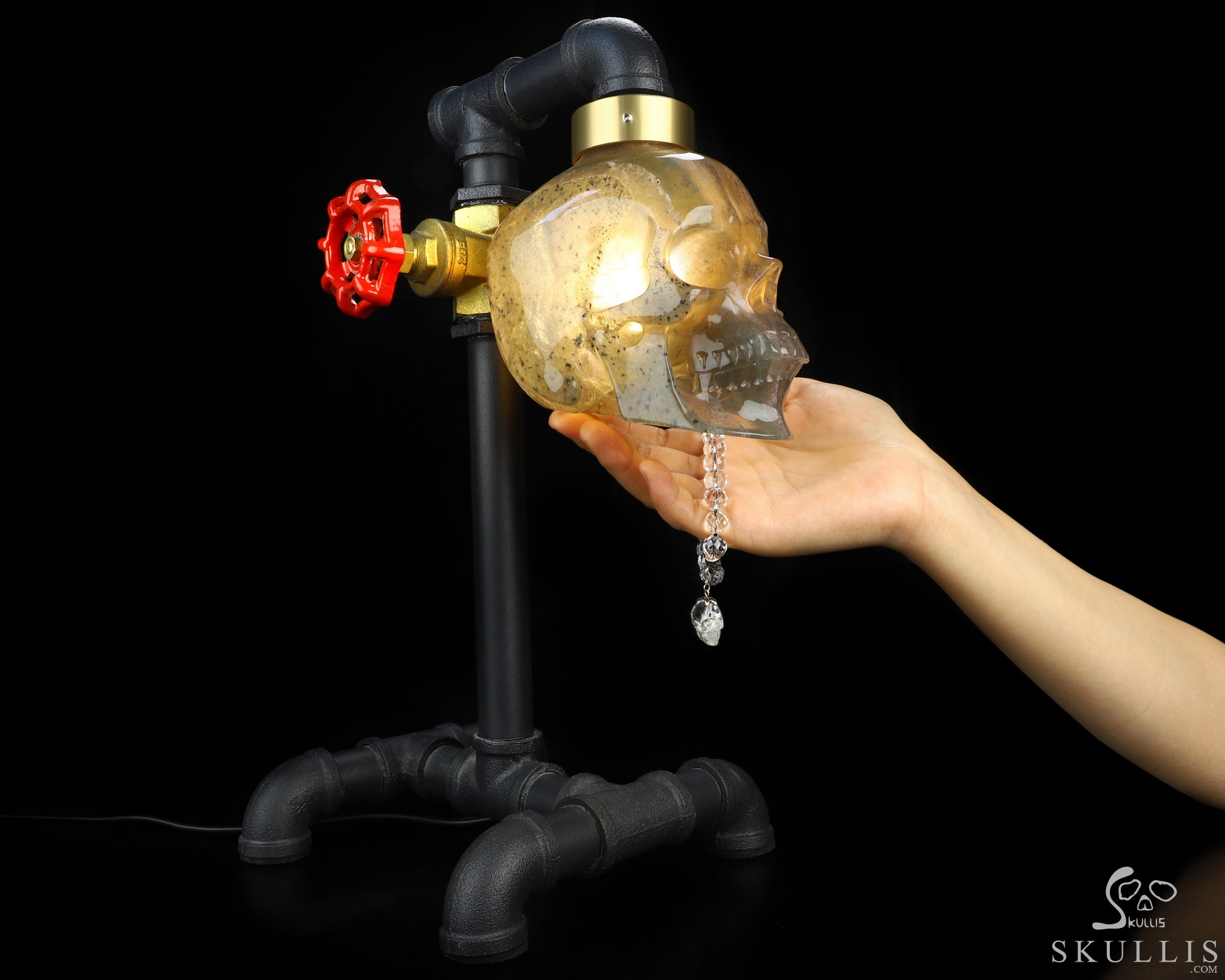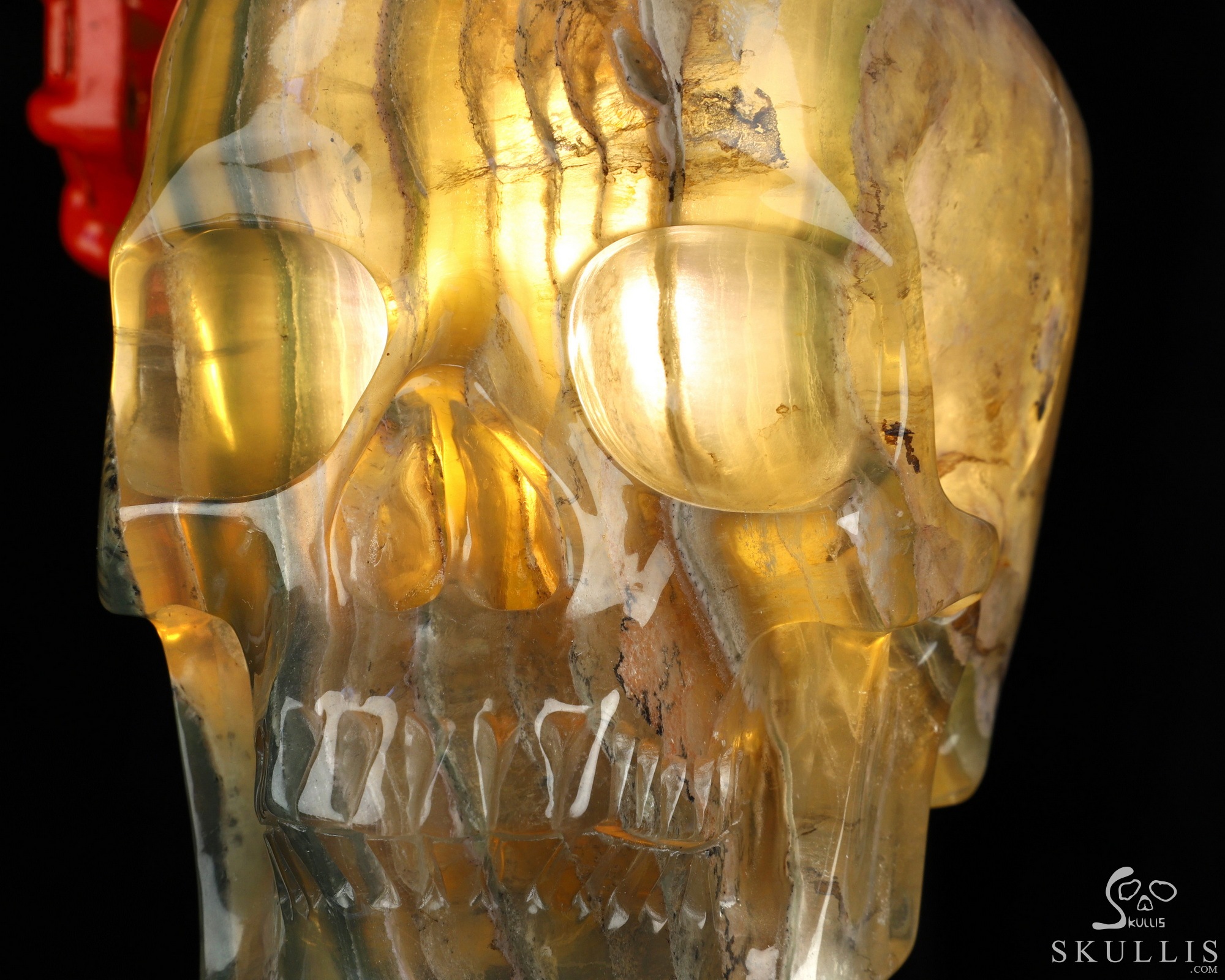 Skull's Scaly Sentinel -10.8" Fluorite Hand Carved Hollow Crystal Skull and Dragon Fine Art Sculpture Lamp/Light, Crystal Healing