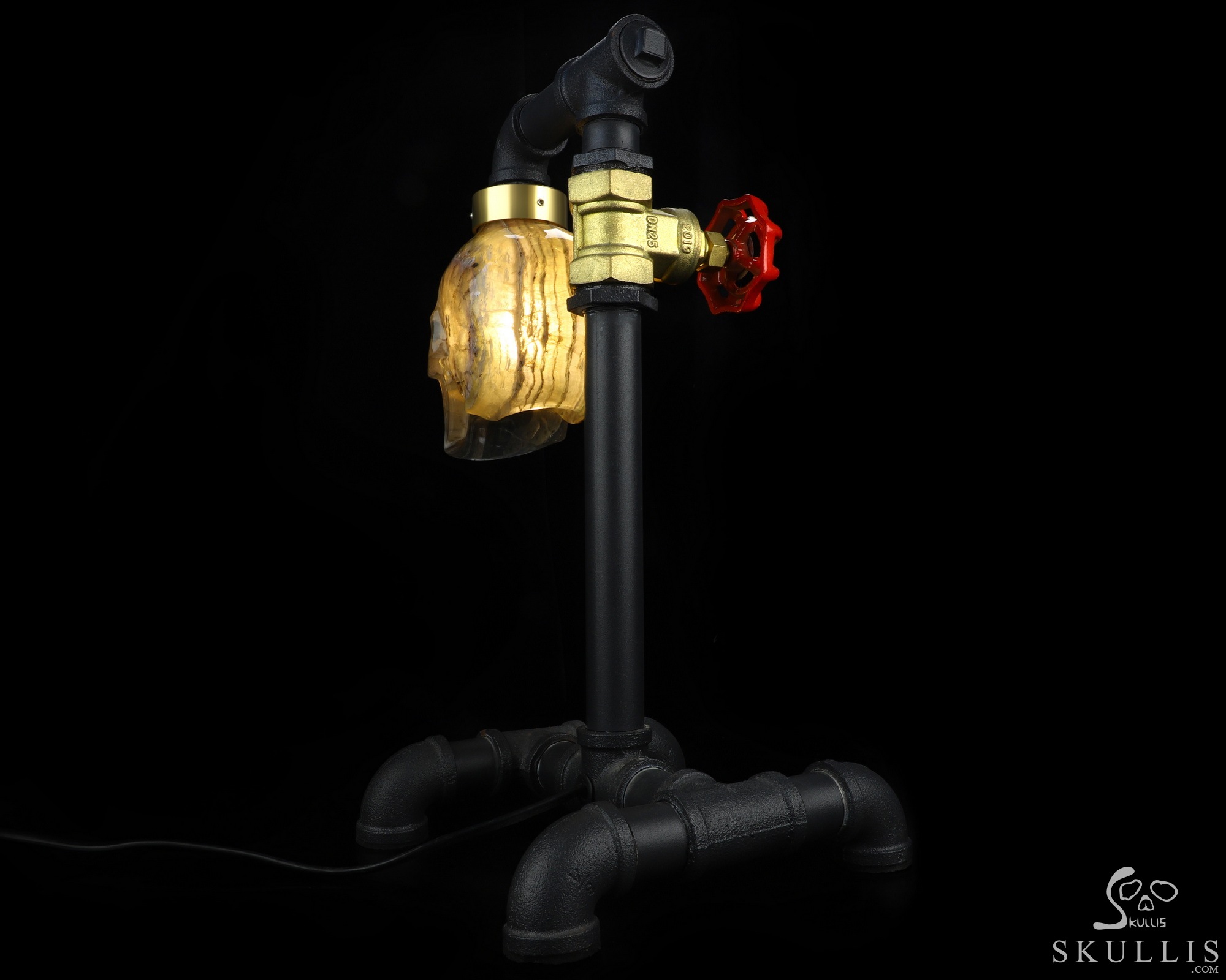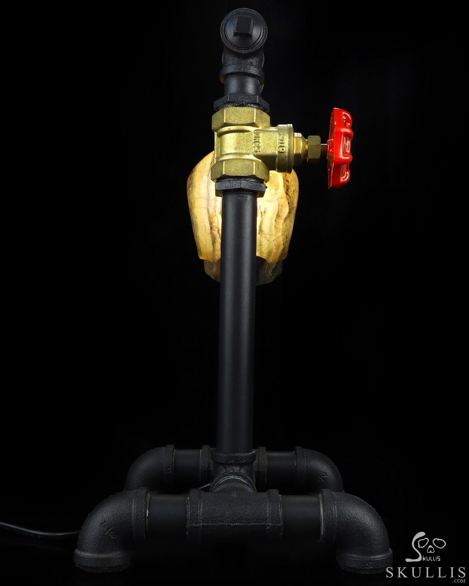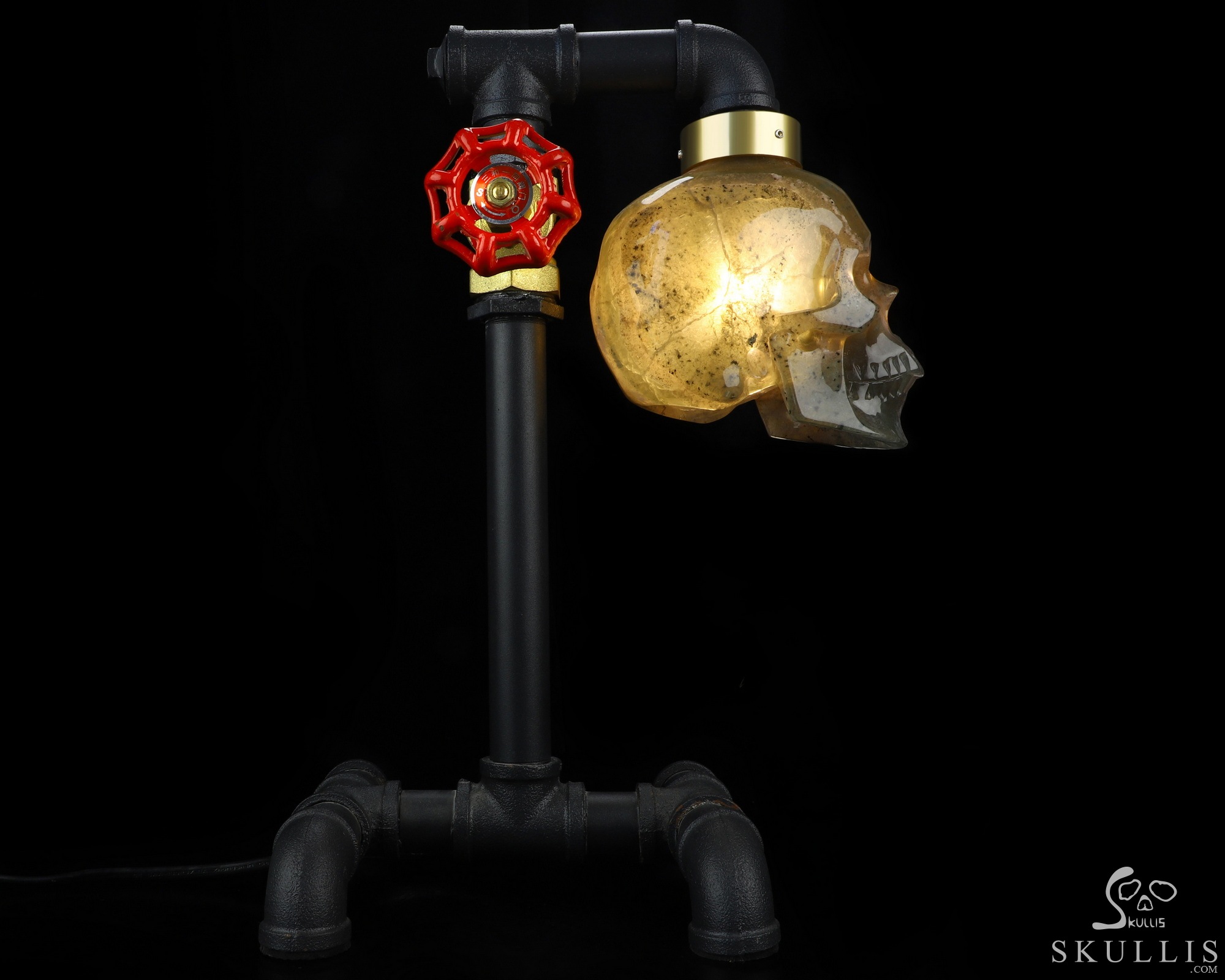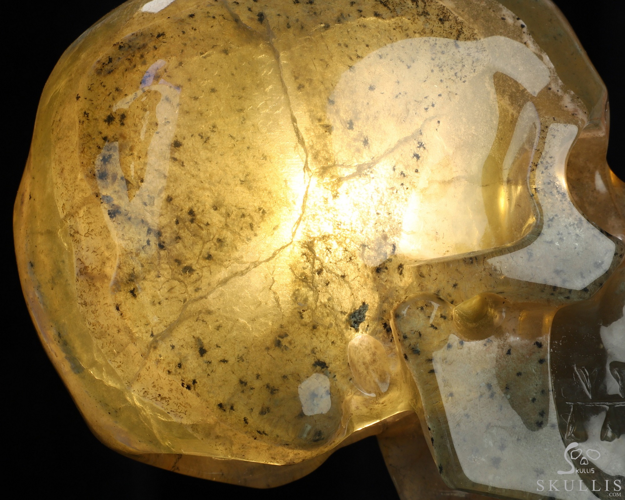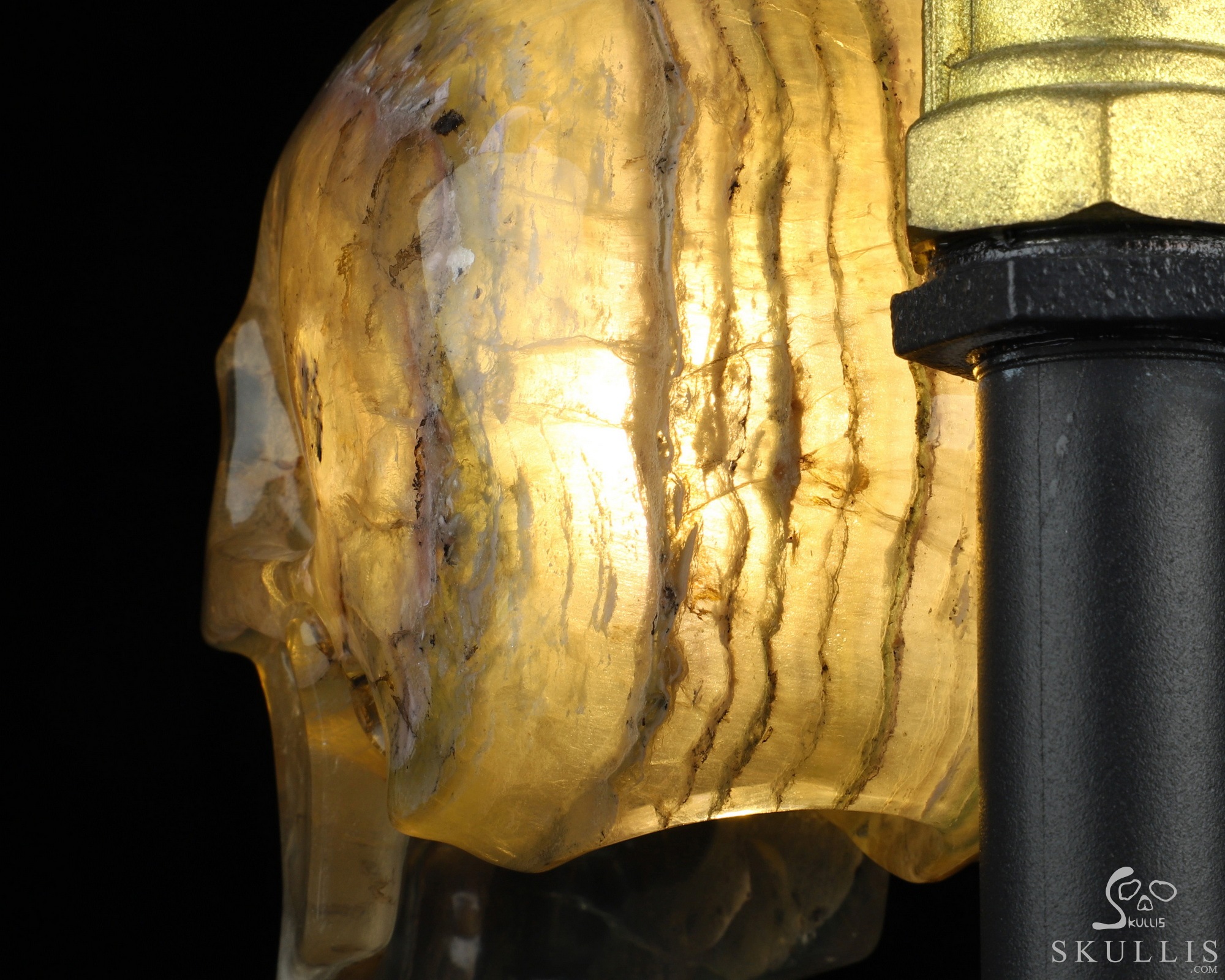 Skull's Scaly Sentinel -10.8" Fluorite Hand Carved Hollow Crystal Skull and Dragon Fine Art Sculpture Lamp/Light, Crystal Healing