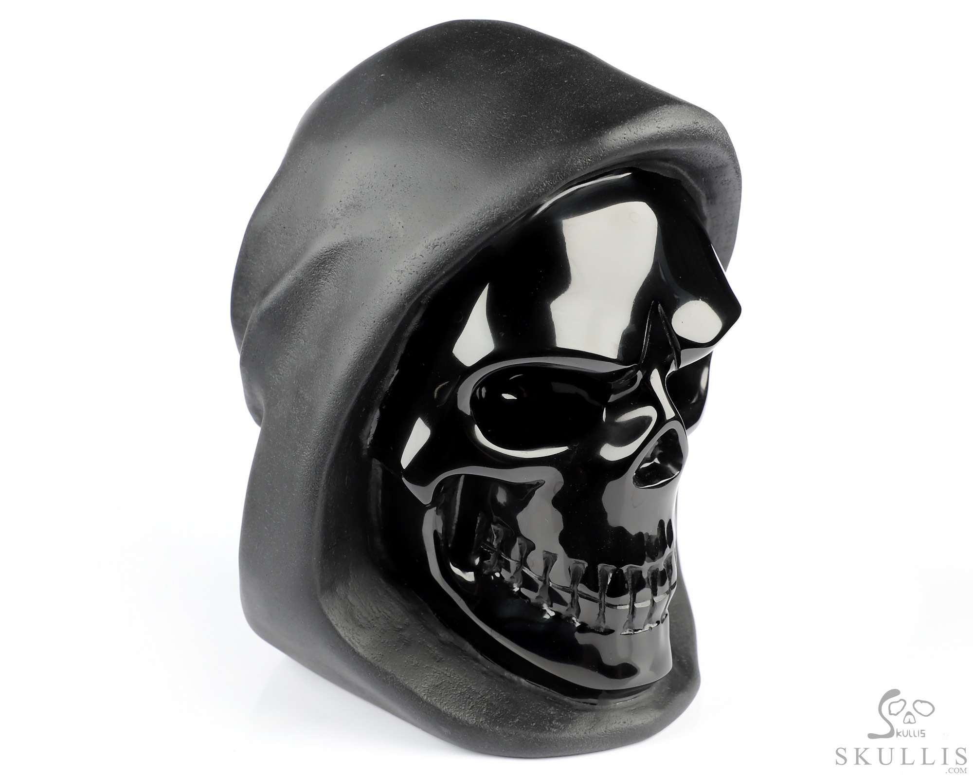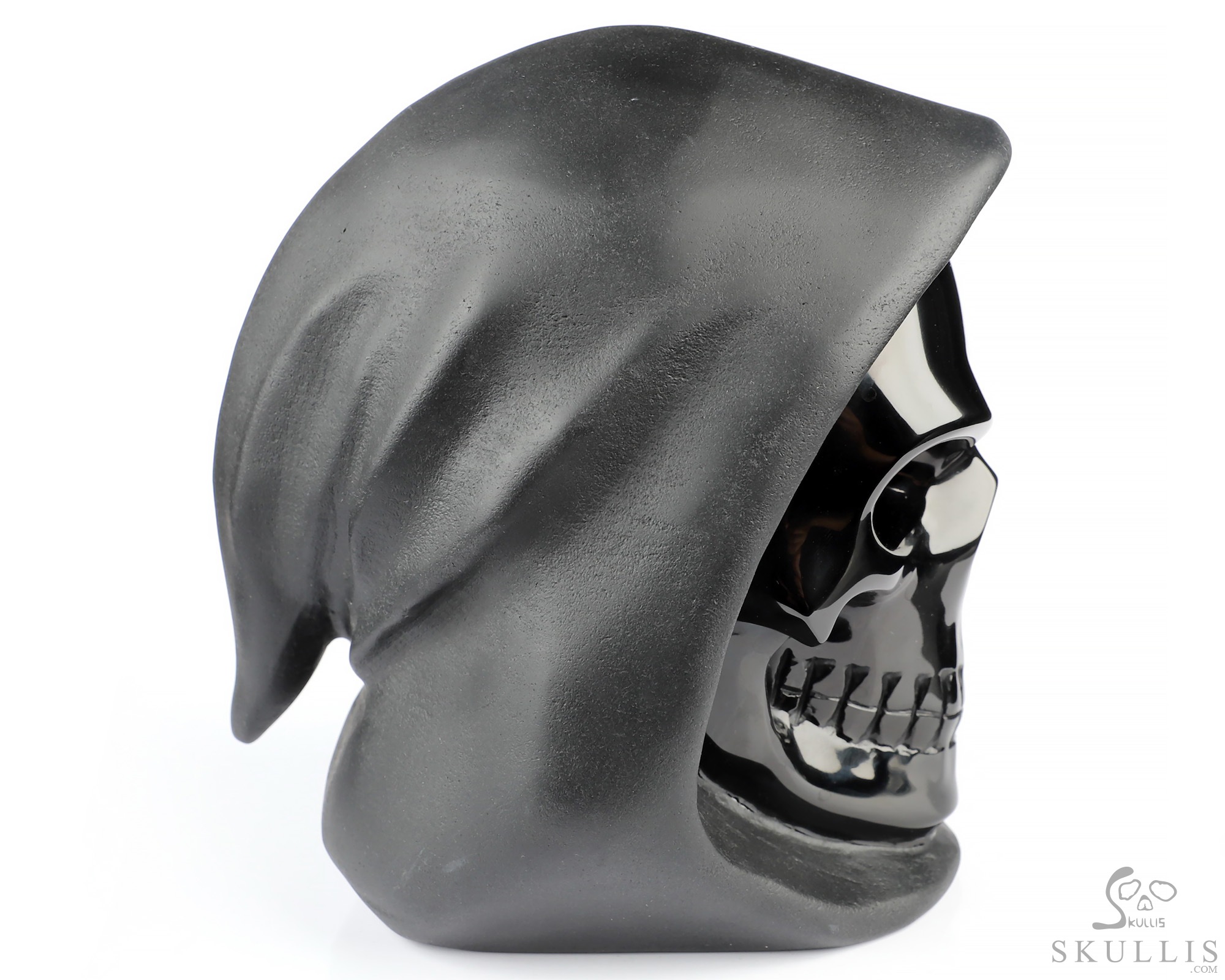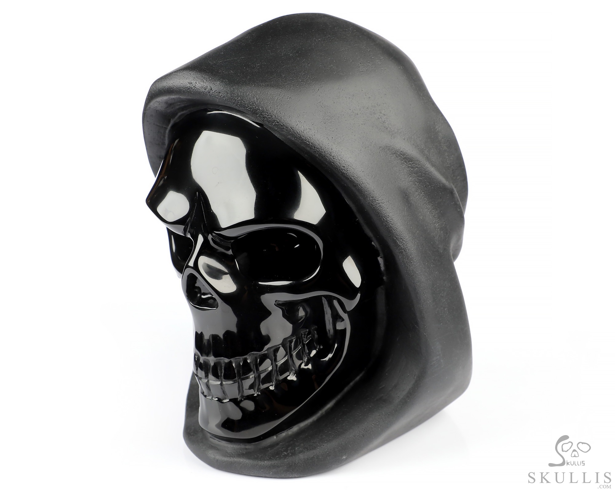 5.3" Frosted Black Obsidian Hand Carved Death Crystal Skull Sculpture, Crystal Healing