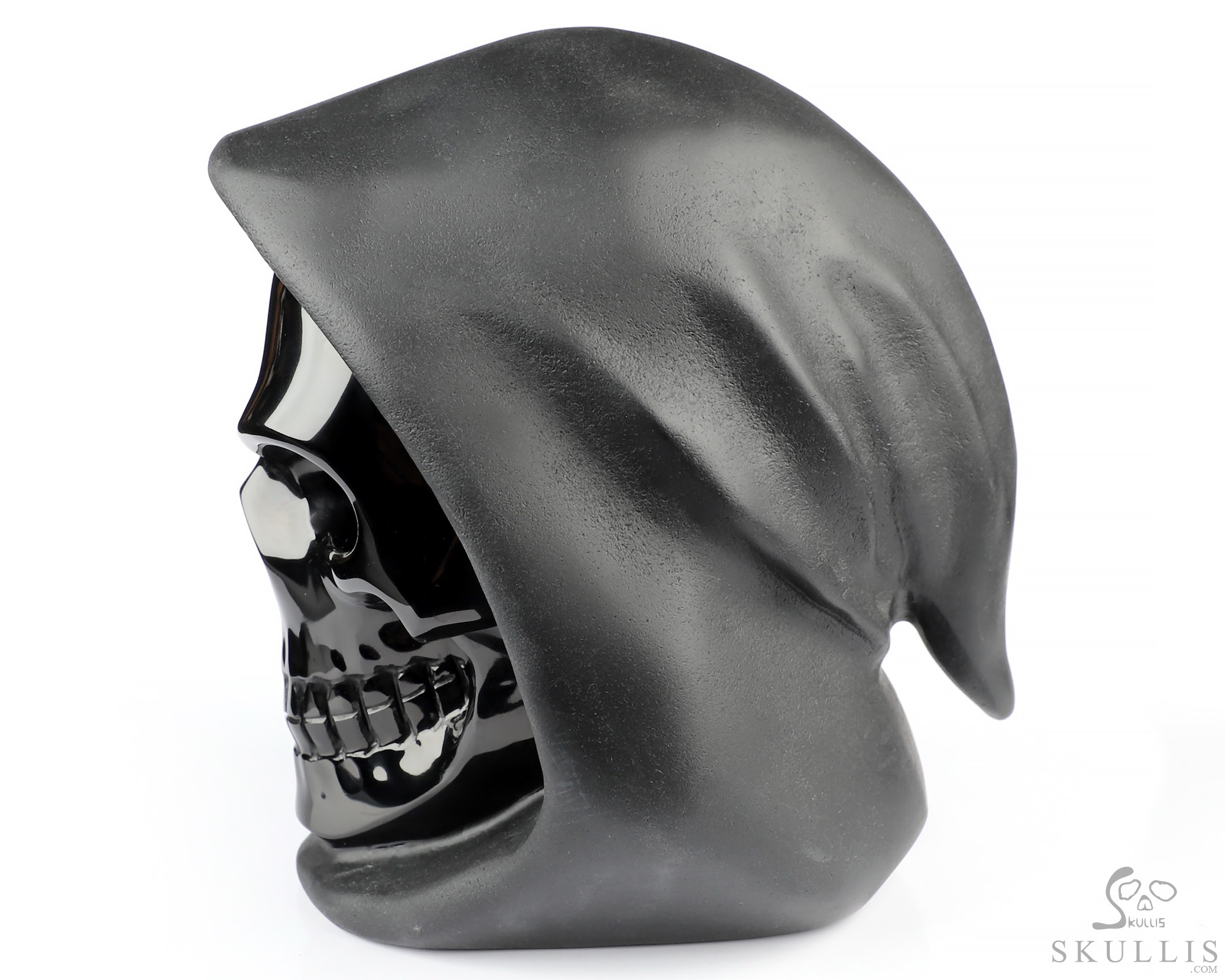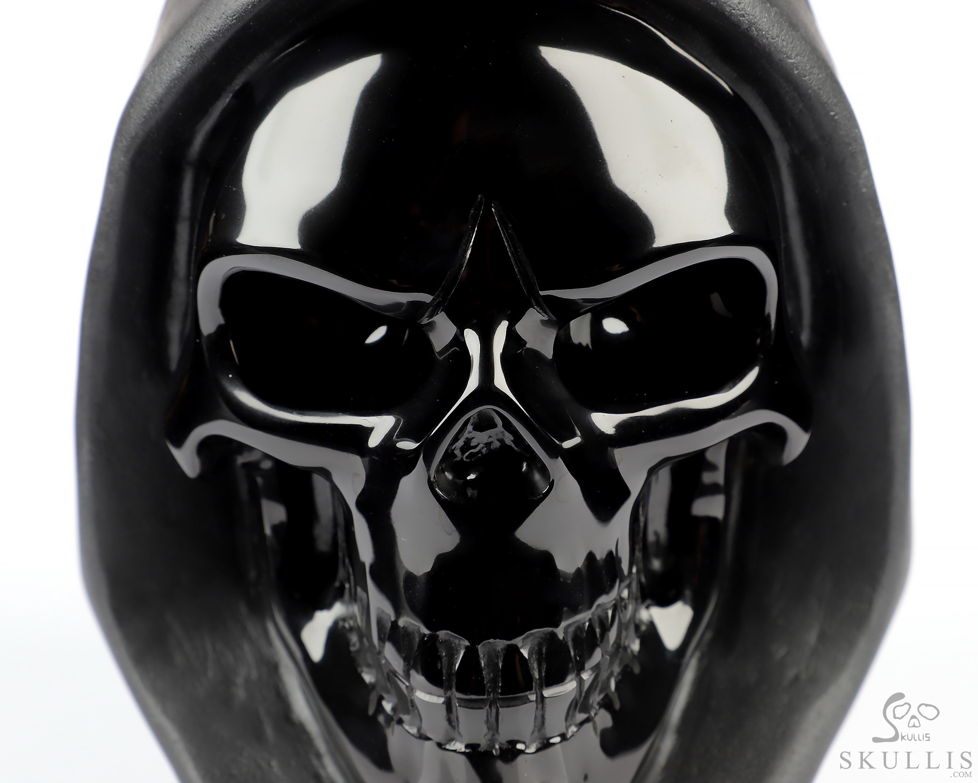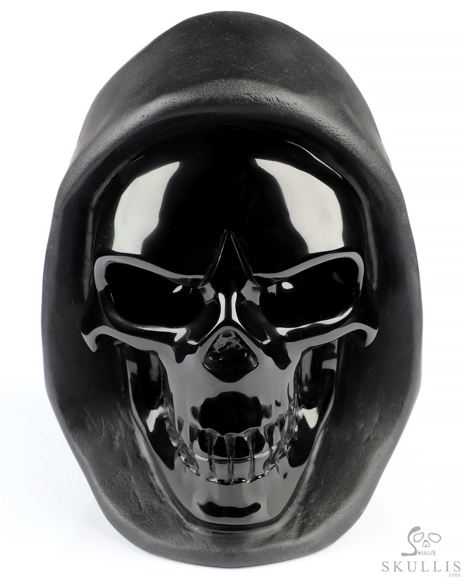 5.3" Frosted Black Obsidian Hand Carved Death Crystal Skull Sculpture, Crystal Healing
