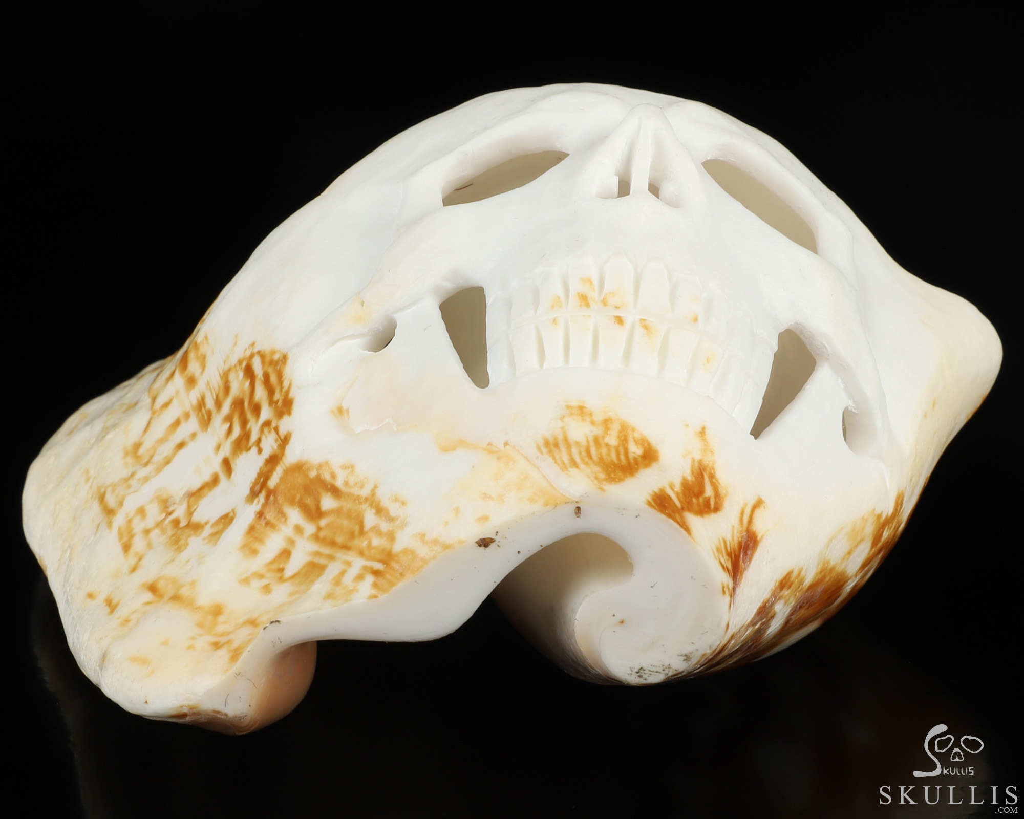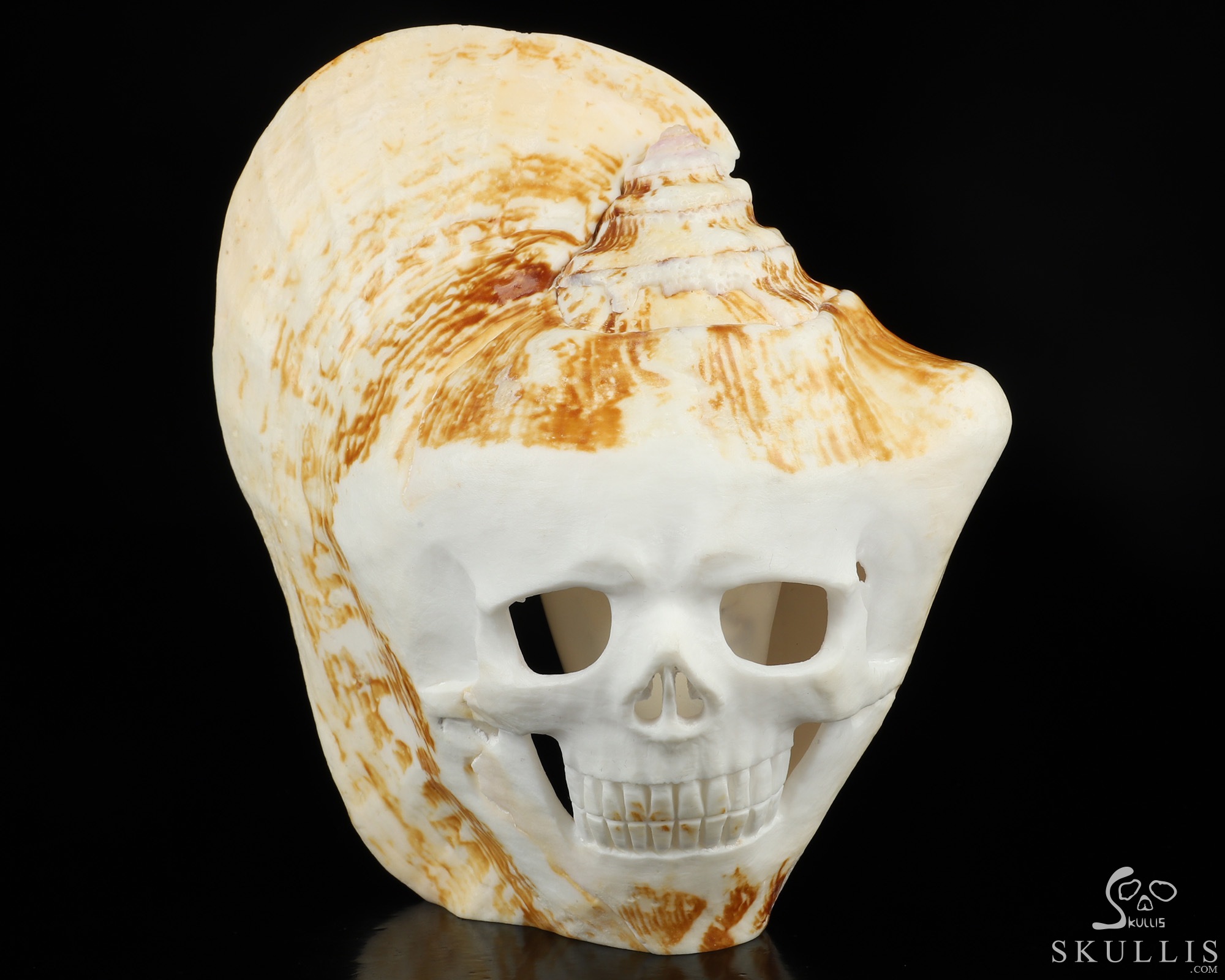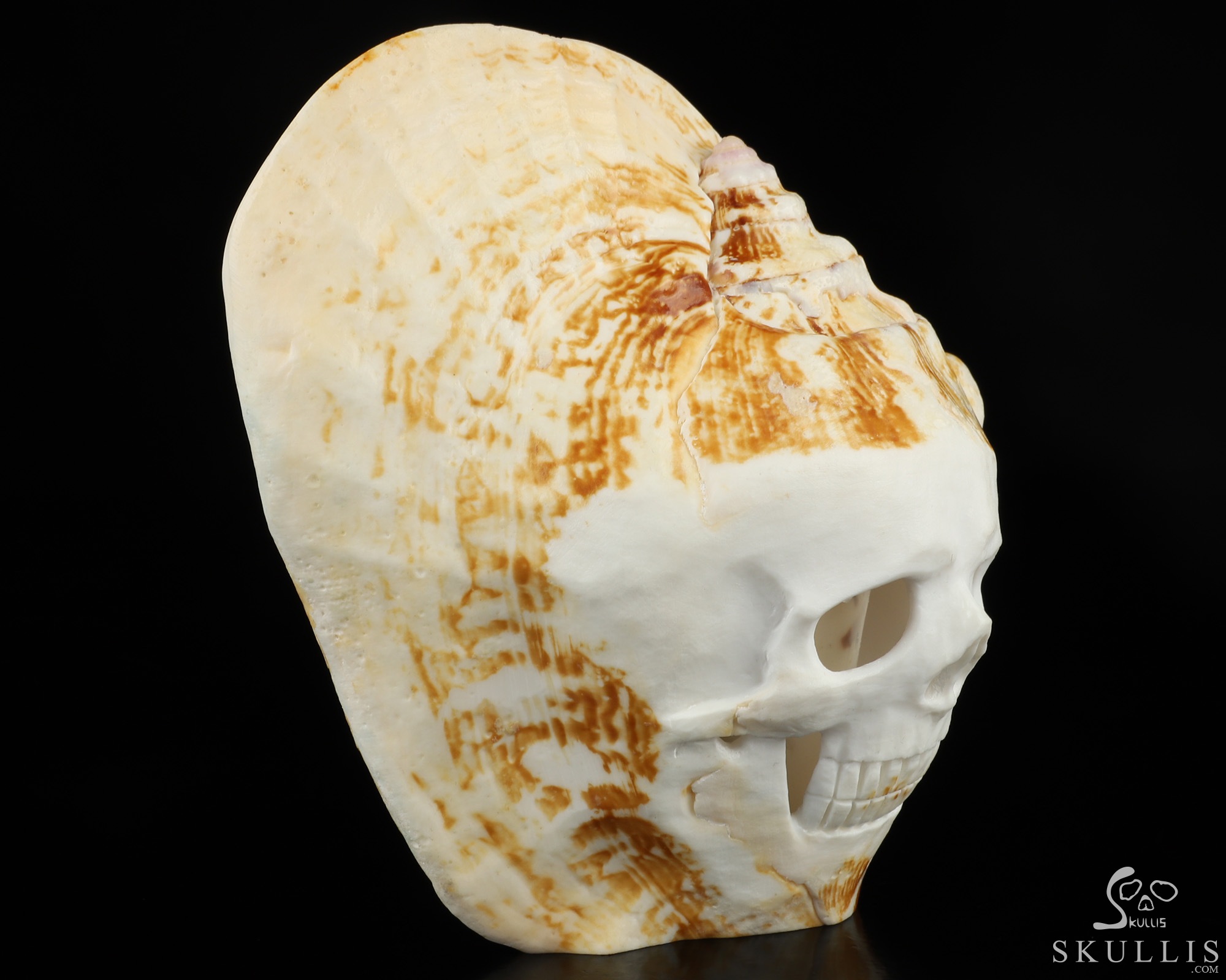 5.7" Shell Hand Carved Crystal Skull Fine Art Sculpture, Crystal Healing