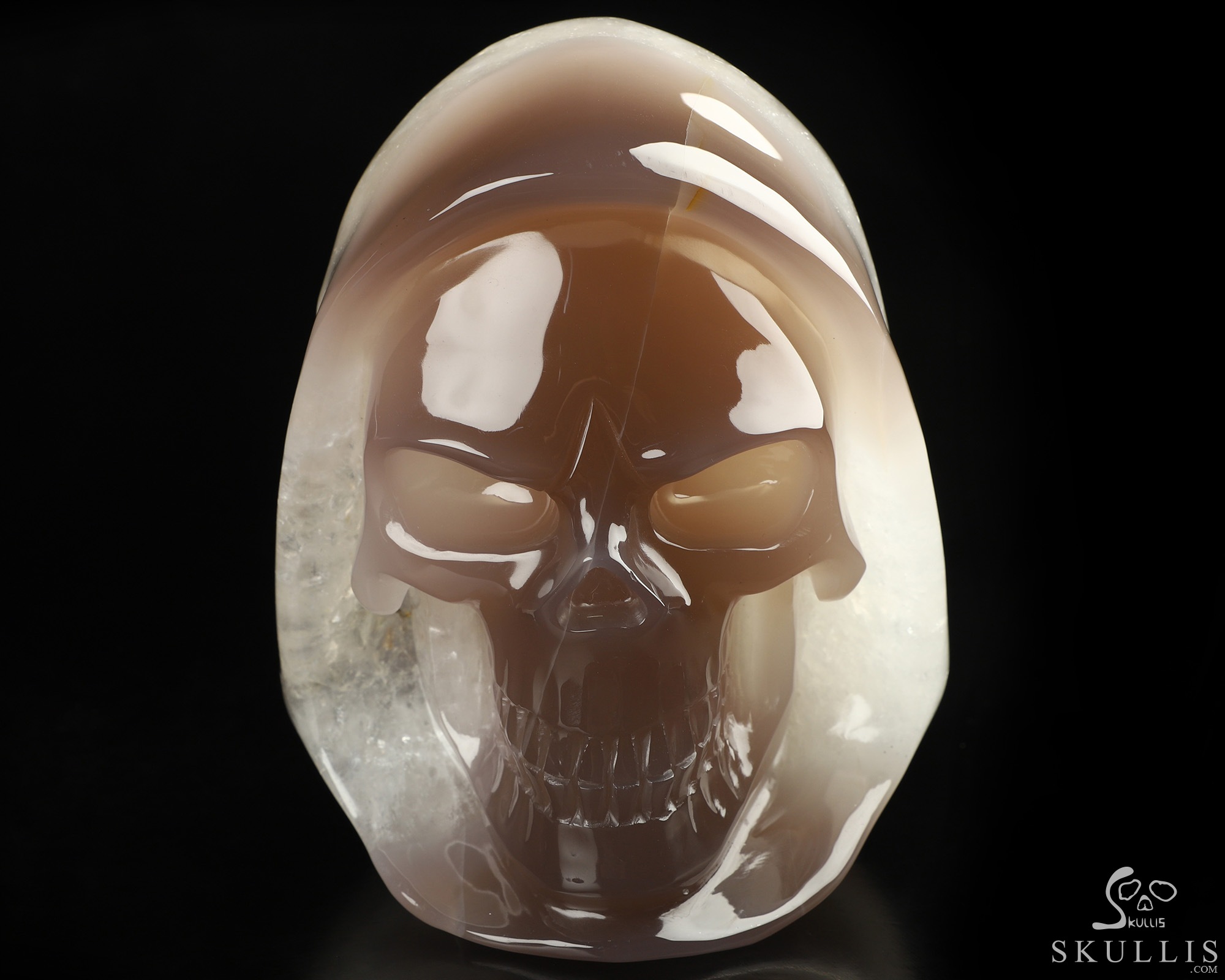 5.4" Premium Brazilian Agate Geode Hand Carved Death Crystal Skull Sculpture, Crystal Healing