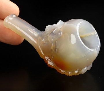 5.4" Premium Brazilian Agate Carved Crystal Skull Spoon Sculpture, Realistic