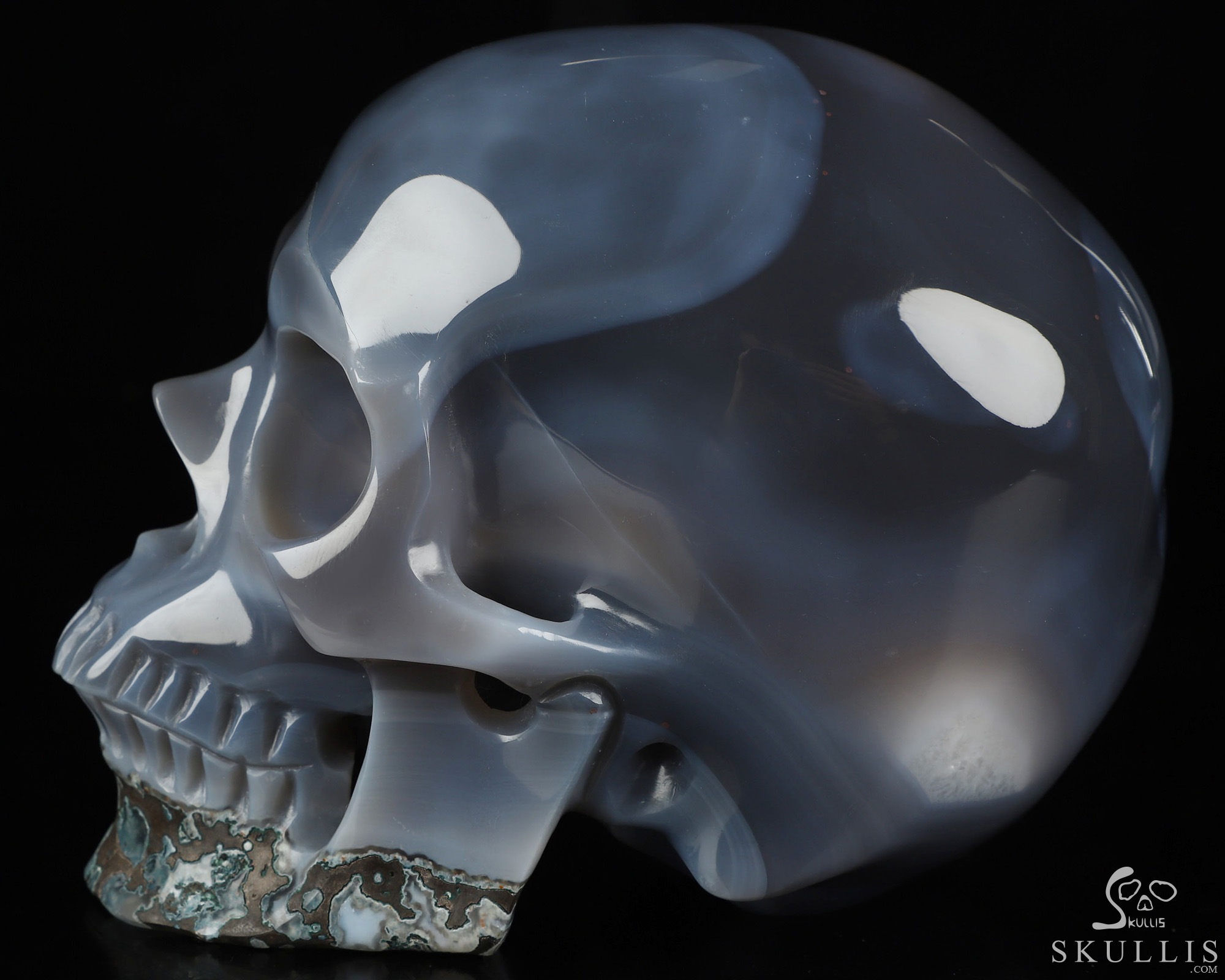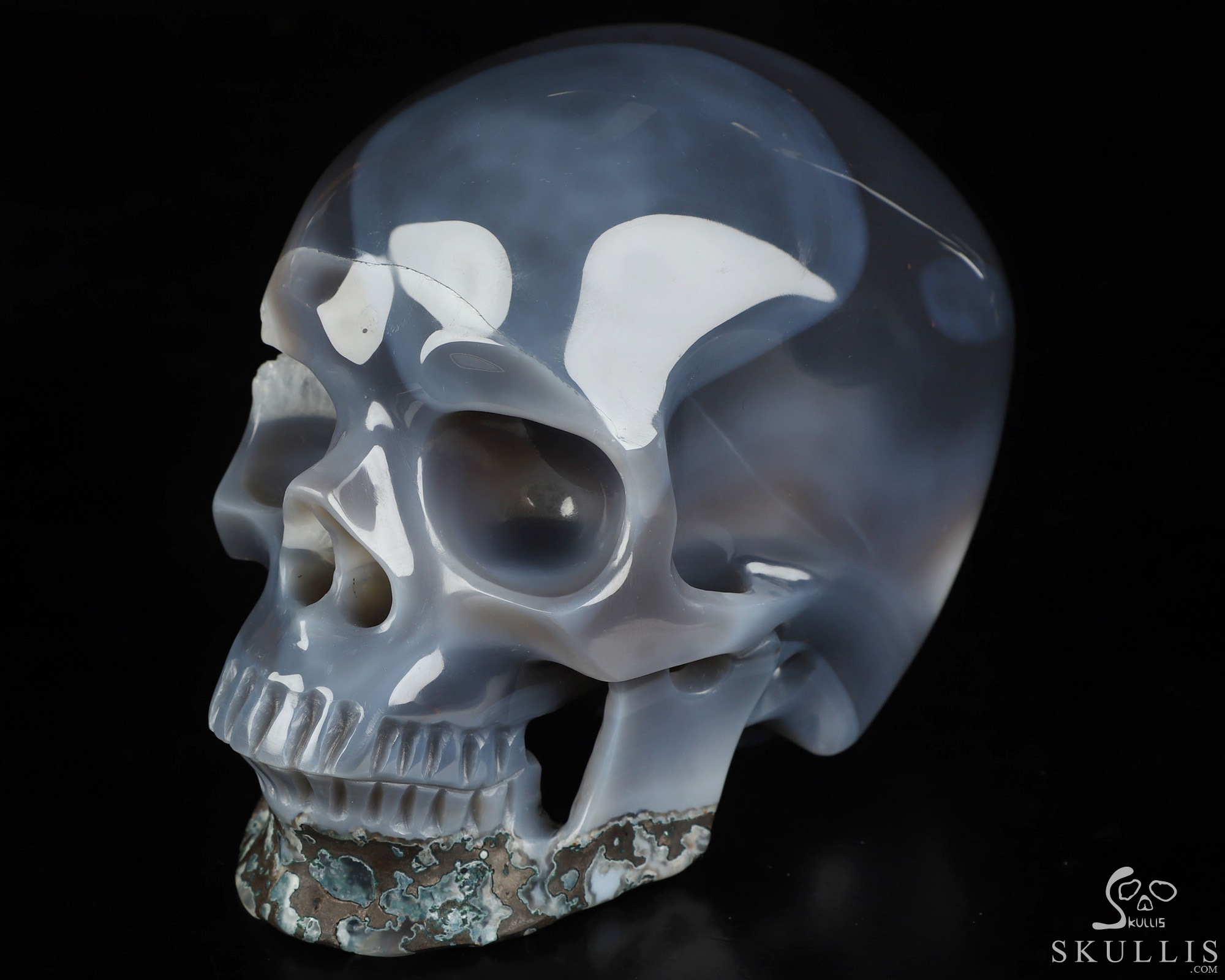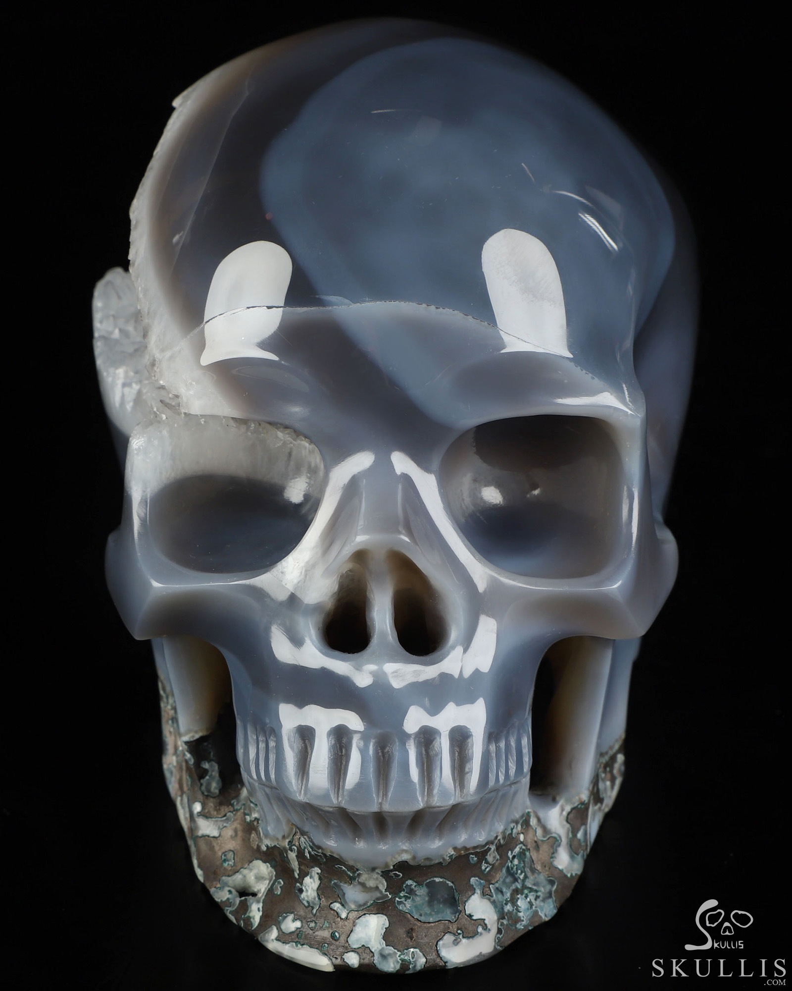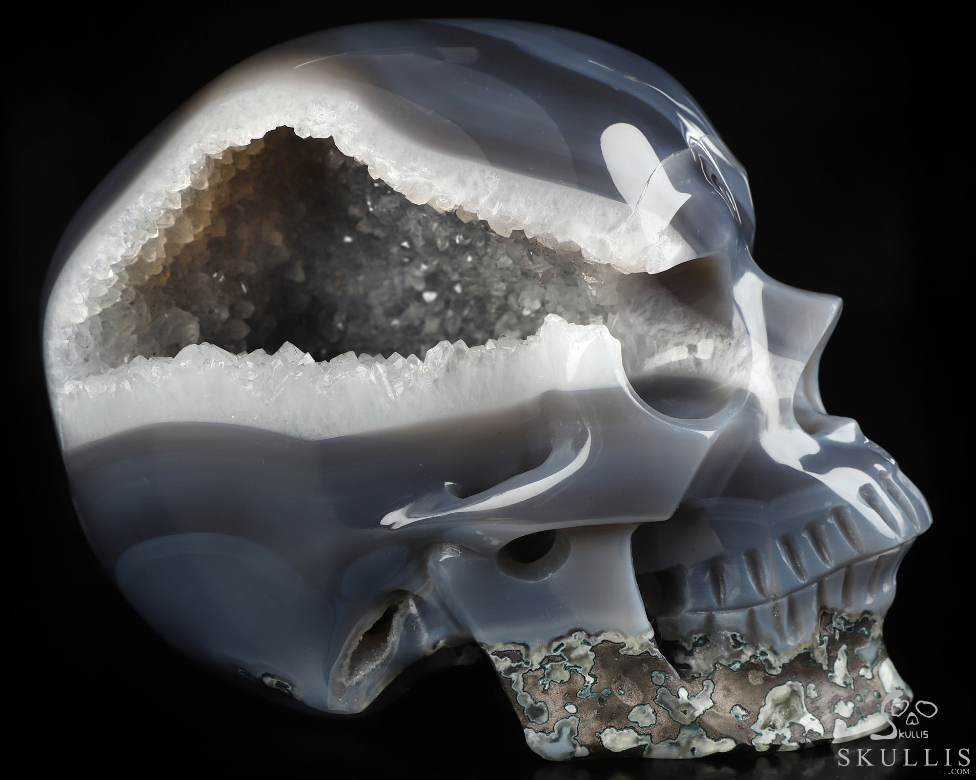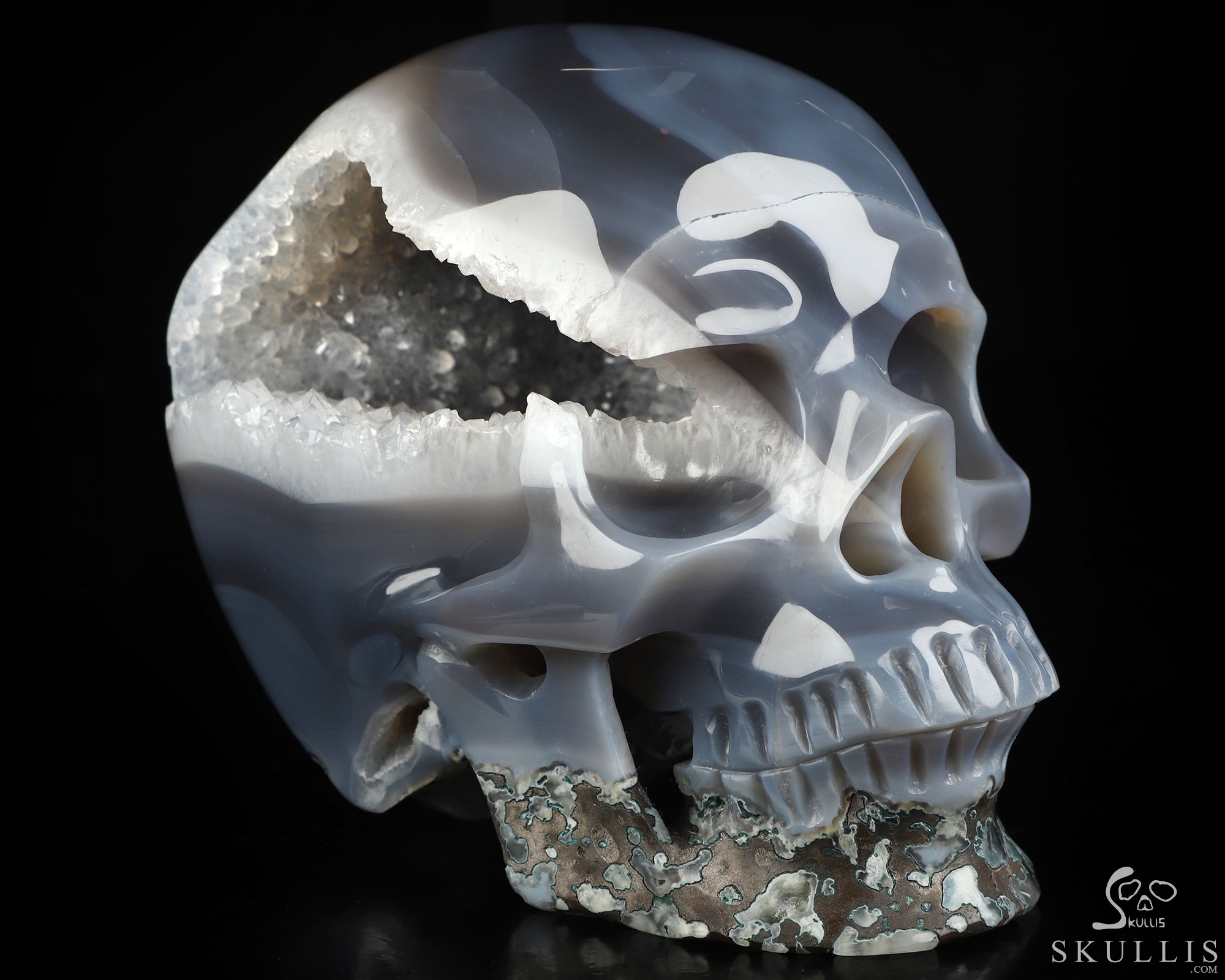 5.9" Agate Geode Hand Carved Crystal Skull, Super Realistic, Crystal Healing