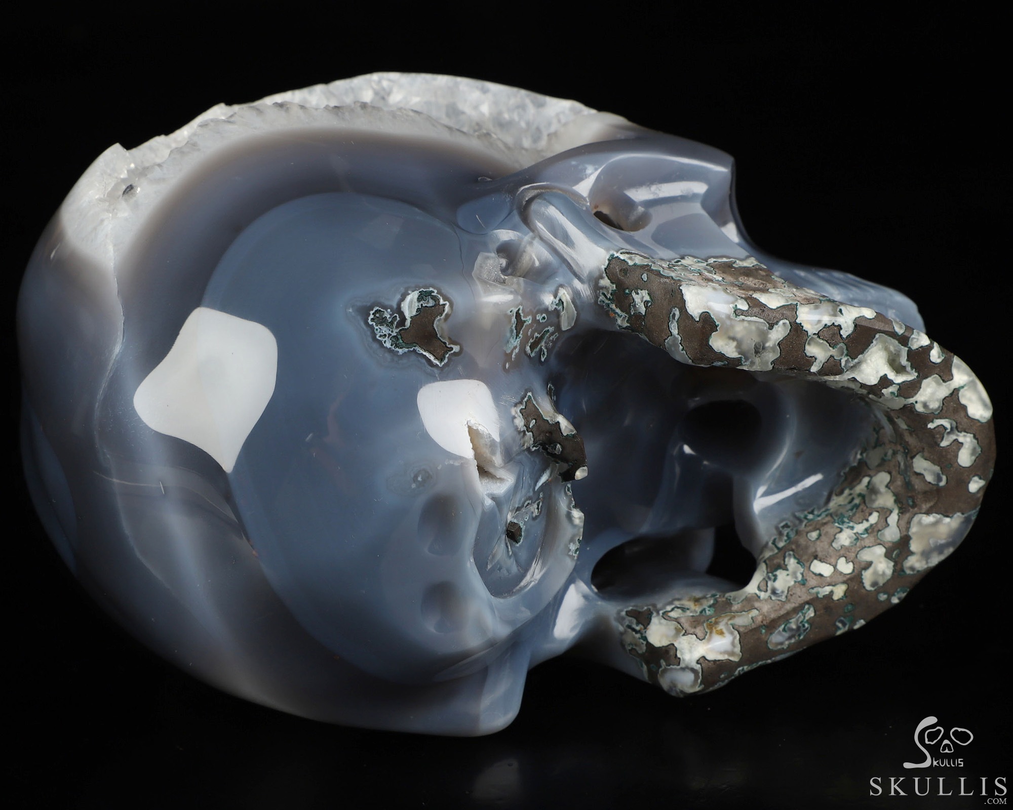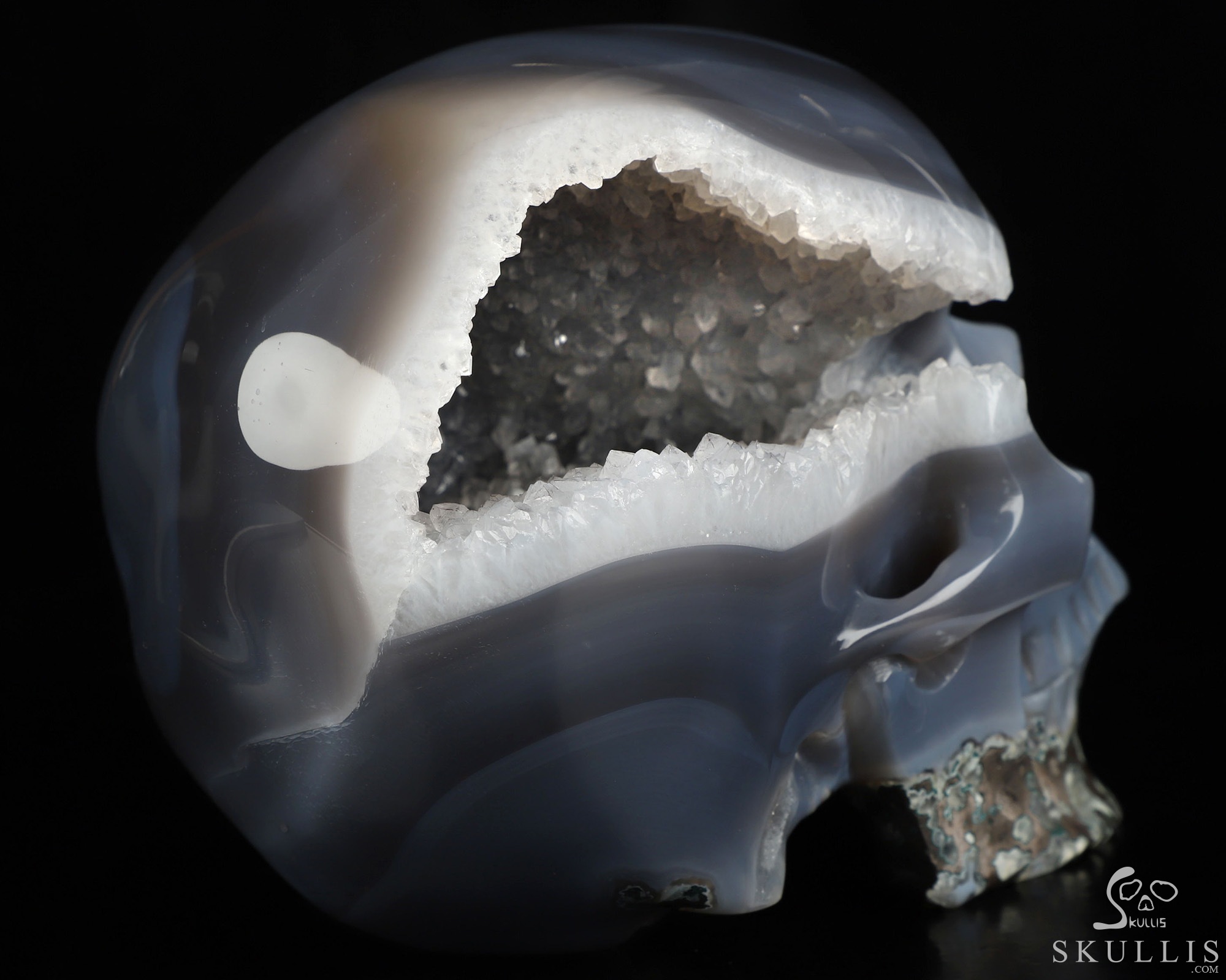 3.9" Agate Geode Hand Carved Crystal Skull, Realistic, Crystal Healing