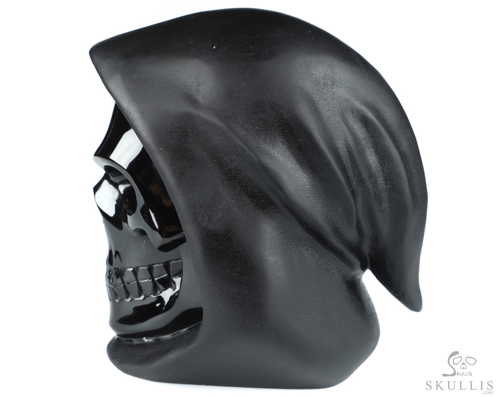 5.5" Black Obsidian Carved Crystal Death Skull Sculpture, Realistic