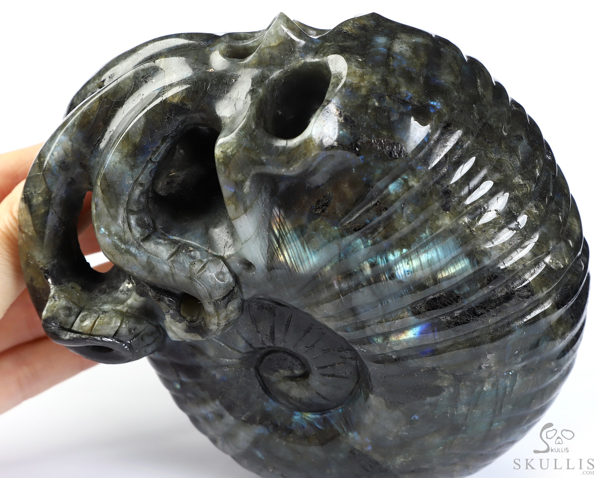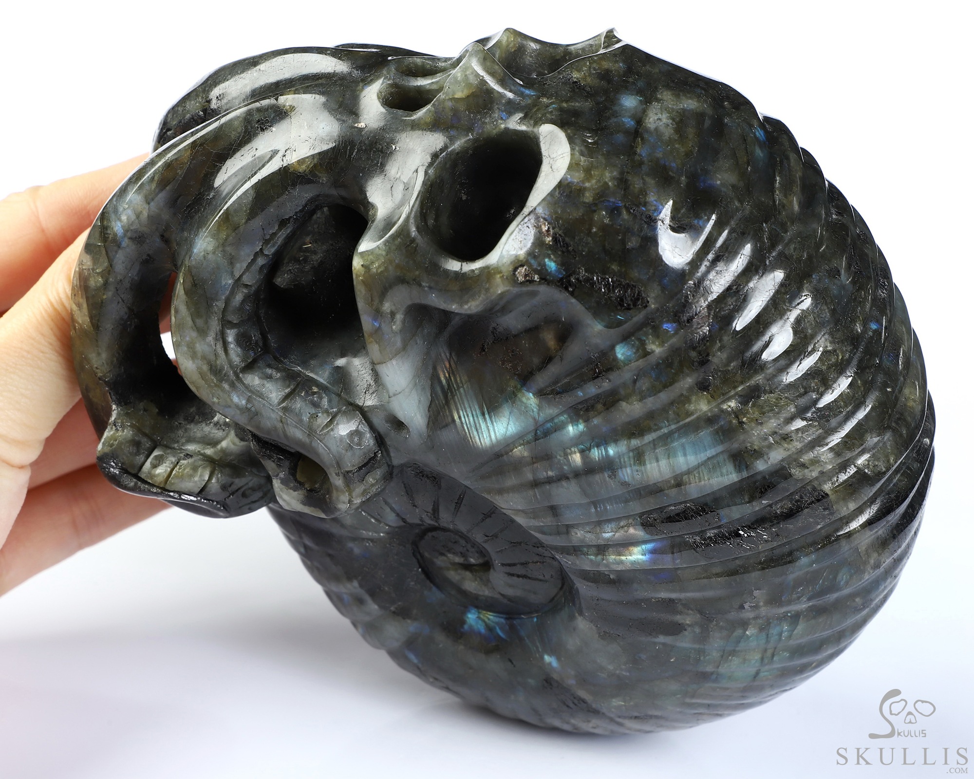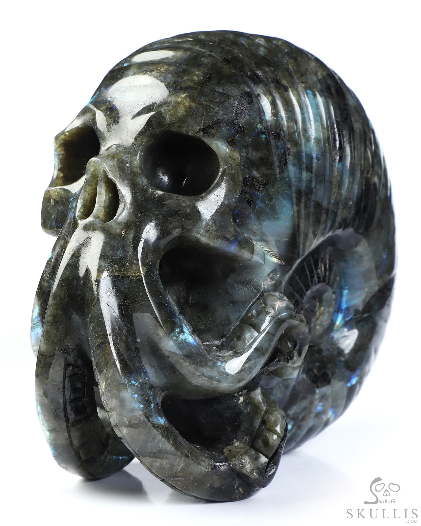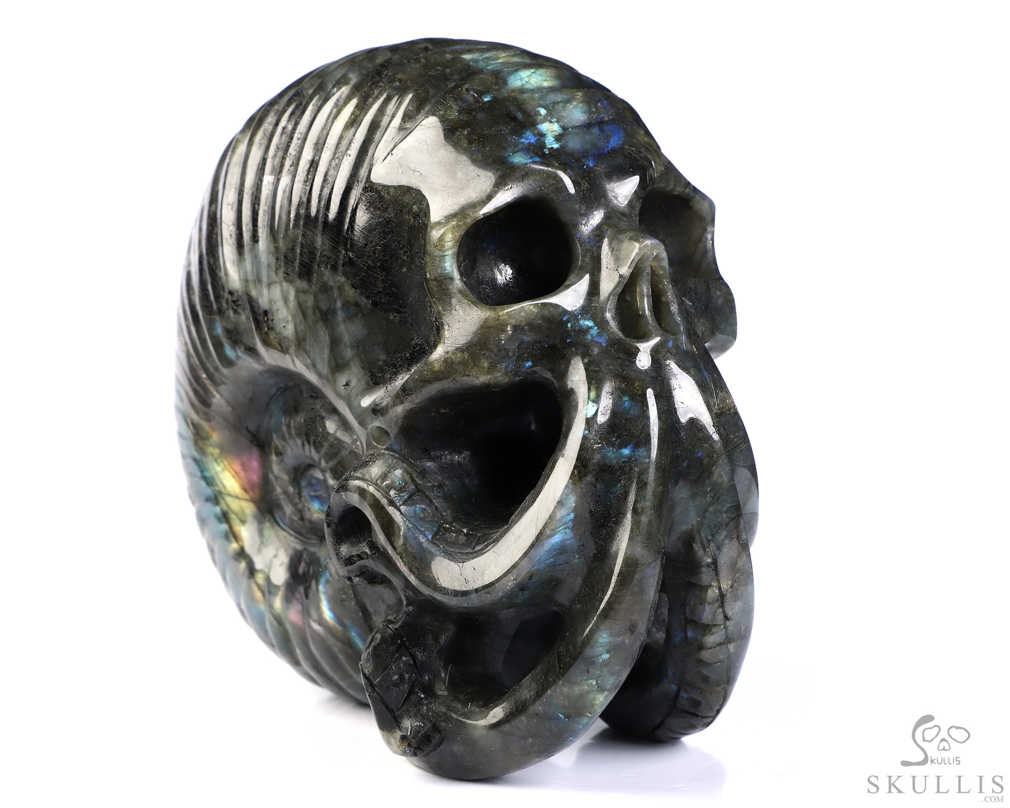5.6" Labradorite Hand Carved Nautiloid Cthulhu Crystal Skull Sculpture, Crystal Healing
