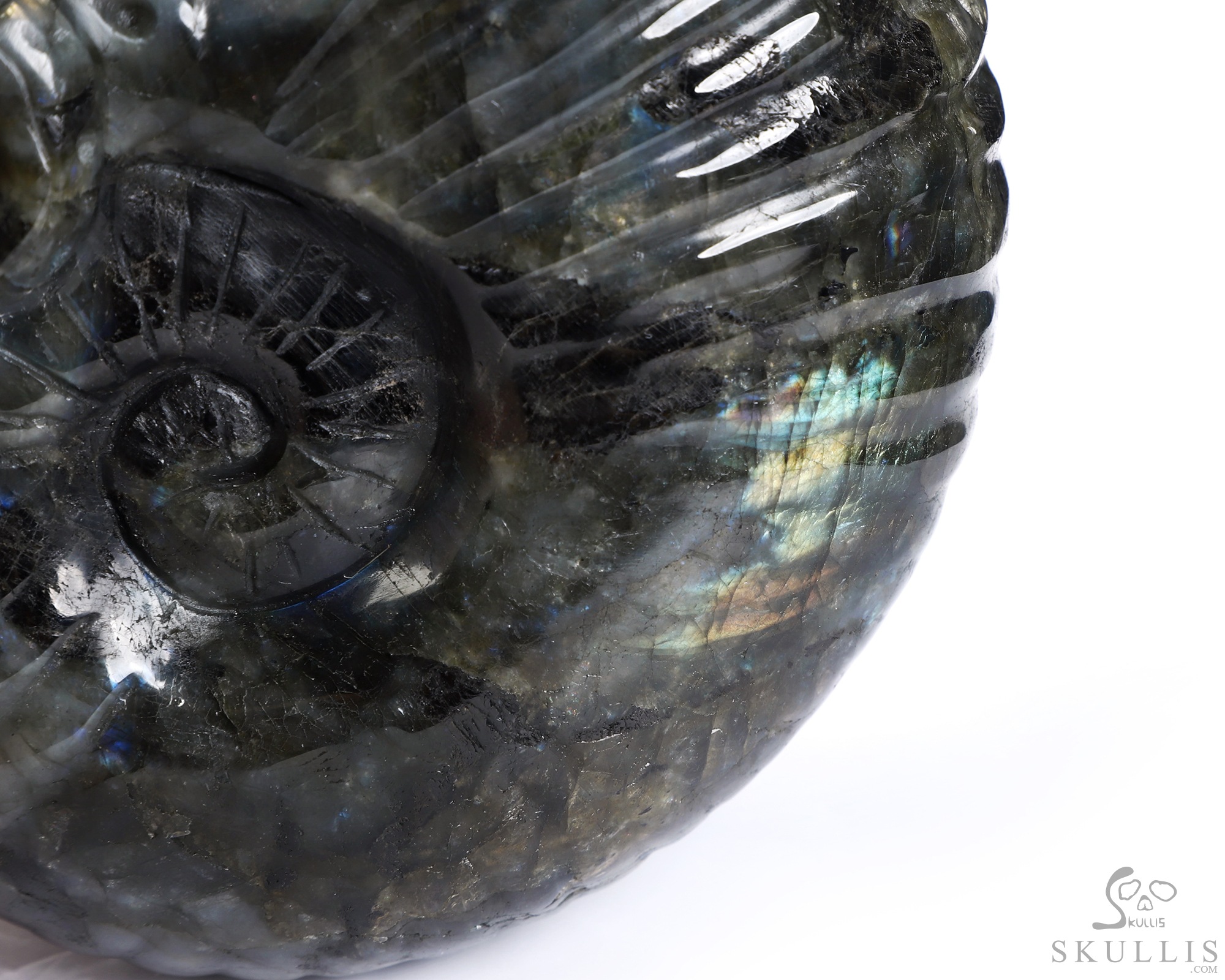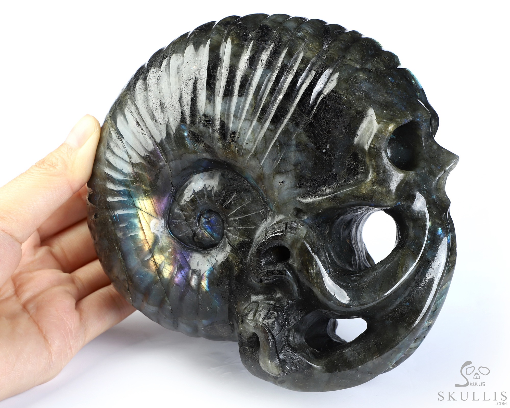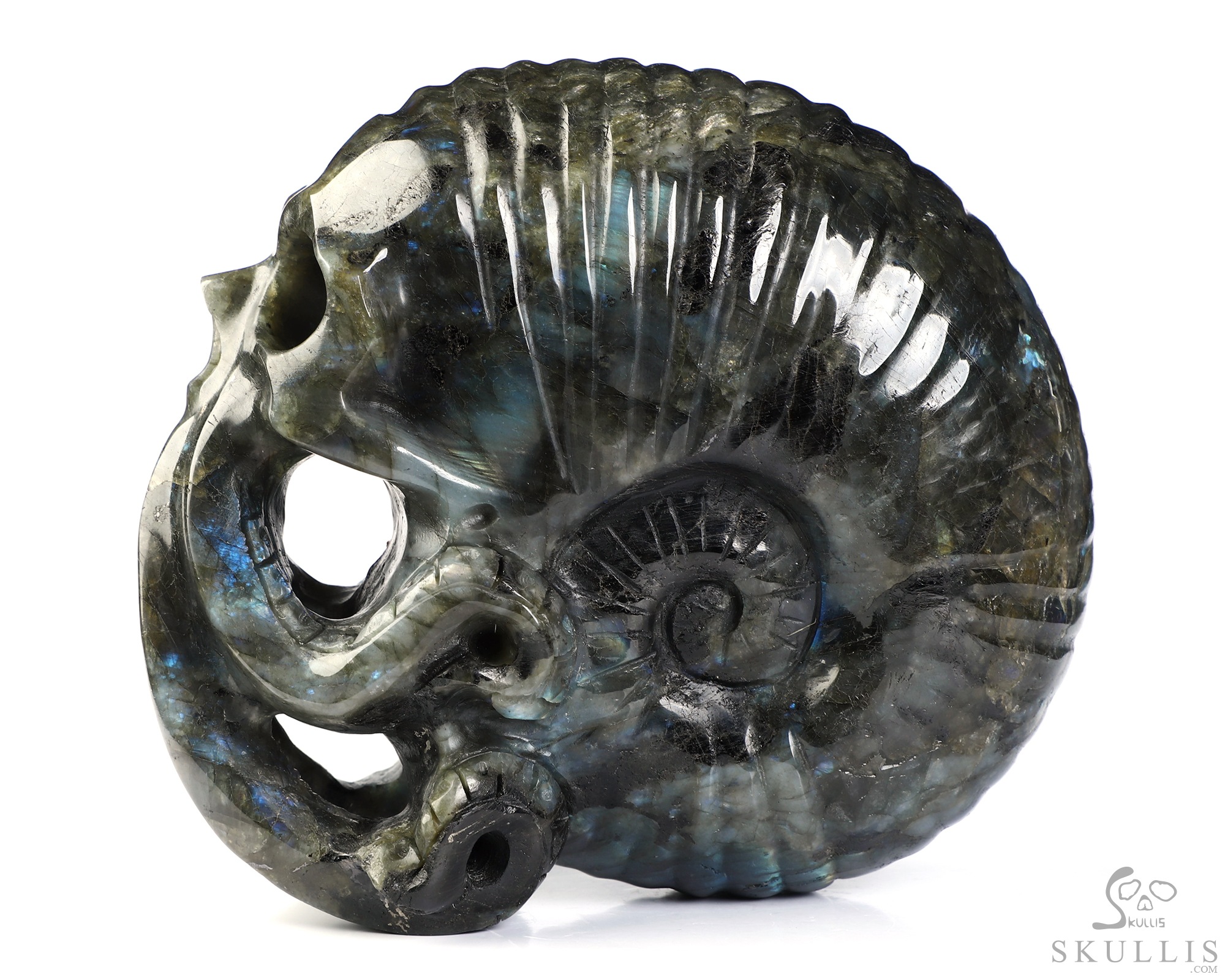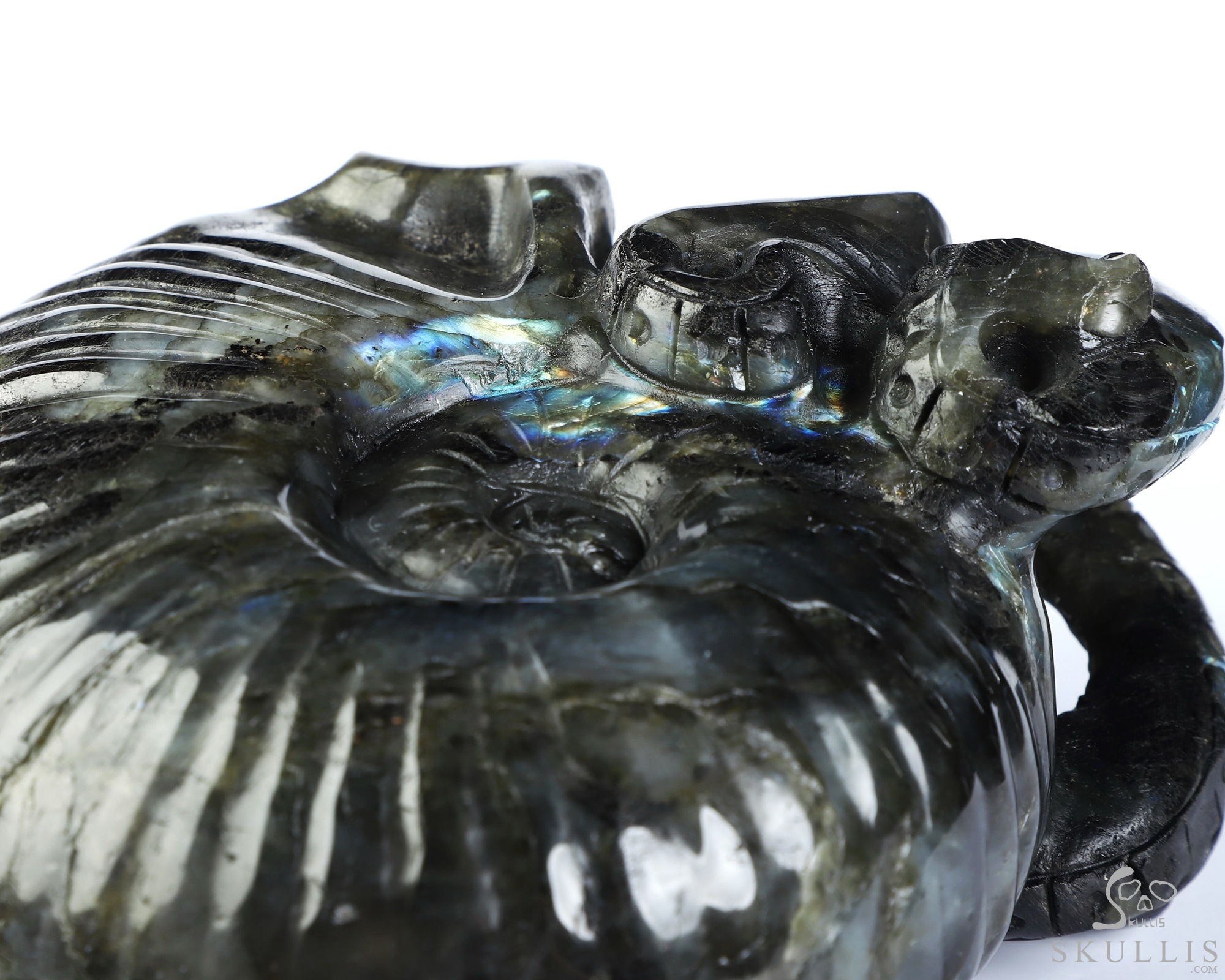 5.6" Labradorite Hand Carved Nautiloid Cthulhu Crystal Skull Sculpture, Crystal Healing