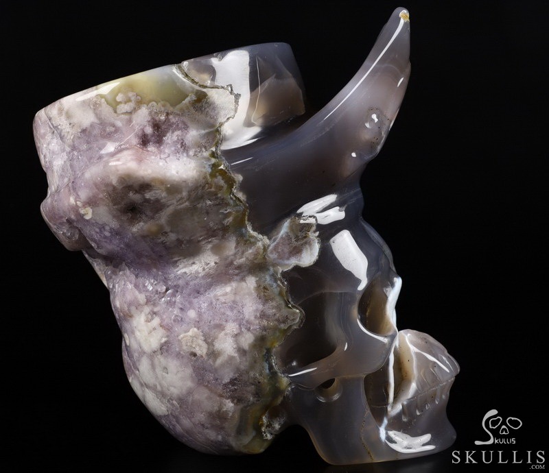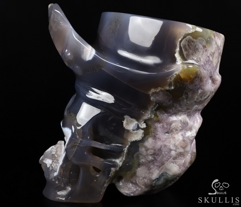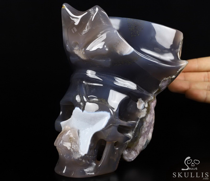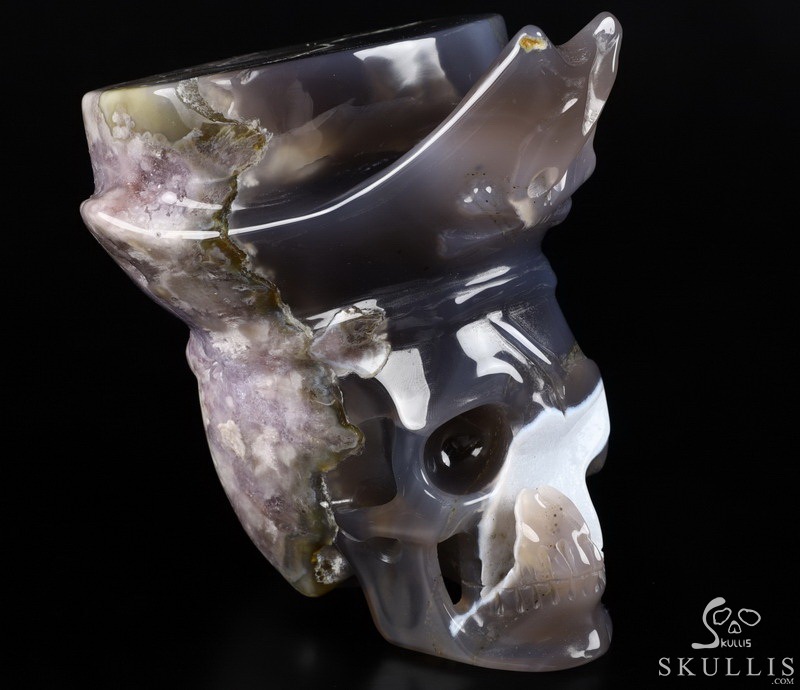 5.7" Agate Amethyst Geode Hand Carved Pirate Crystal Skull Sculpture, Crystal Healing