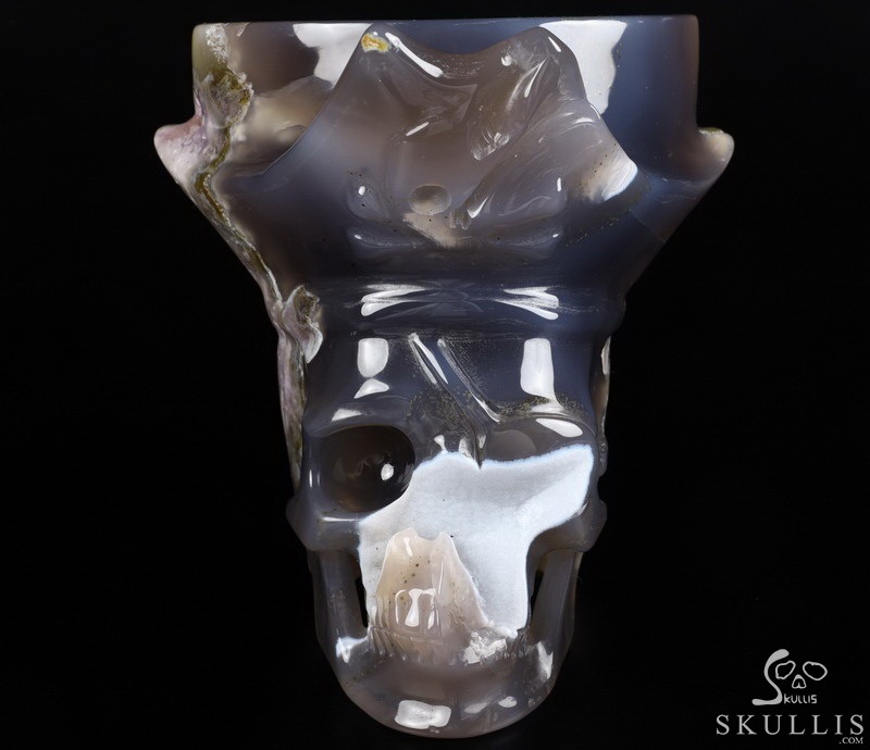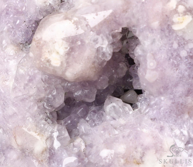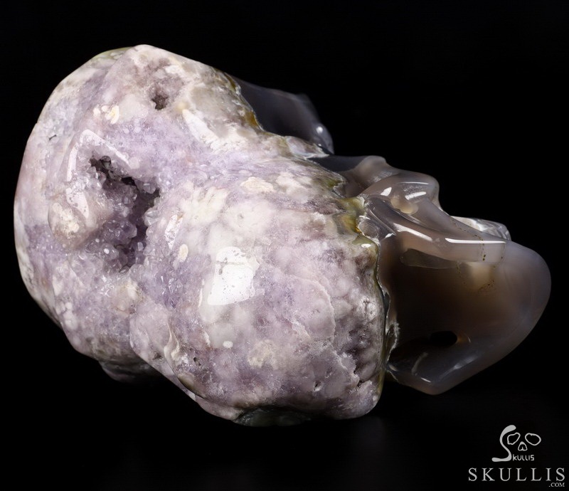 Lifesize 6.7" Agate Amethyst Geode Carved Crystal Skull, Realistic
