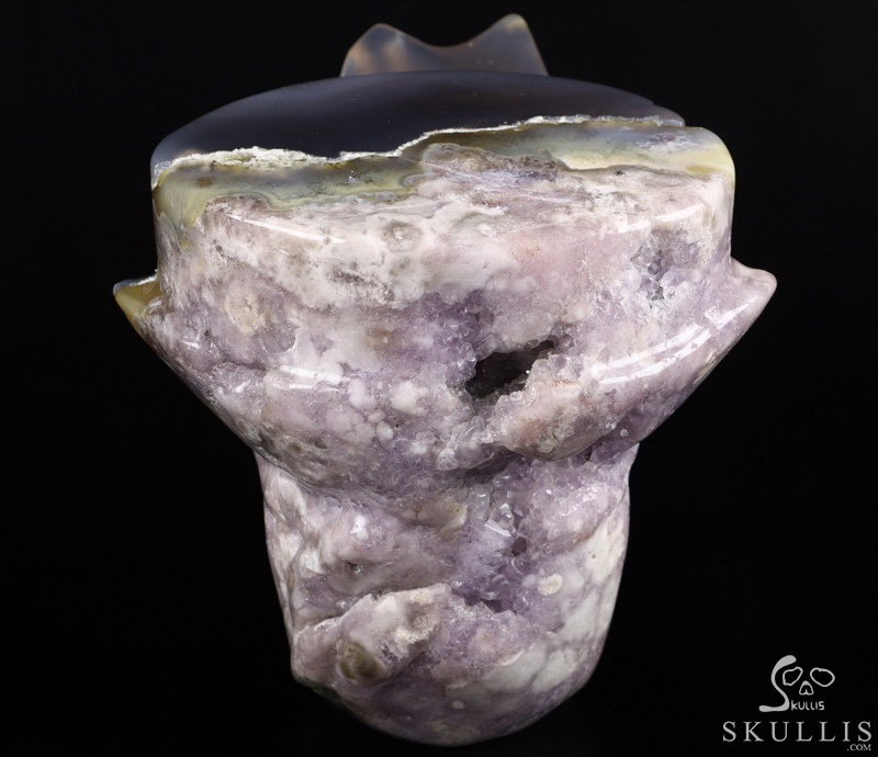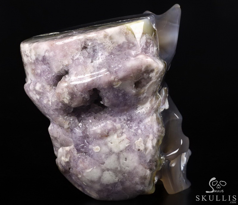 7.2" Agate Amethyst Geode Carved Crystal Skull, Crystal Healing