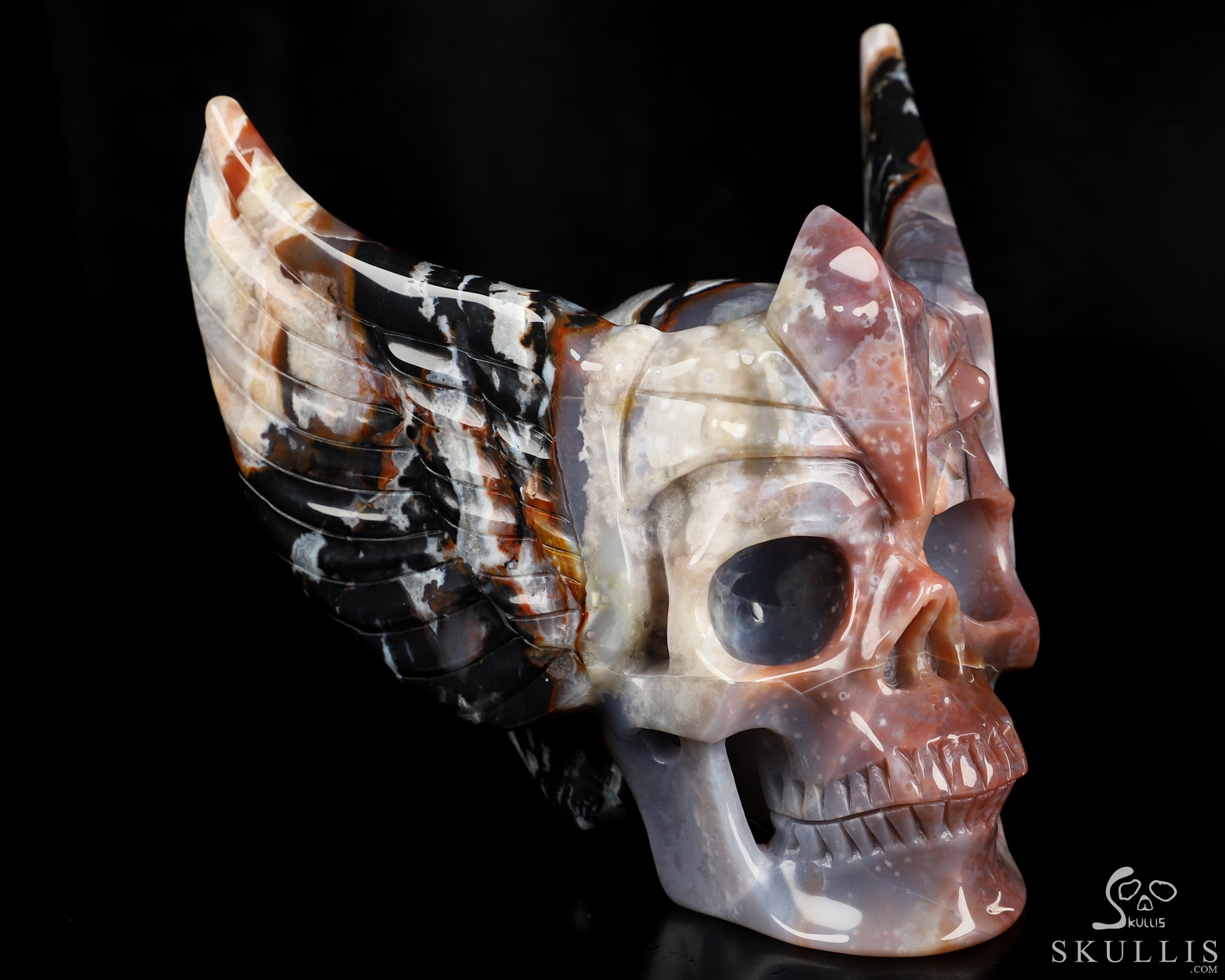 You are looking at a Black Zebra Agate skull. The skull is 5.7 inches from left to right.