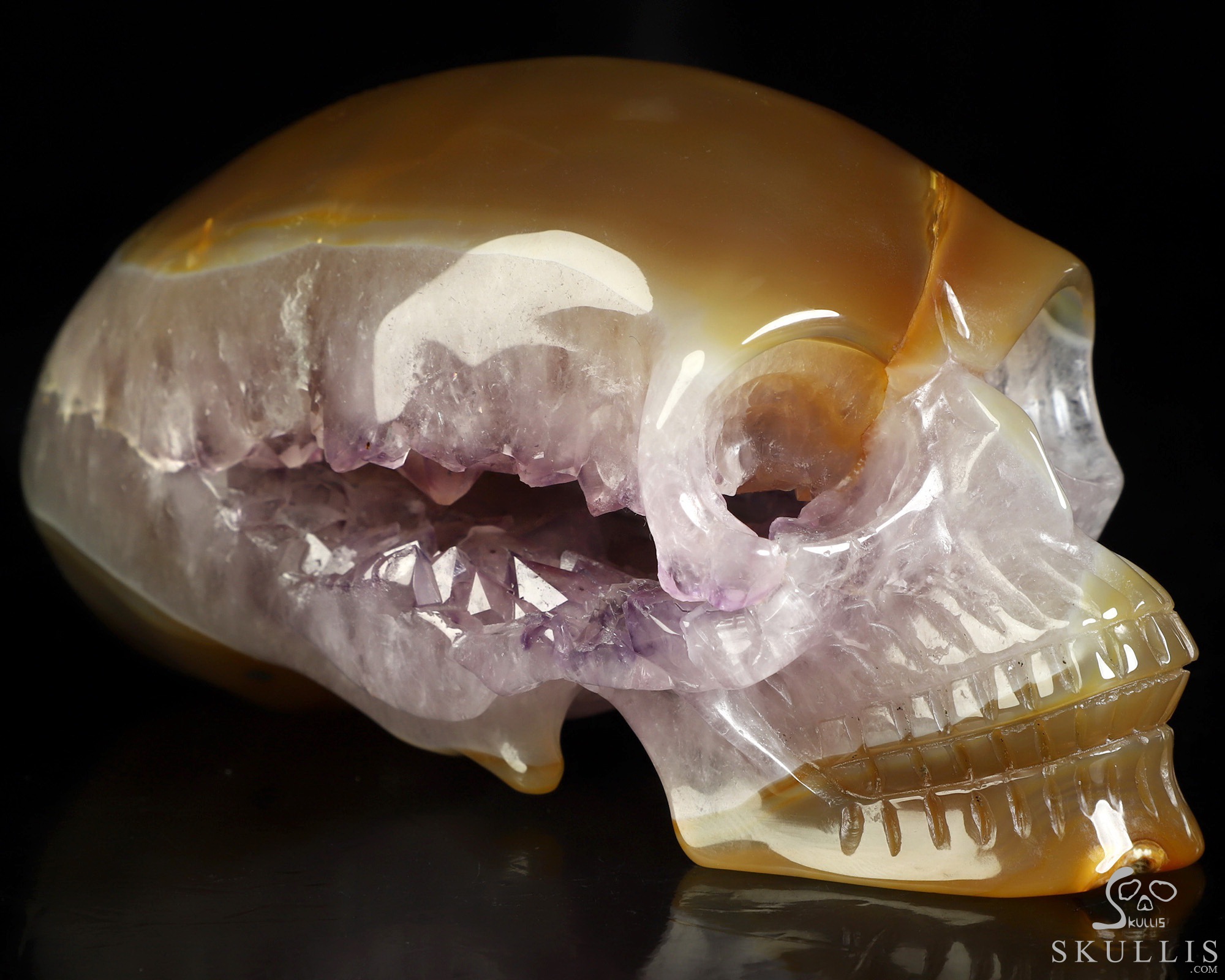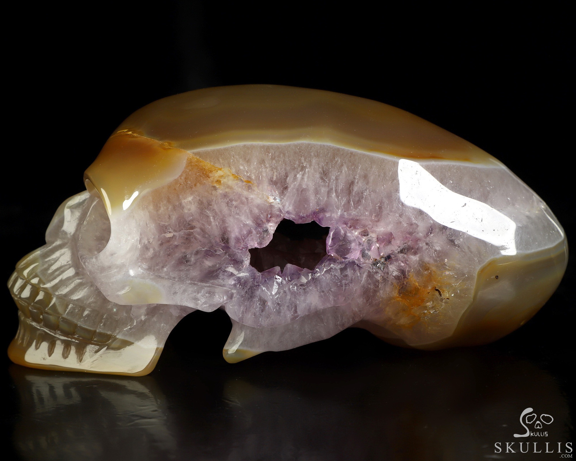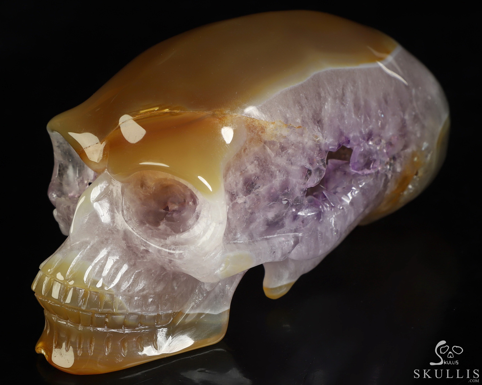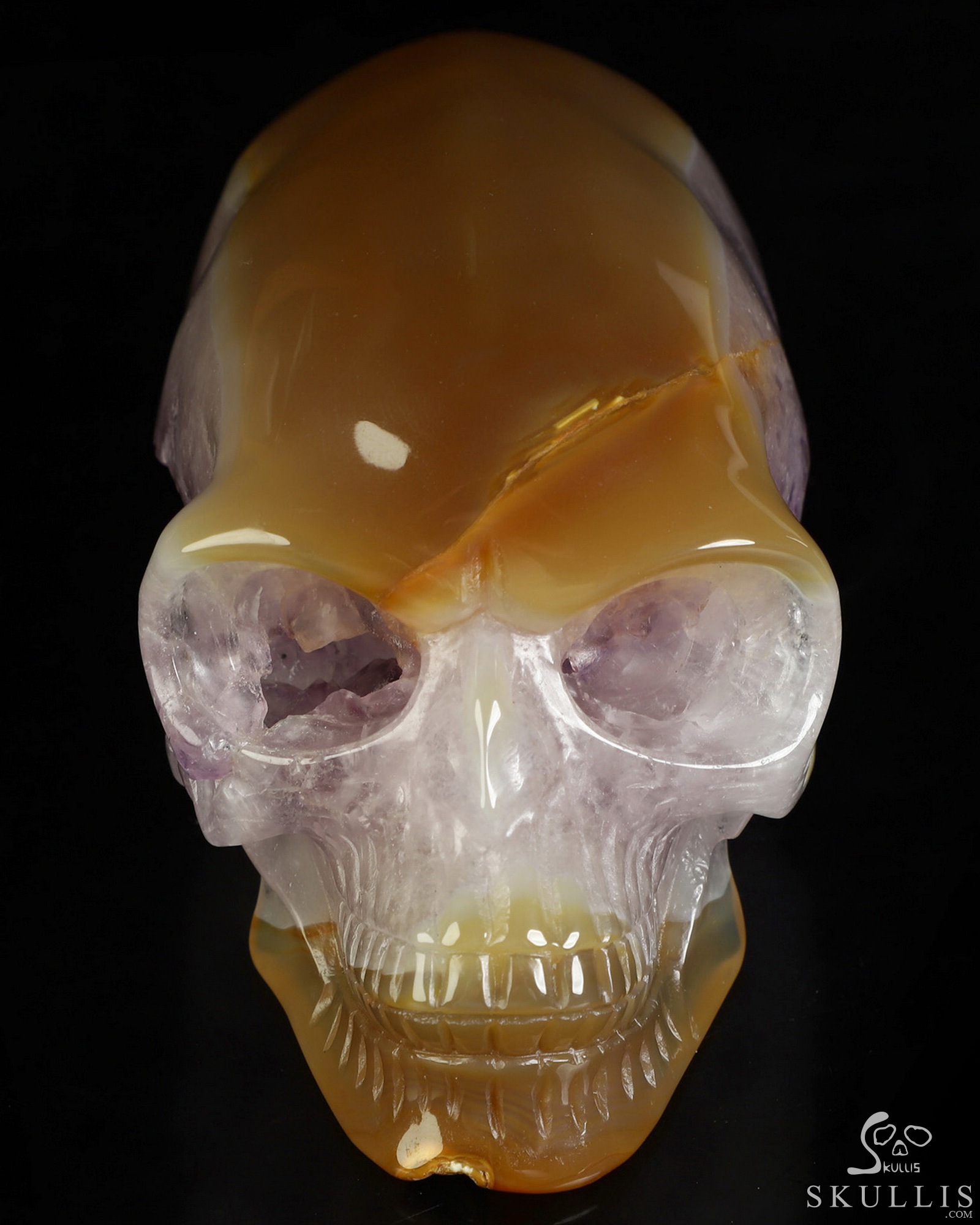 You are looking at a Premium Brazilian Agate skull. The skull is 5.7 inches from front to back.