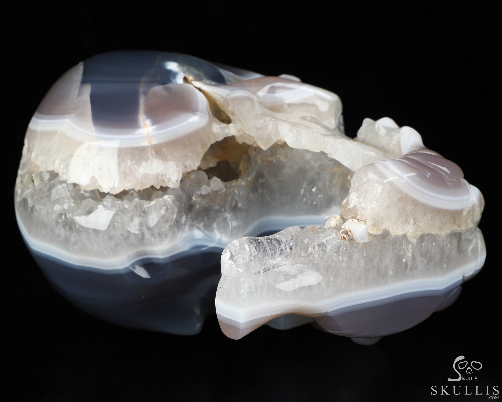 4.1" Premium Brazilian Agate Geode Hand Carved Crystal Skull, Super Realistic, Crystal Healing