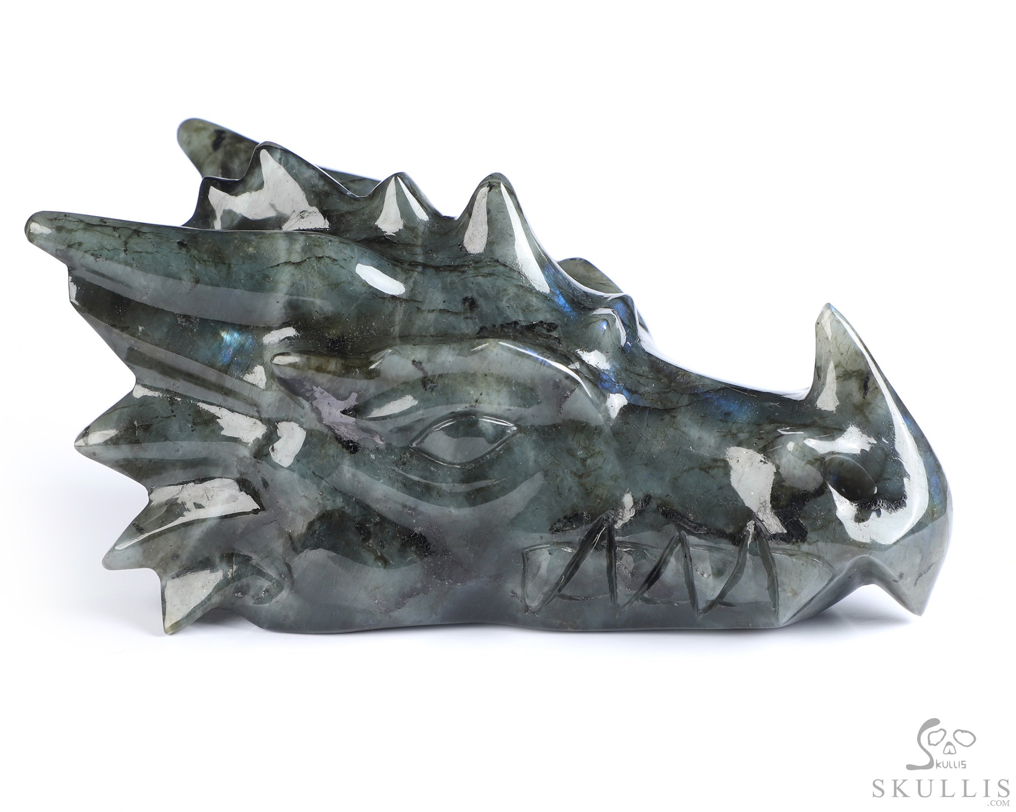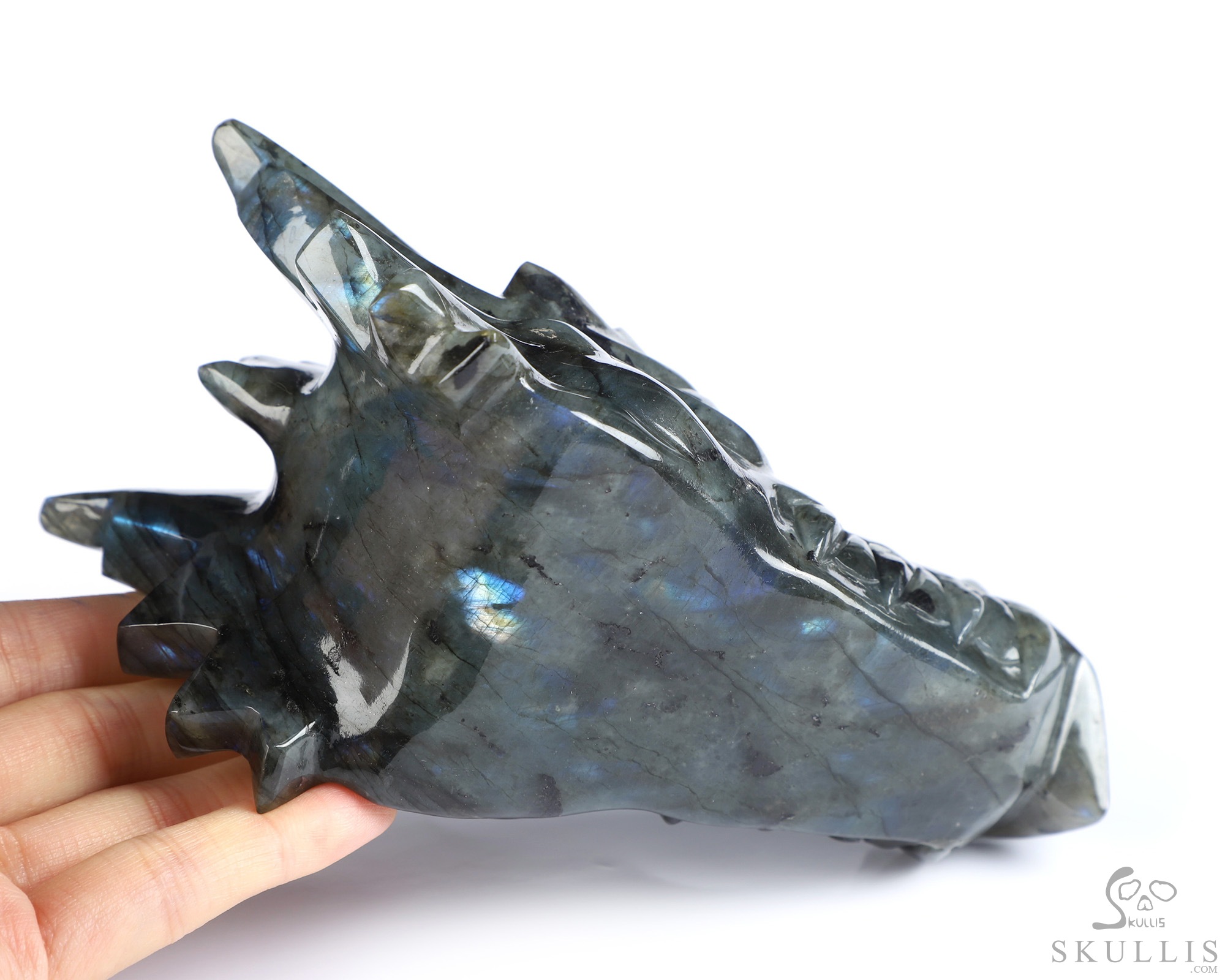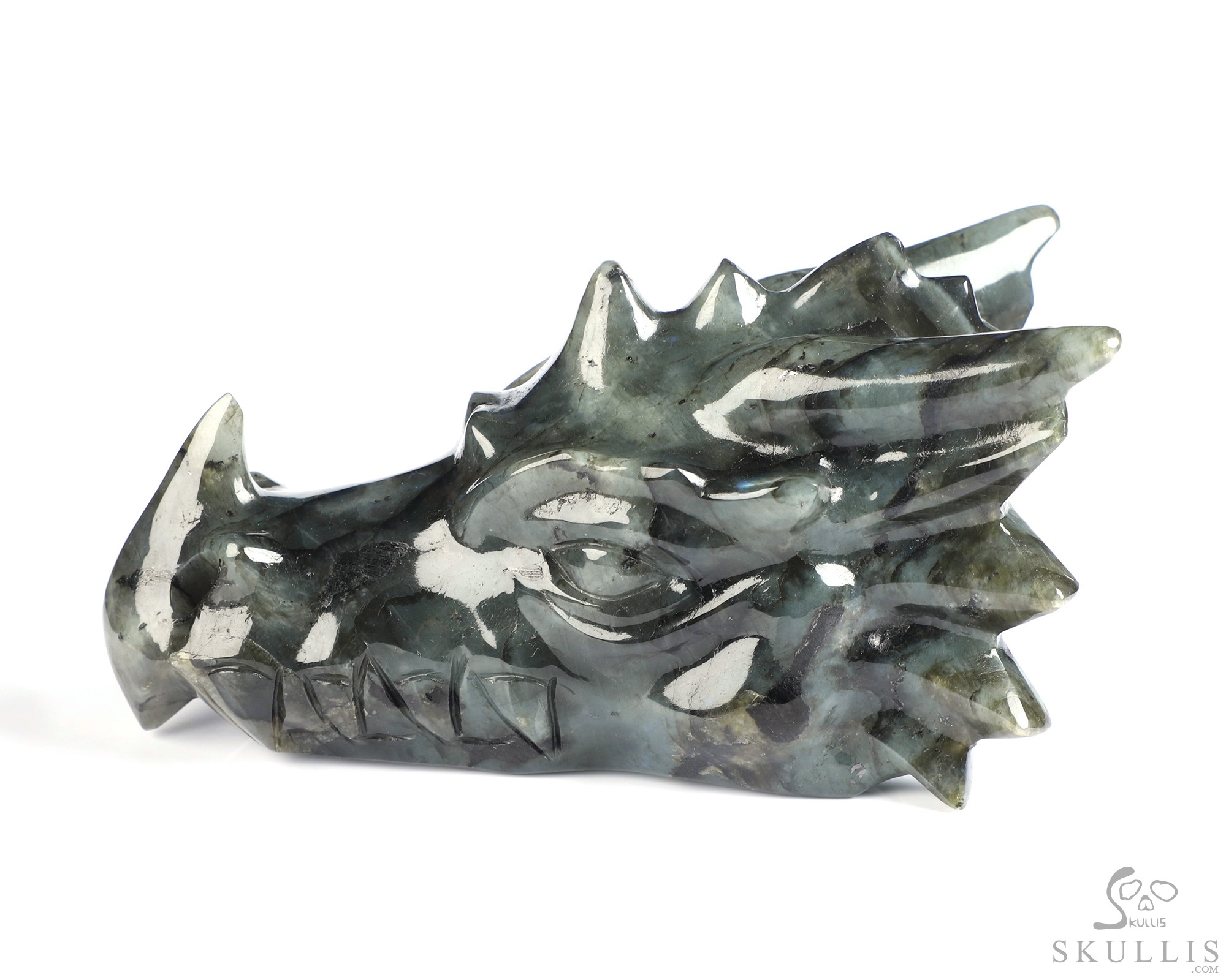 5.8" Labradorite Hand Carved Crystal Dragon Head Skull Sculpture, Crystal Healing