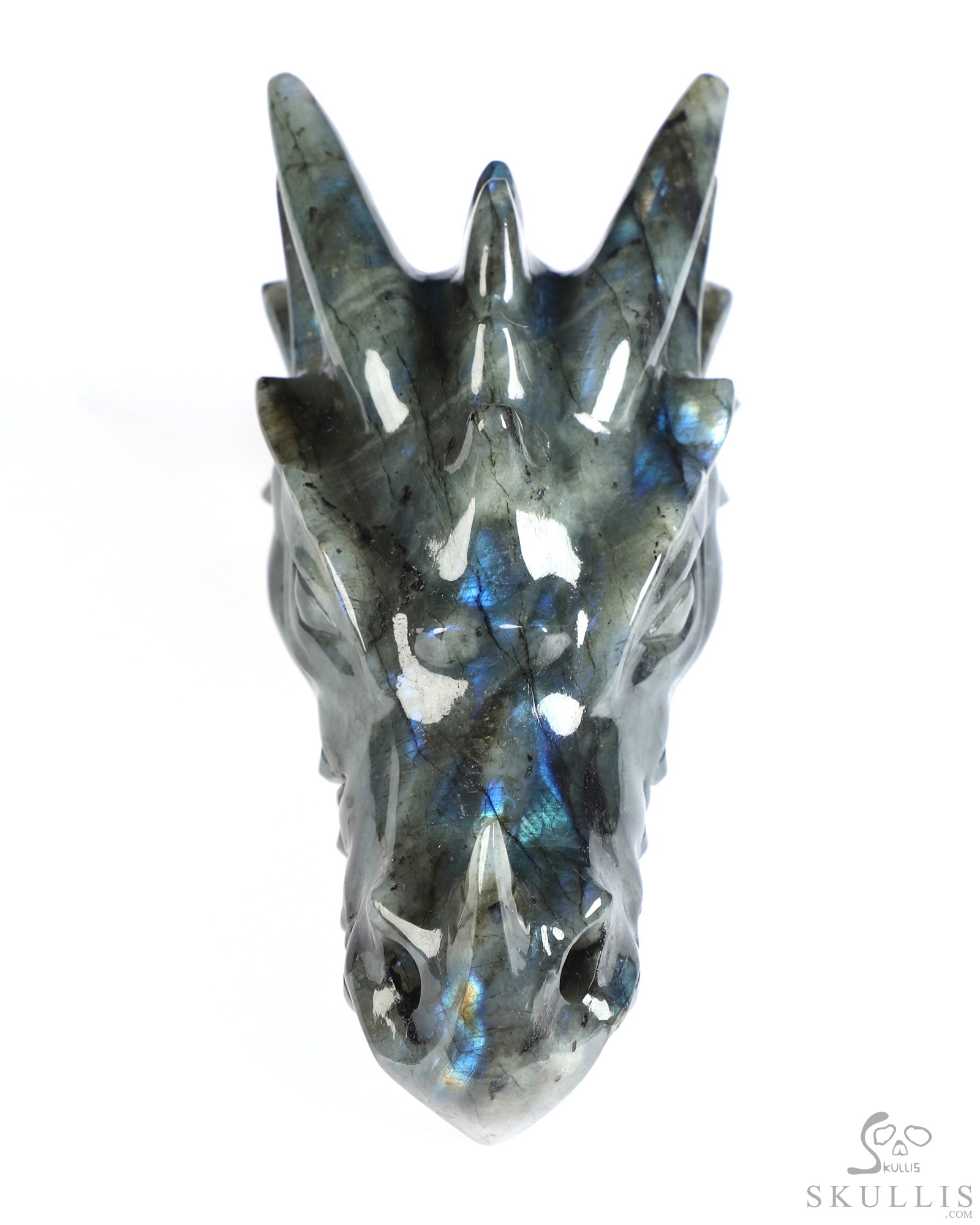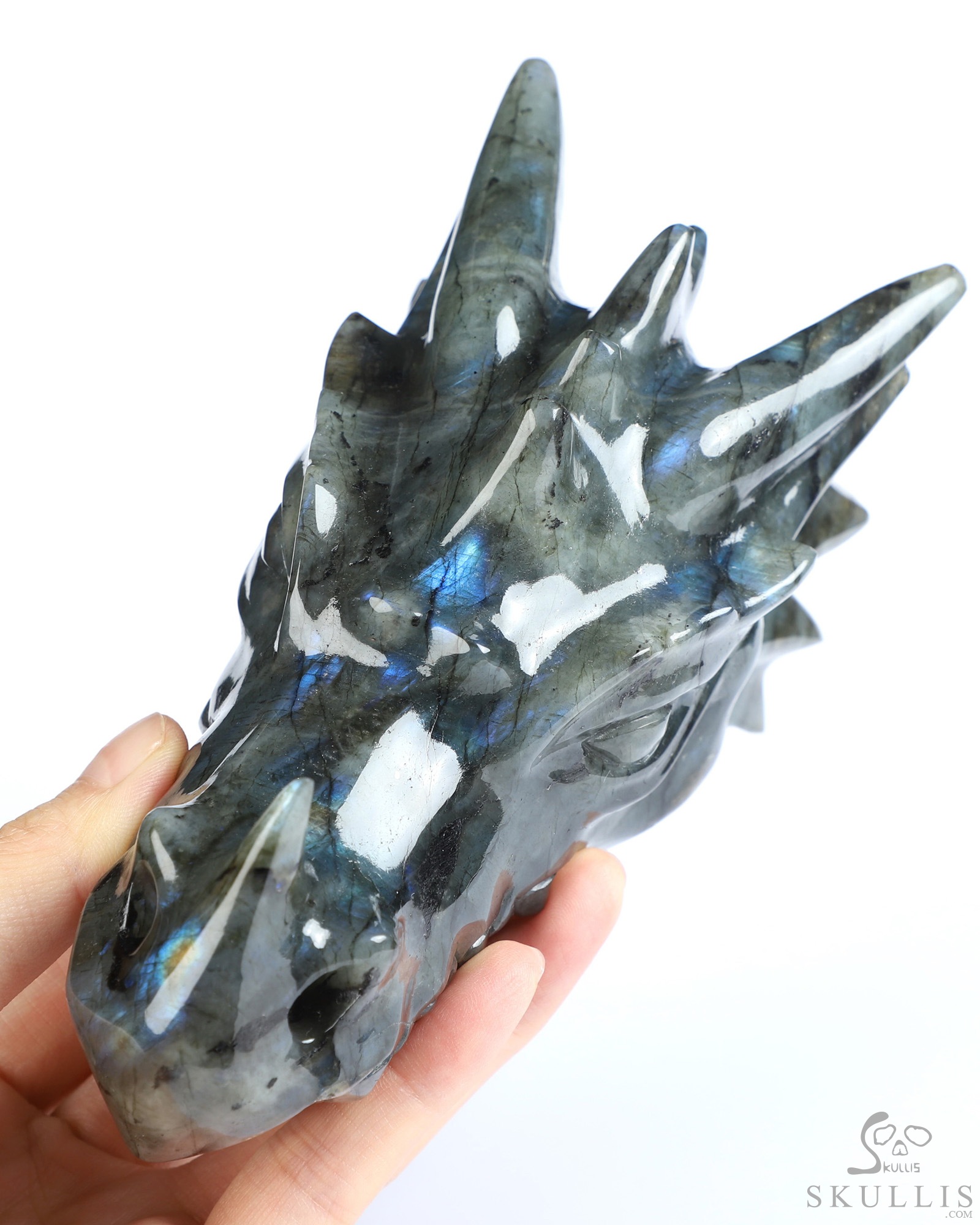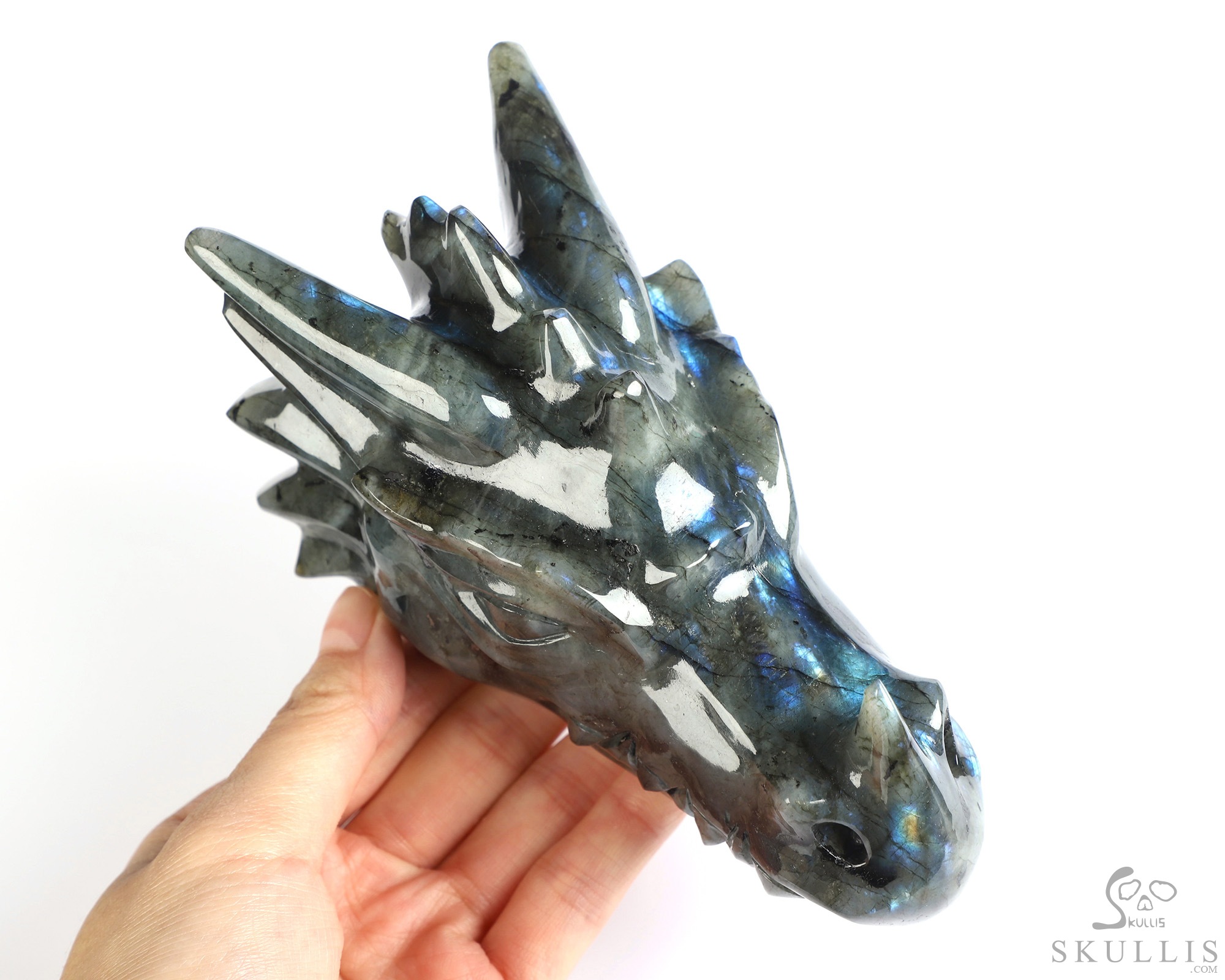 5.8" Labradorite Hand Carved Crystal Dragon Head Skull Sculpture, Crystal Healing